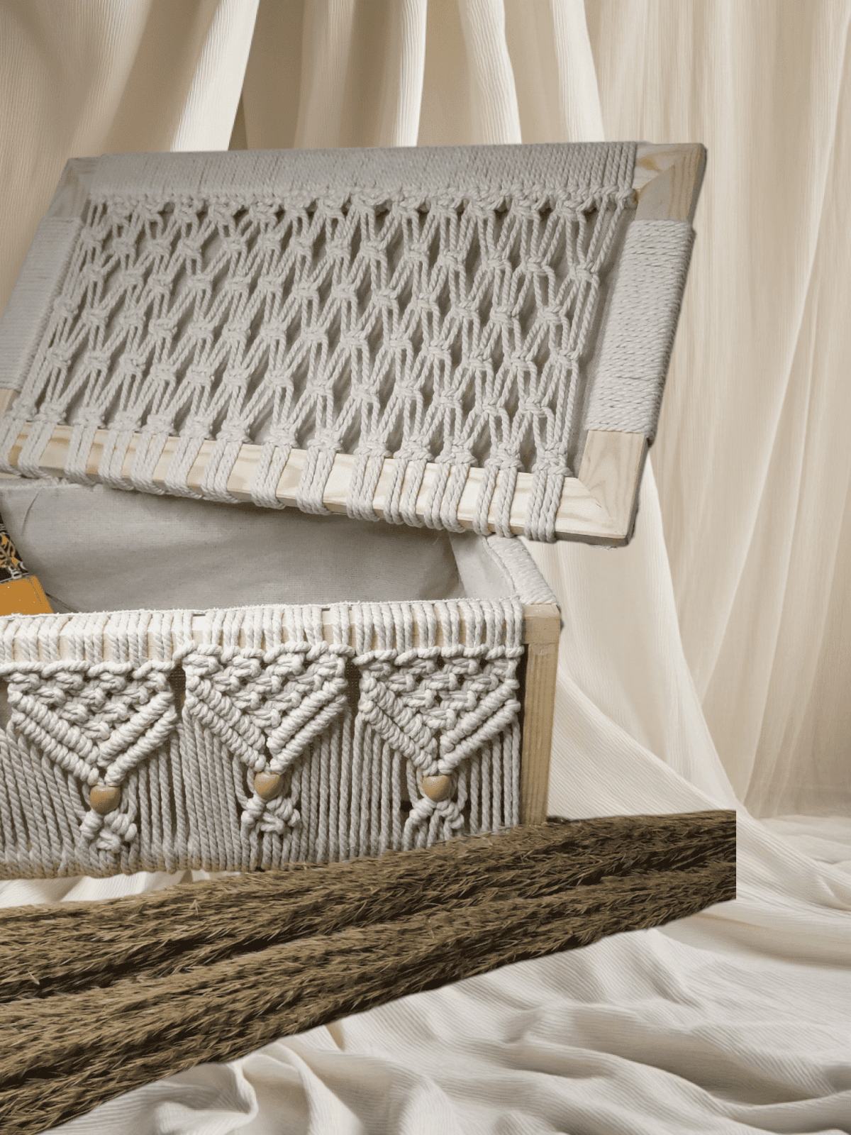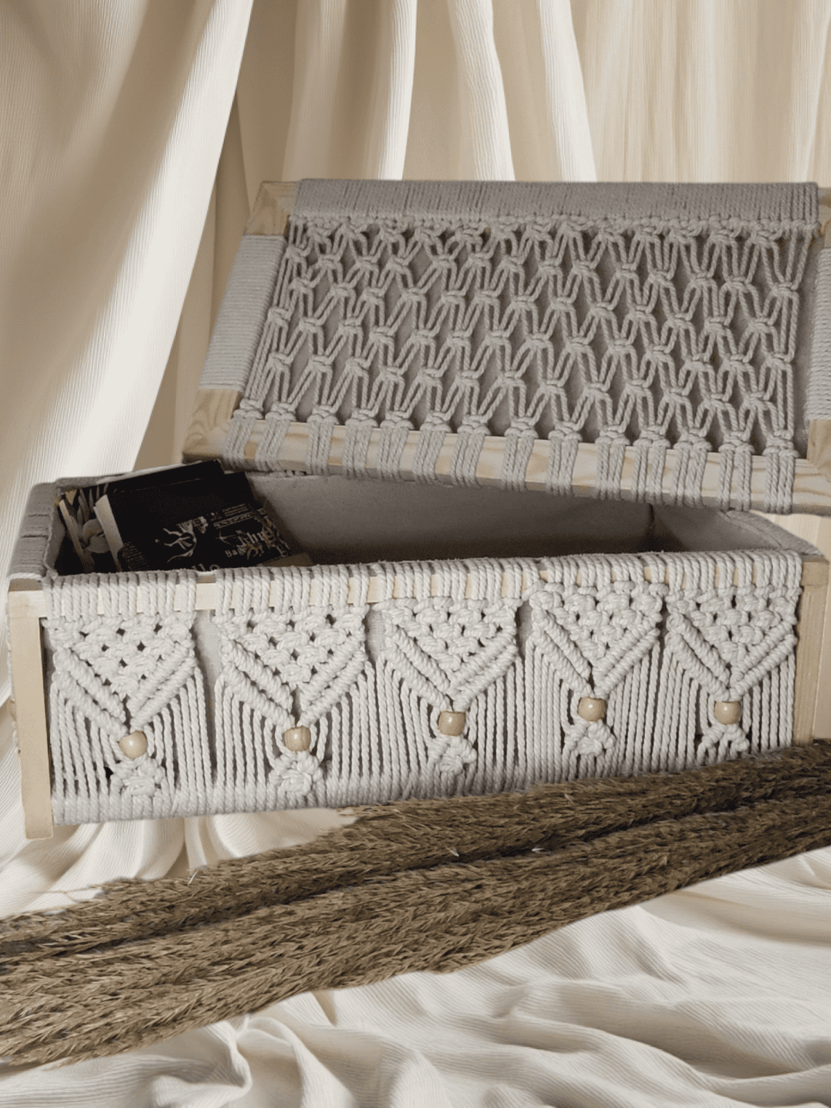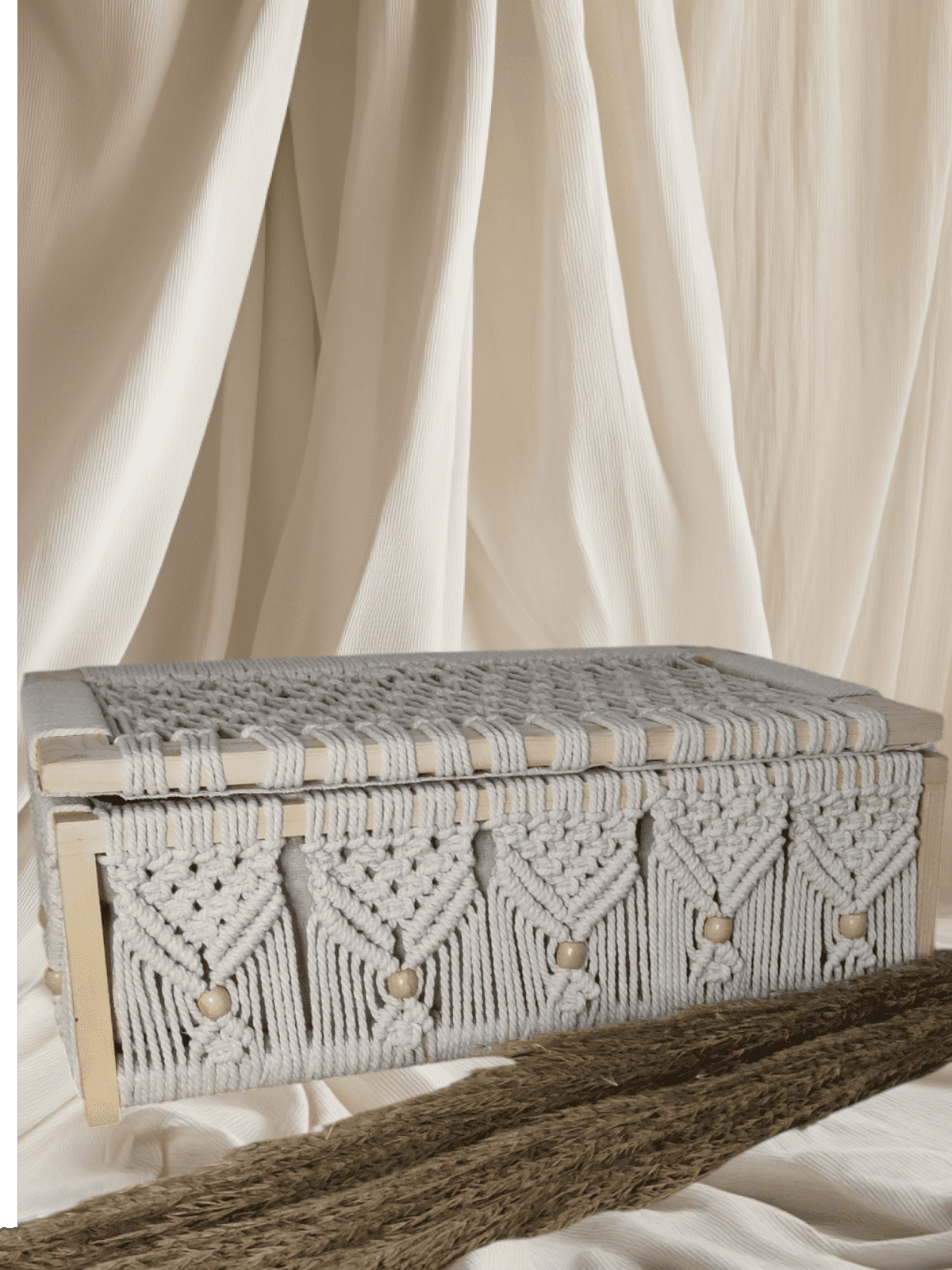 صندوق خشب مكرمية بغطاء مبطن من الداخل مقاسه طوله 55 عرضه 33 وارتفاعه 17 سم