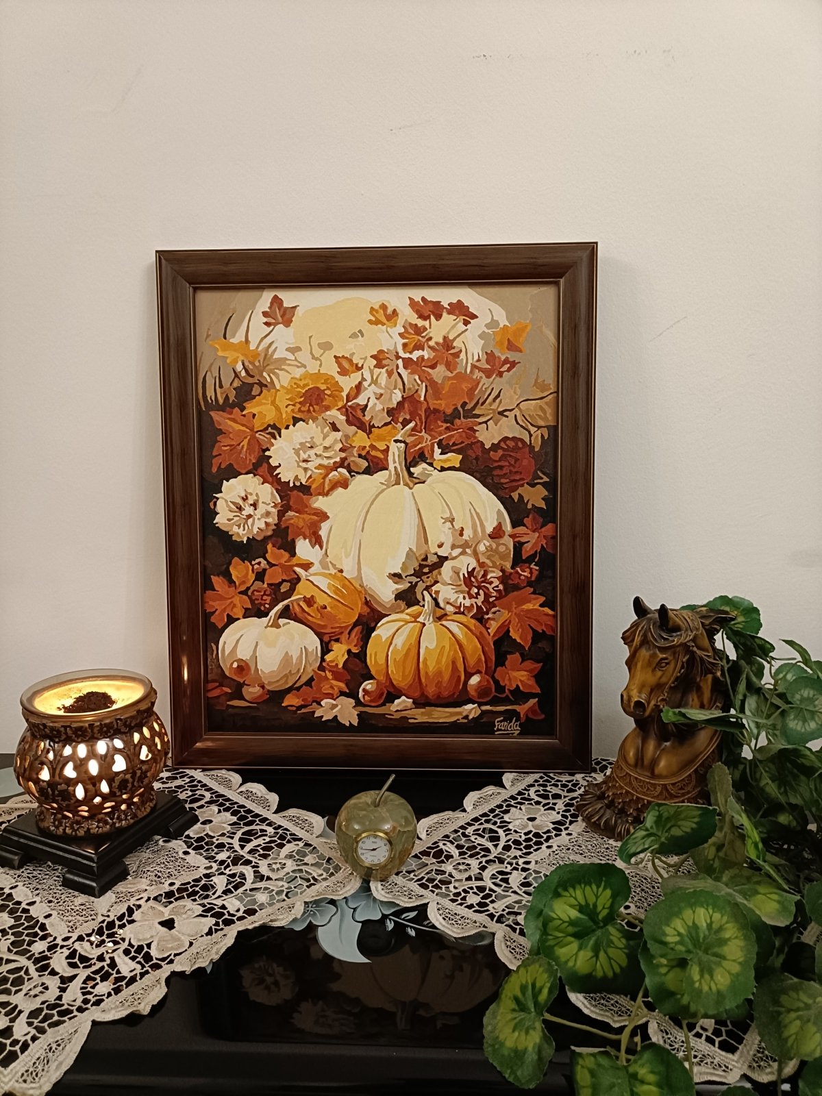 تابلوه بالوان اكريليك علي كانفس مشدود علي اطار خشب وبرواز بني المقاس 45*55 سم