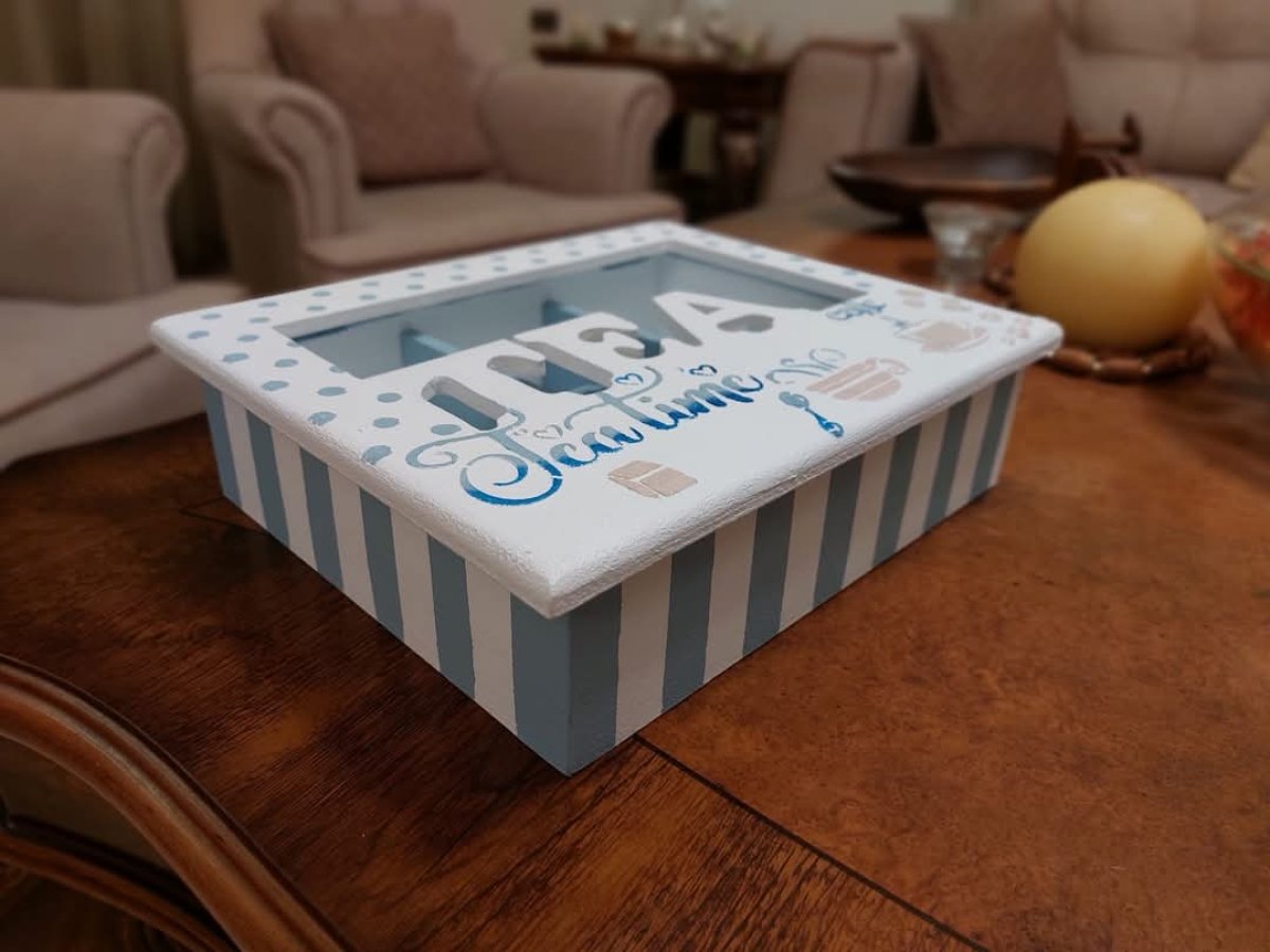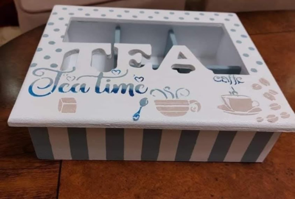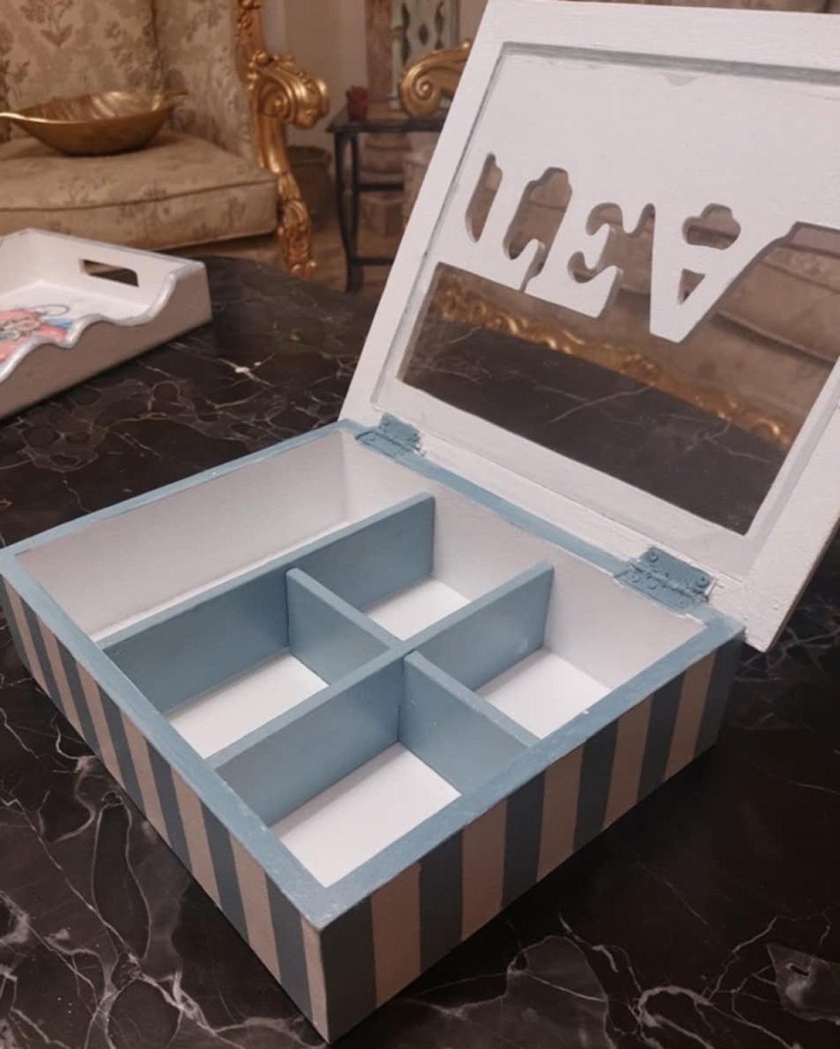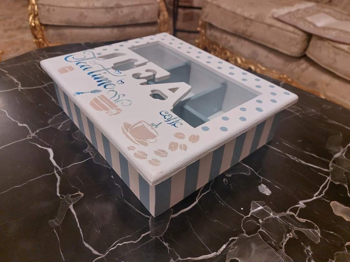 >علبه تى باج هاند ميد بشغل بارز ٥ عيون وبغطاء به زجاج شفاف ٢٥ ×٣٠ وارتفاع ١٥
