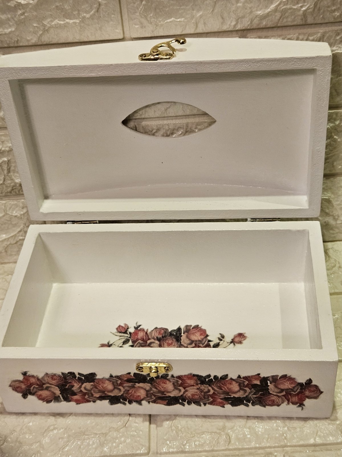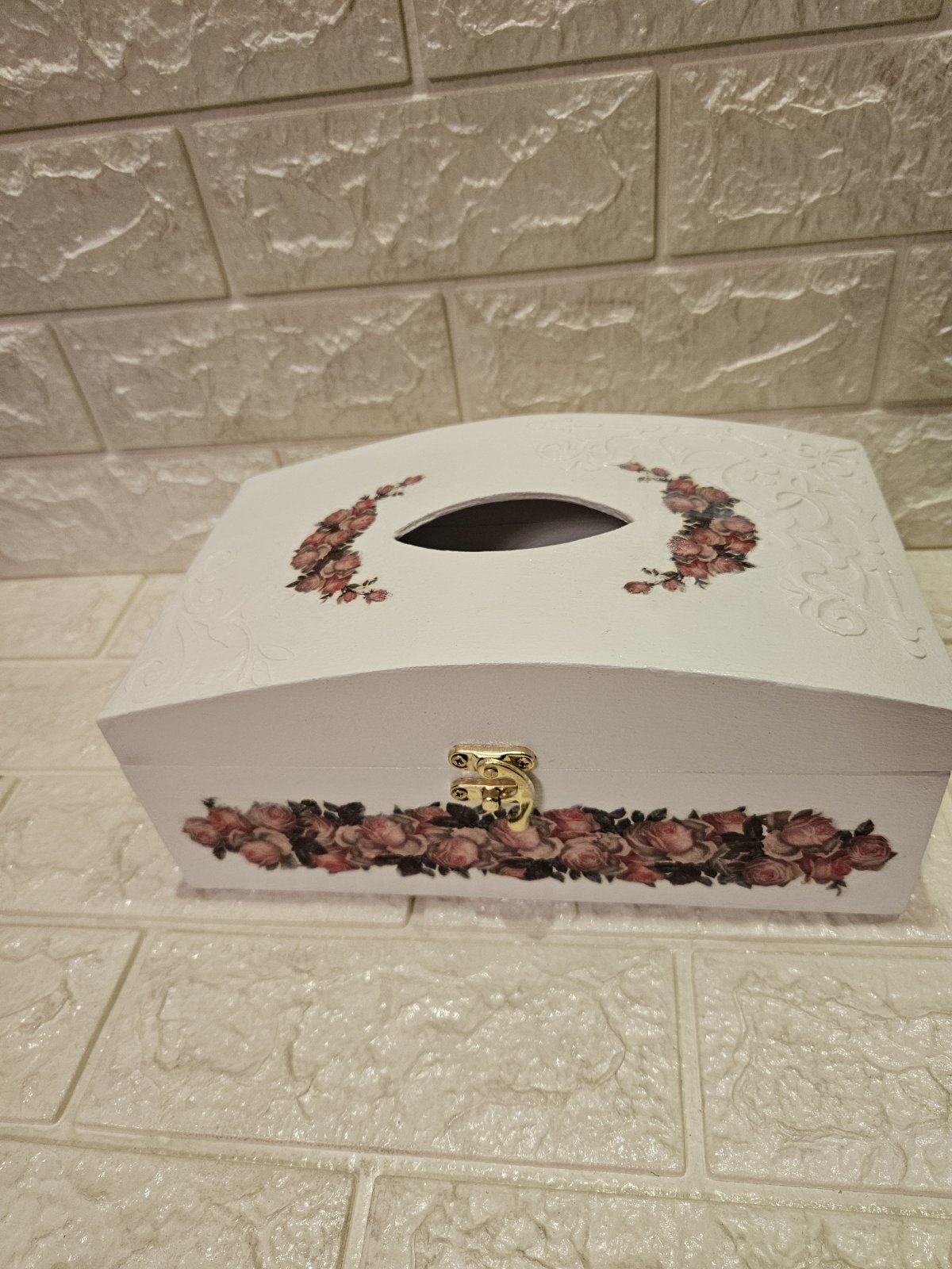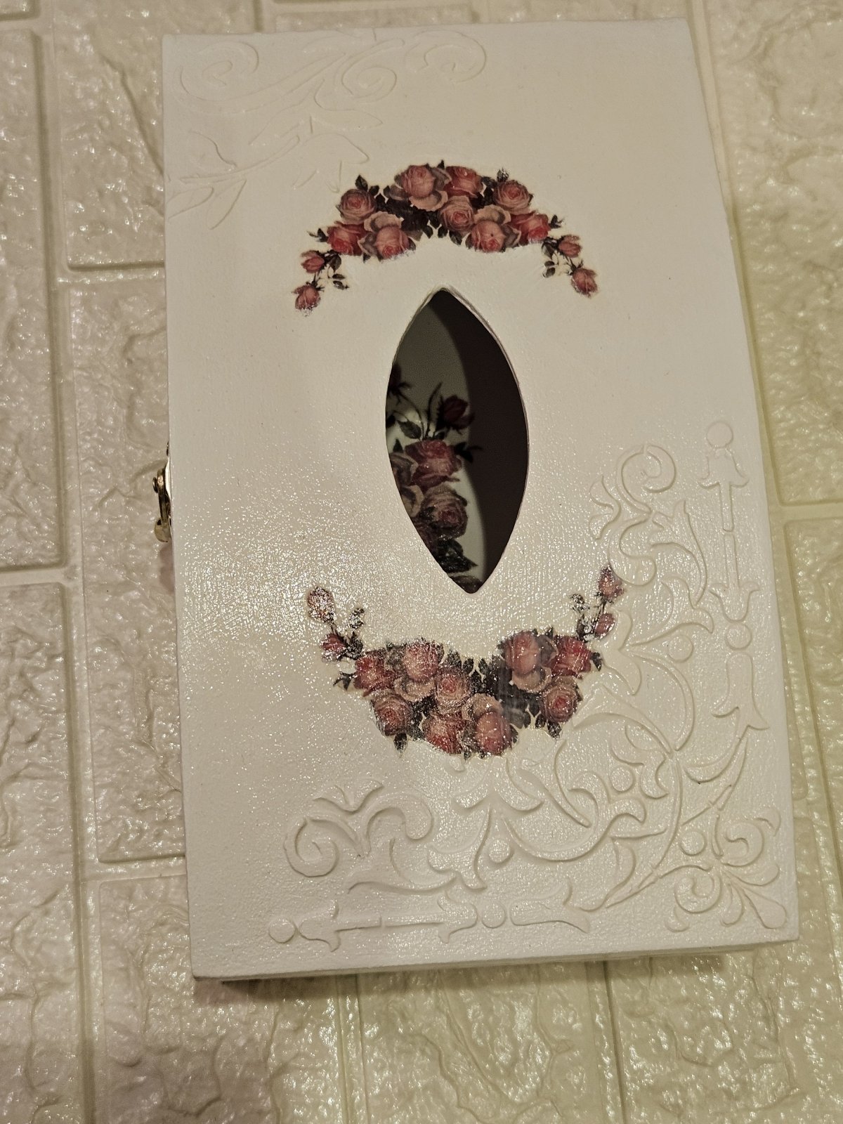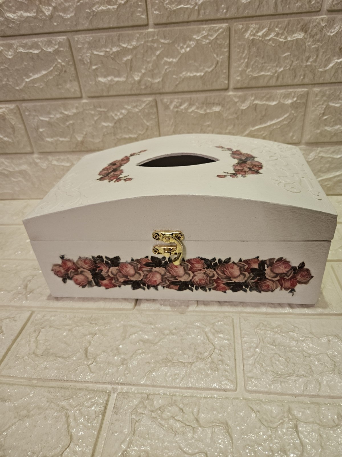 علبه مناديل خشب هاند ميد بشغل بارز ٢٦ ×١٥ بقفل
