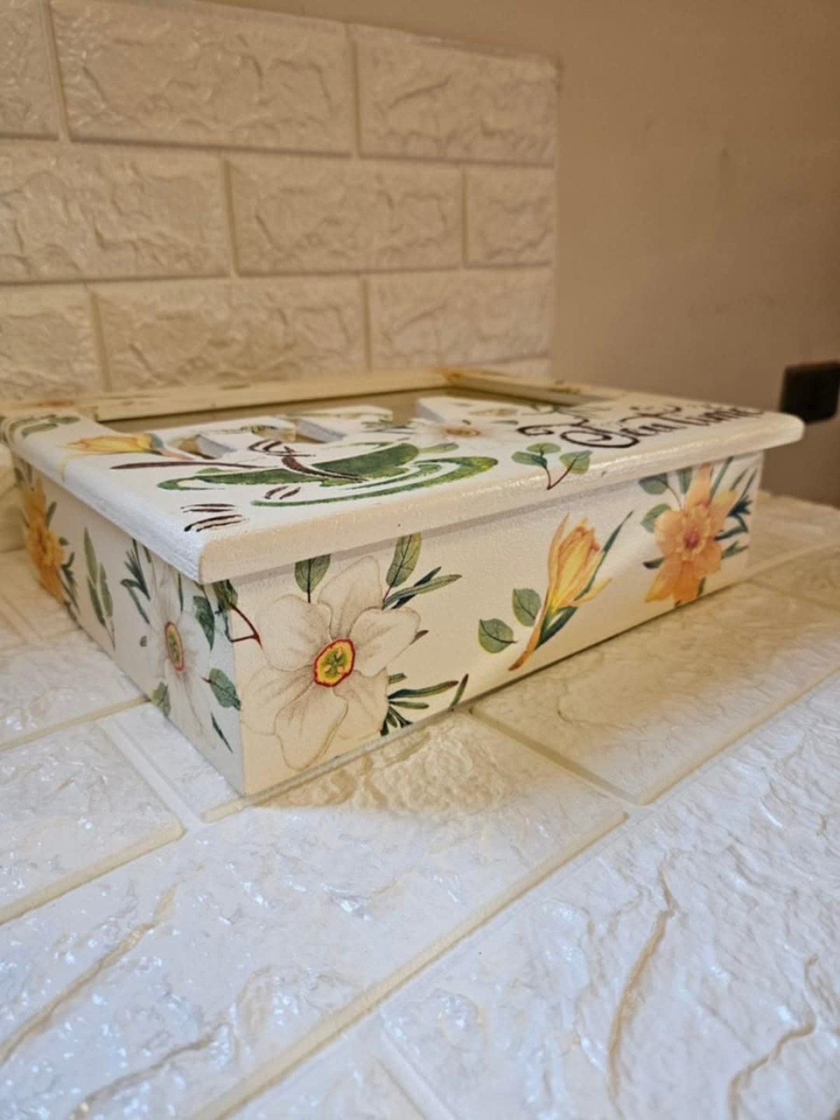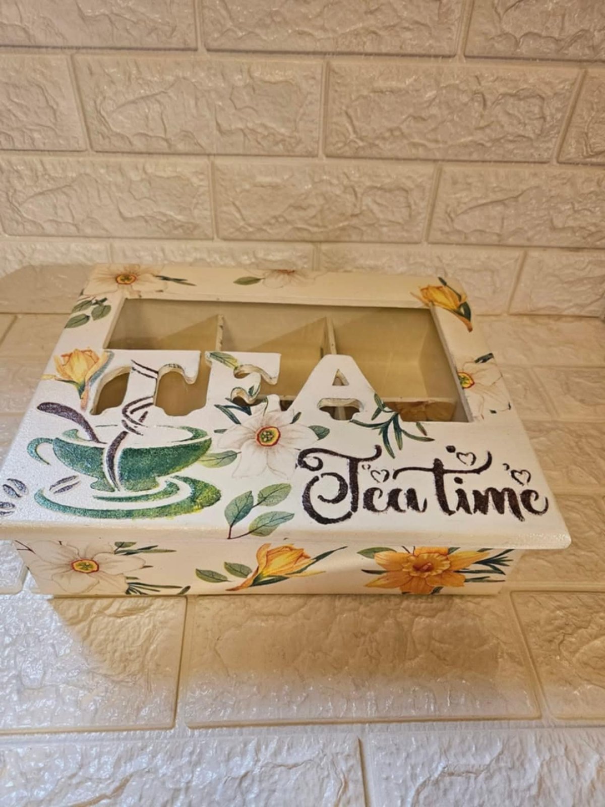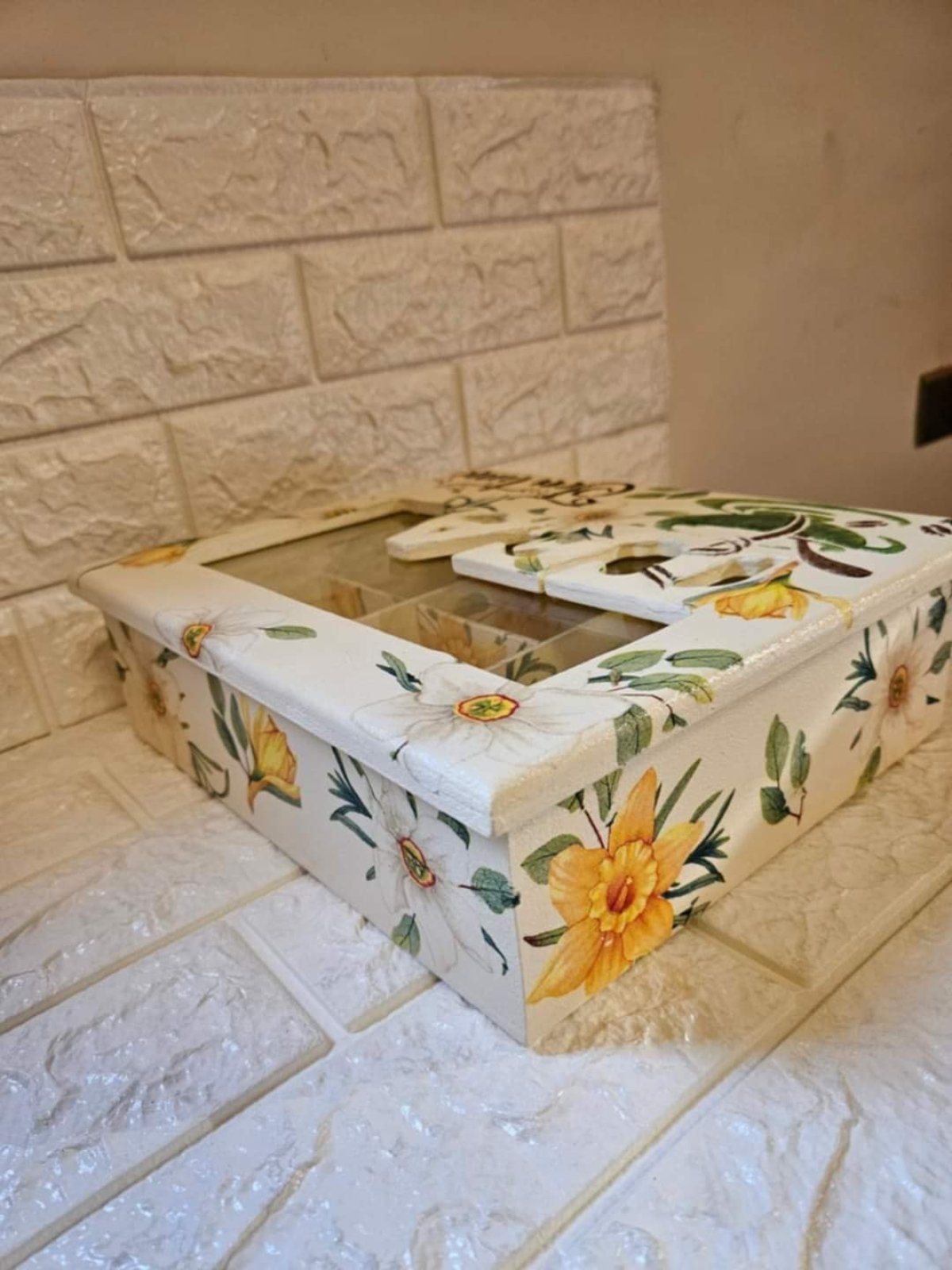 علبه تى باج ٥ عيون هاند ميد خشب هاند ميد بشغل بارز ٢٥ ×٣٠ والارتفاع ١٥ سم والغطاء بزجاج شفاف
