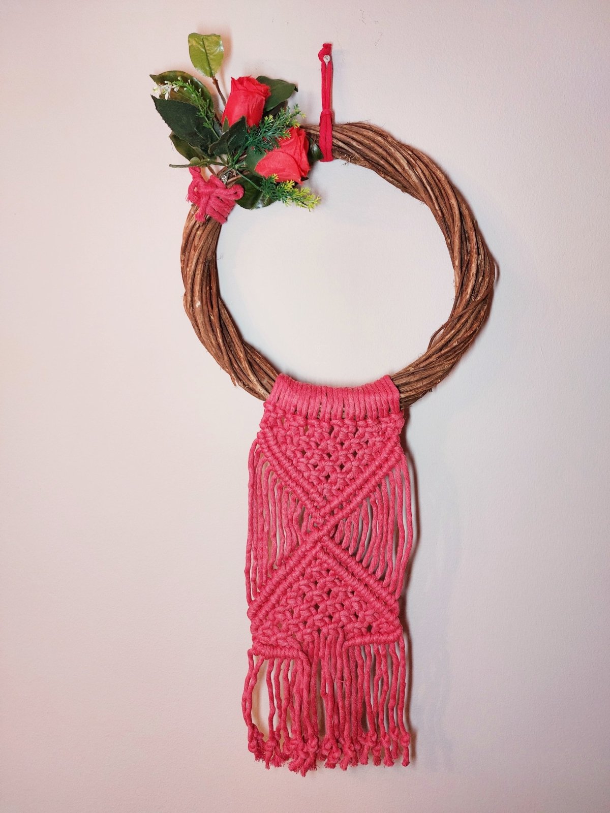 مكرمة عيد الميلاد بأغصان الأشجار. مستخدم محلول احمر وورد احمر