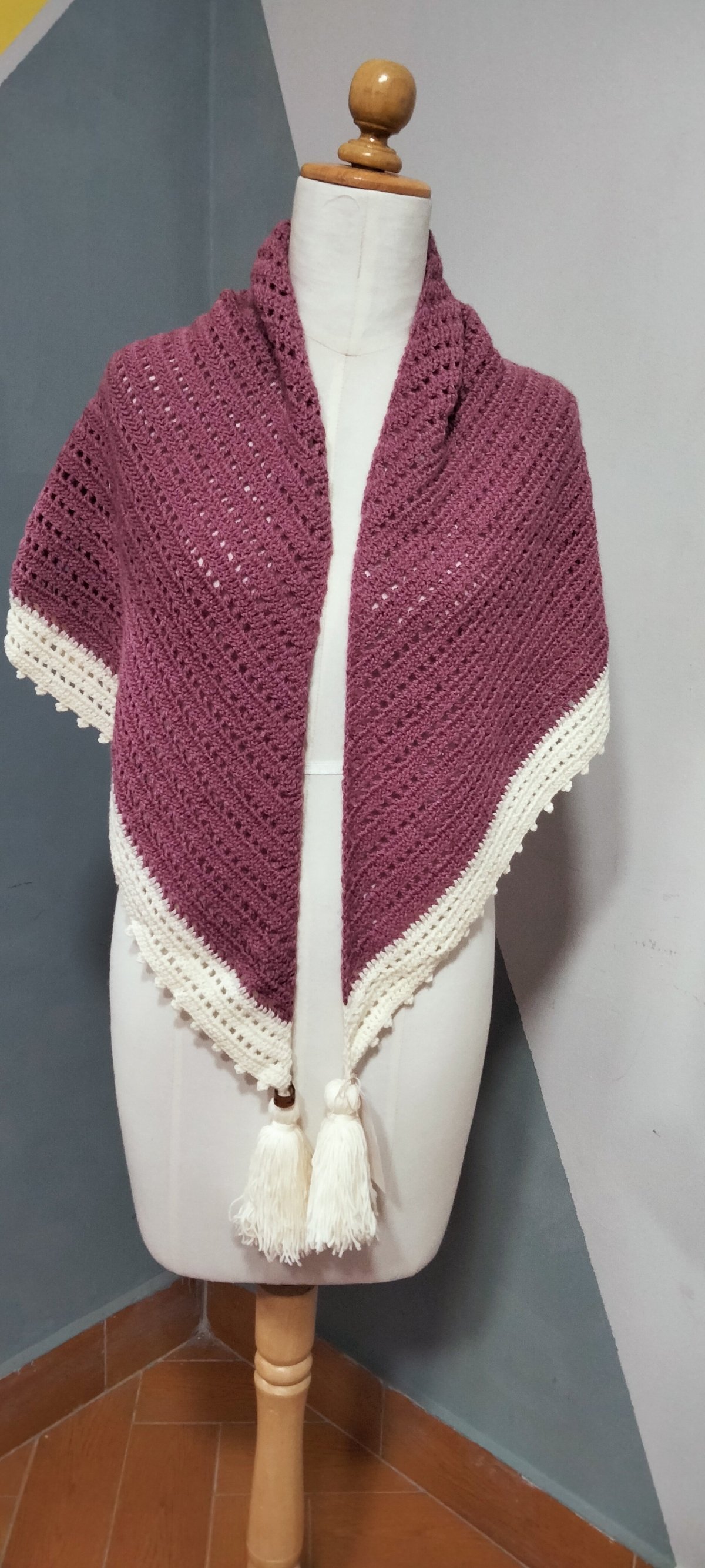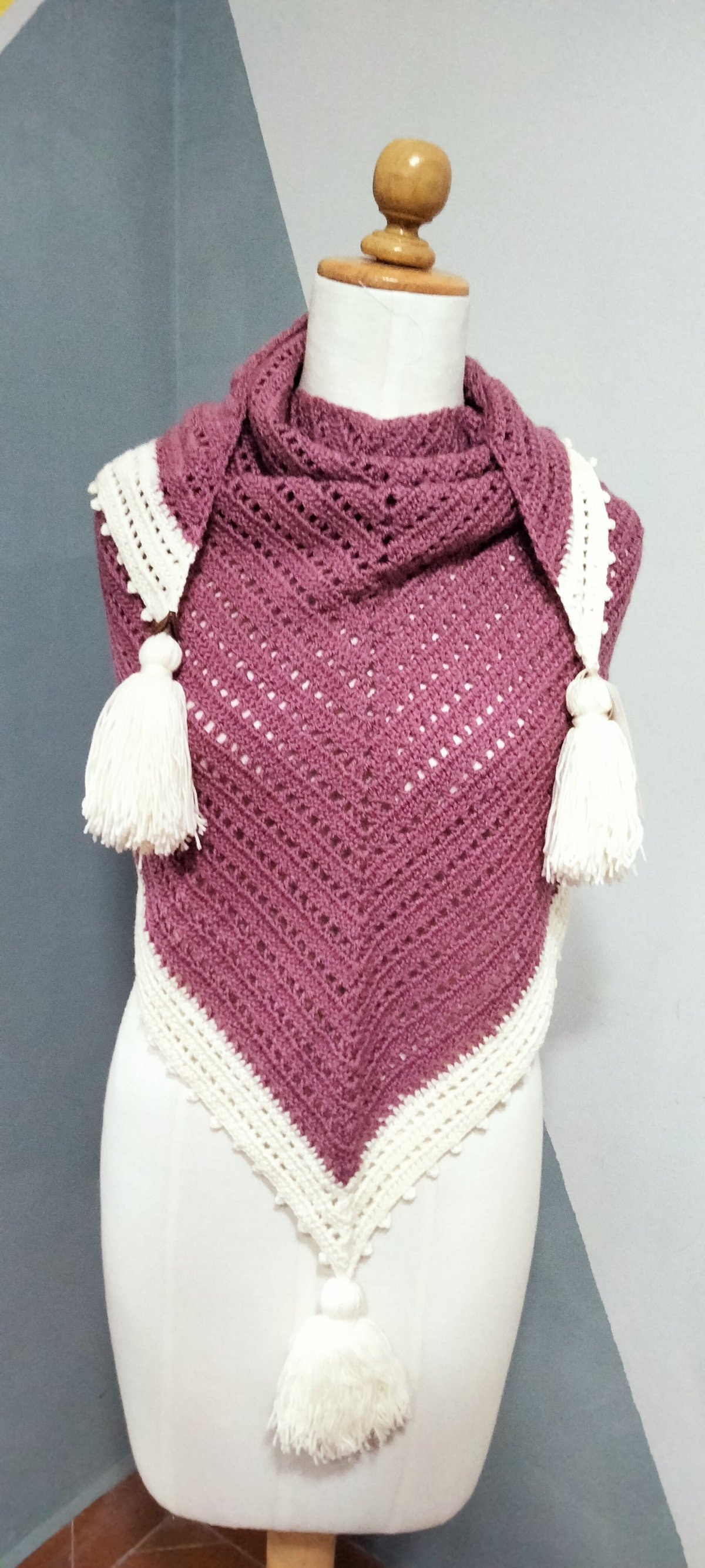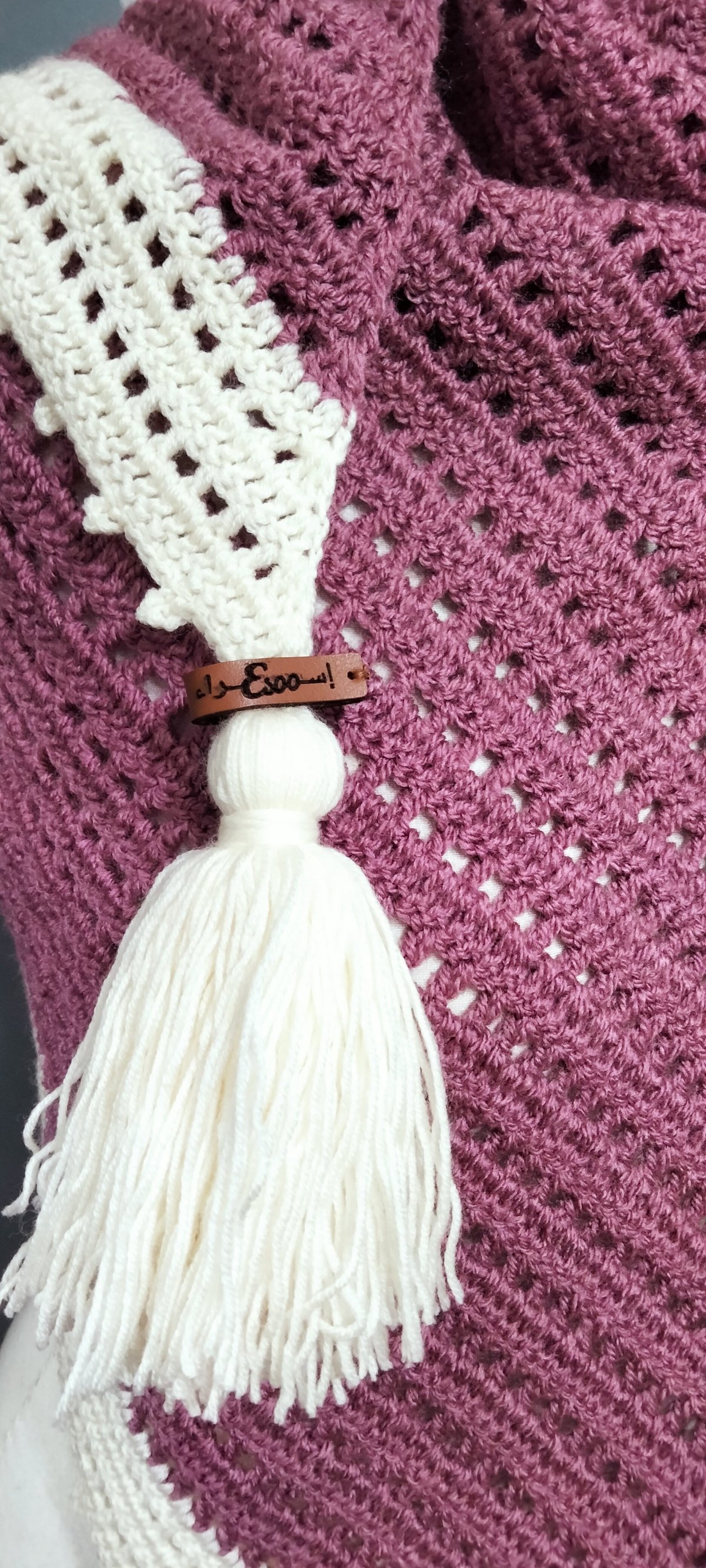 شال صوف مثلث هاند ميد كروشيه. الالوان : كشمير مع حواف اوف وايت شال أنيق ومتميز سمك الشال رقيق جدا ومريح في الاستخدام . الخامة : صوف اليزا بيبي المقاس : ١٤٠*٩٠