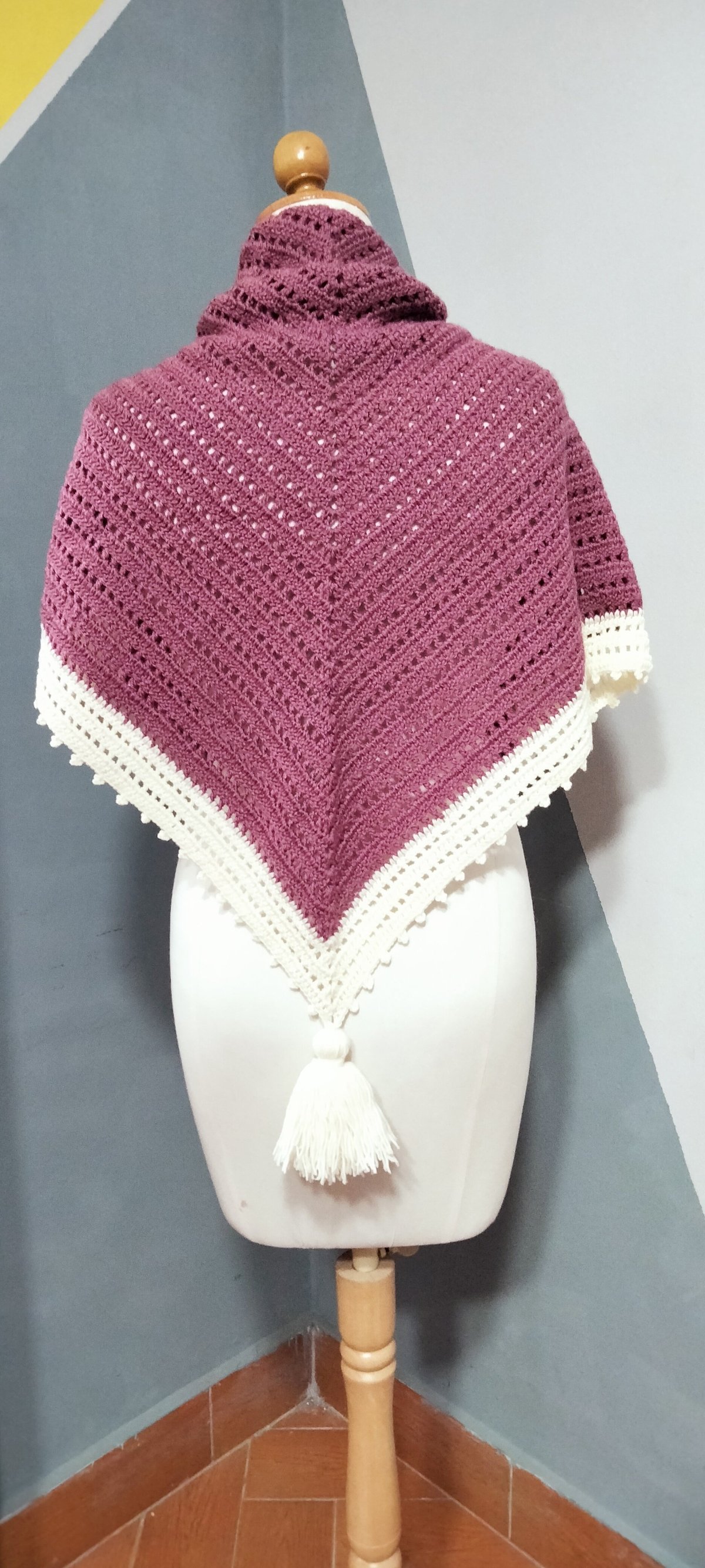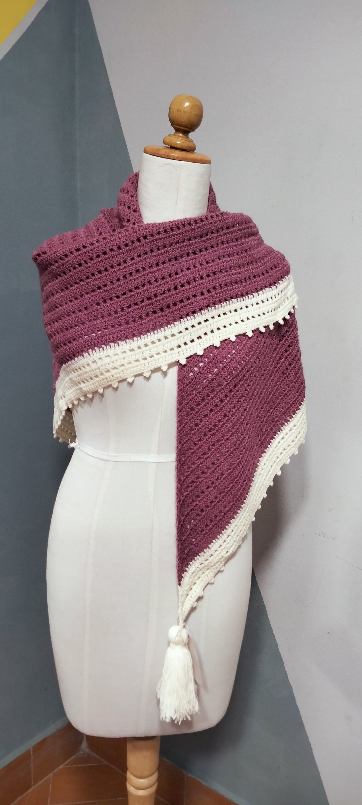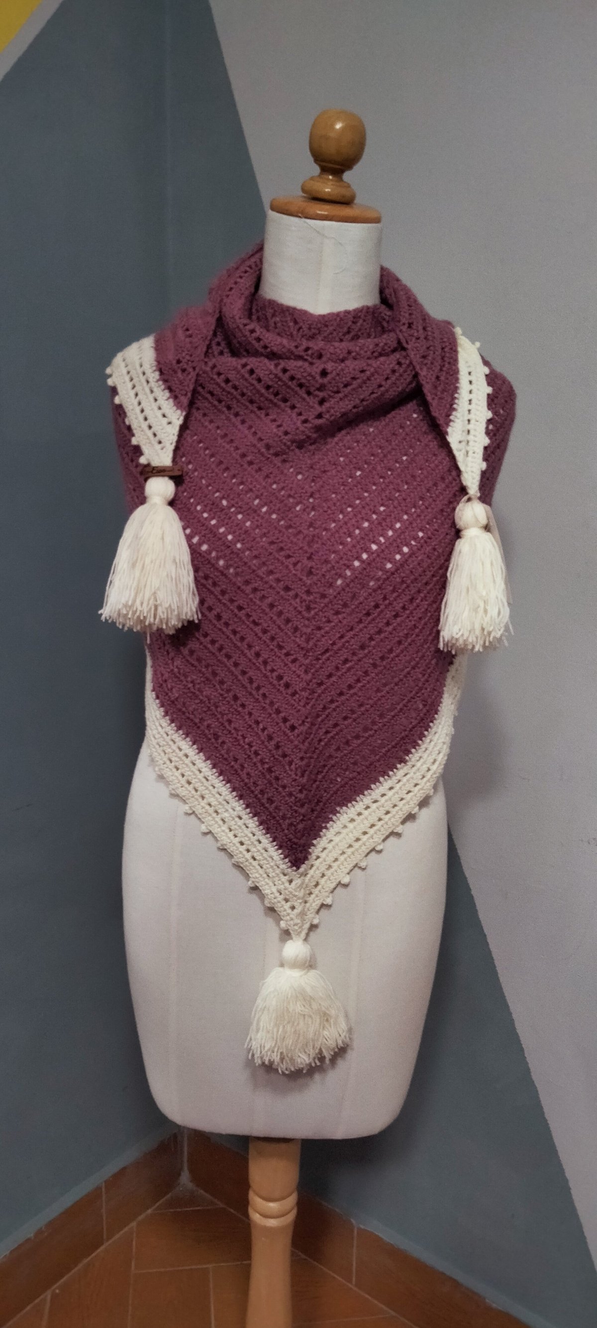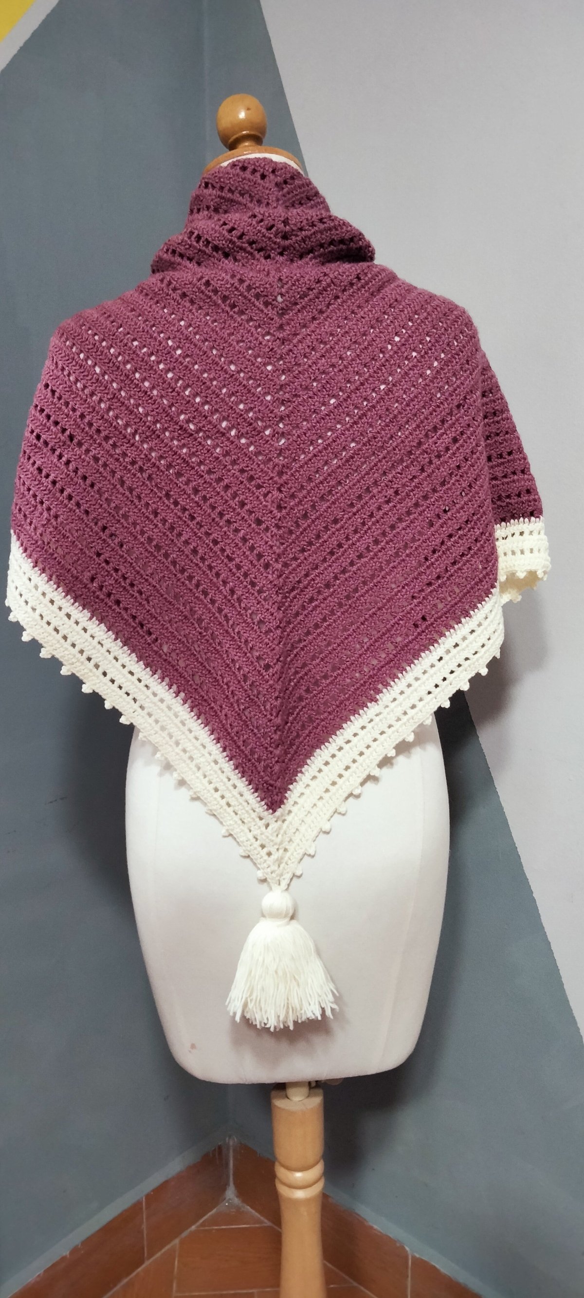 شال صوف مثلث هاند ميد كروشيه. الالوان : كشمير مع حواف اوف وايت شال أنيق ومتميز سمك الشال رقيق جدا ومريح في الاستخدام . الخامة : صوف اليزا بيبي المقاس : ١٤٠*٩٠