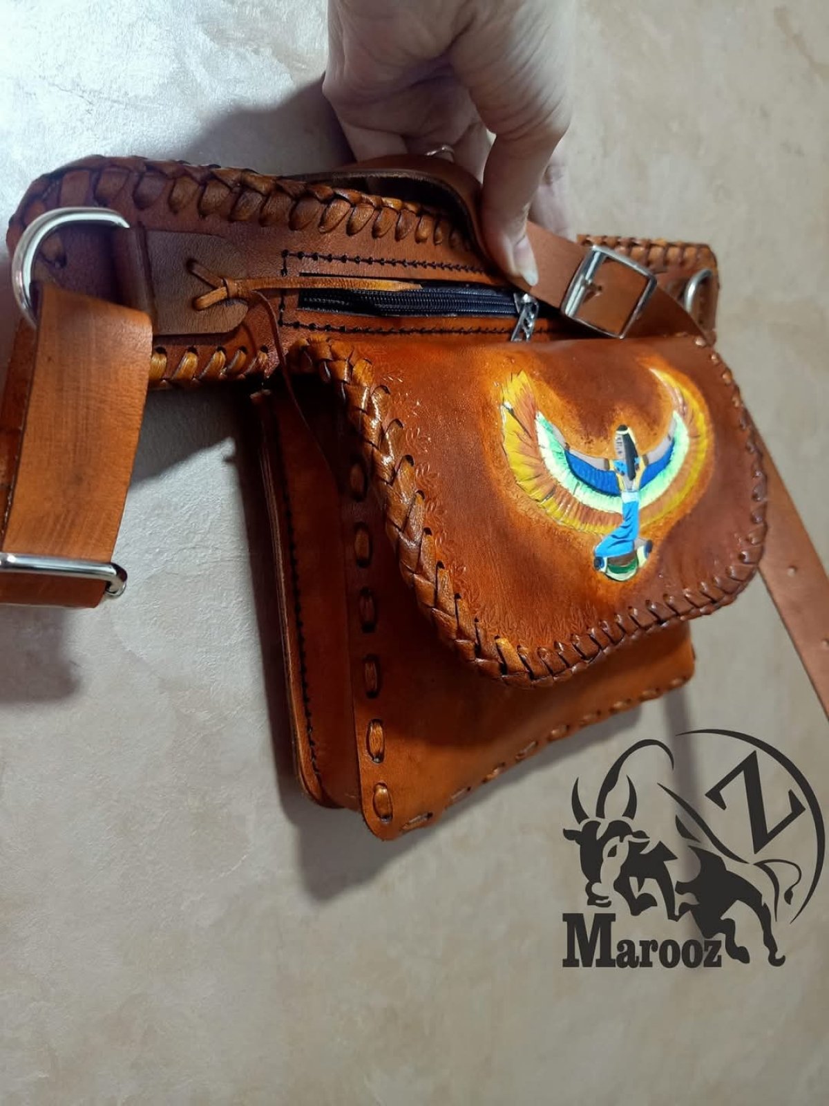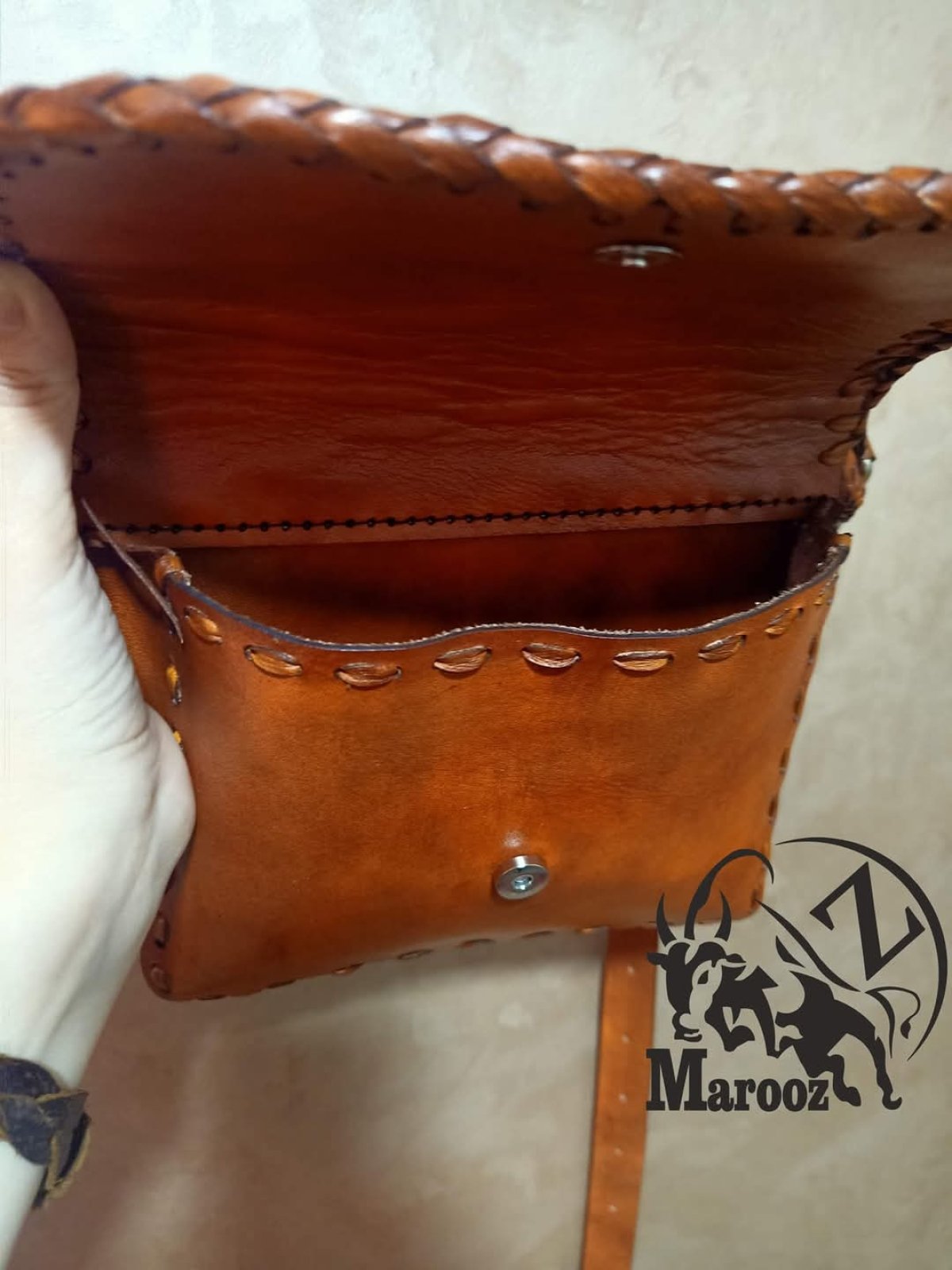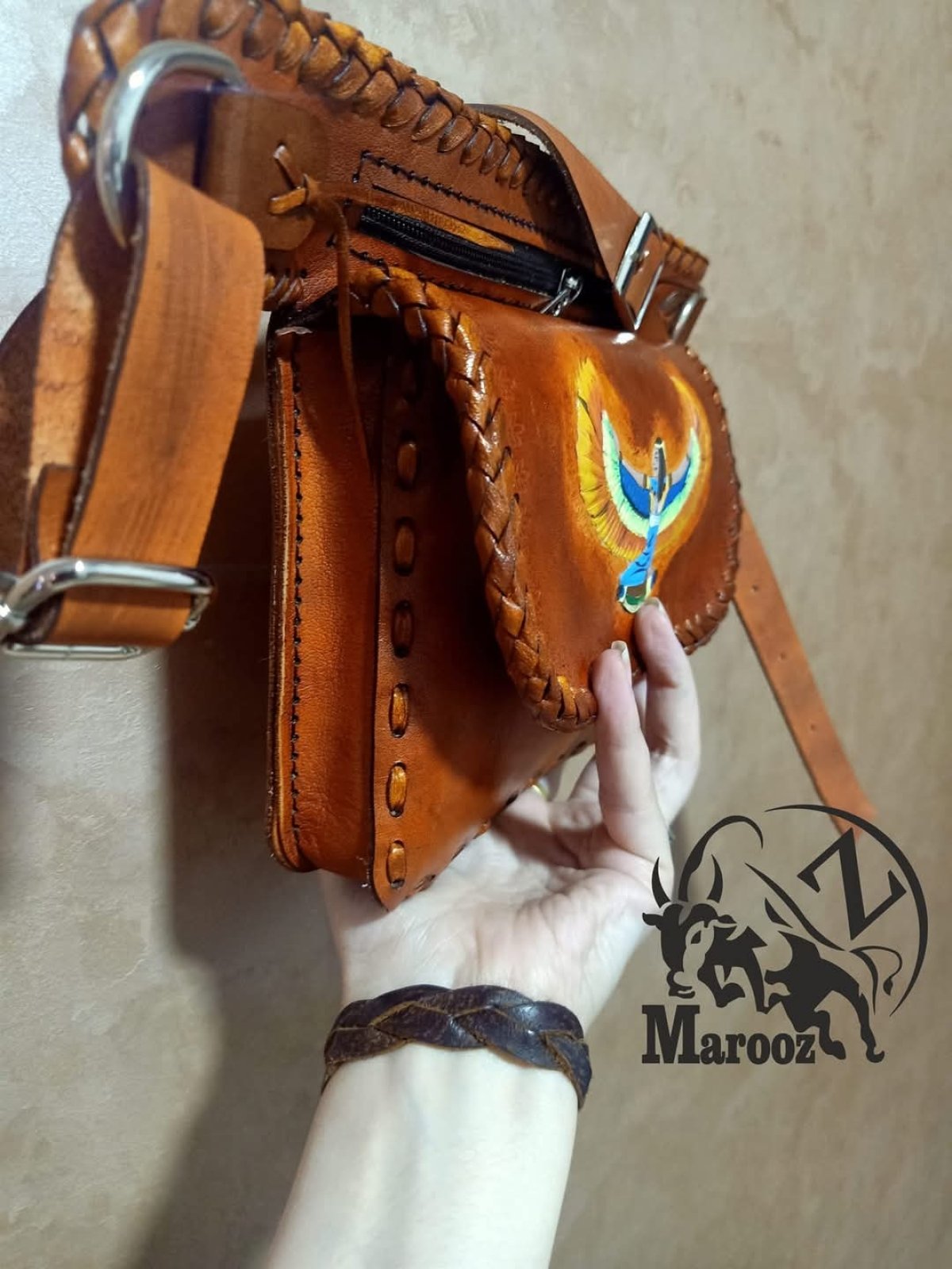 شنطه وسط حريمي جلد بقري بالكامل دق وتلوين ونحت يدوي