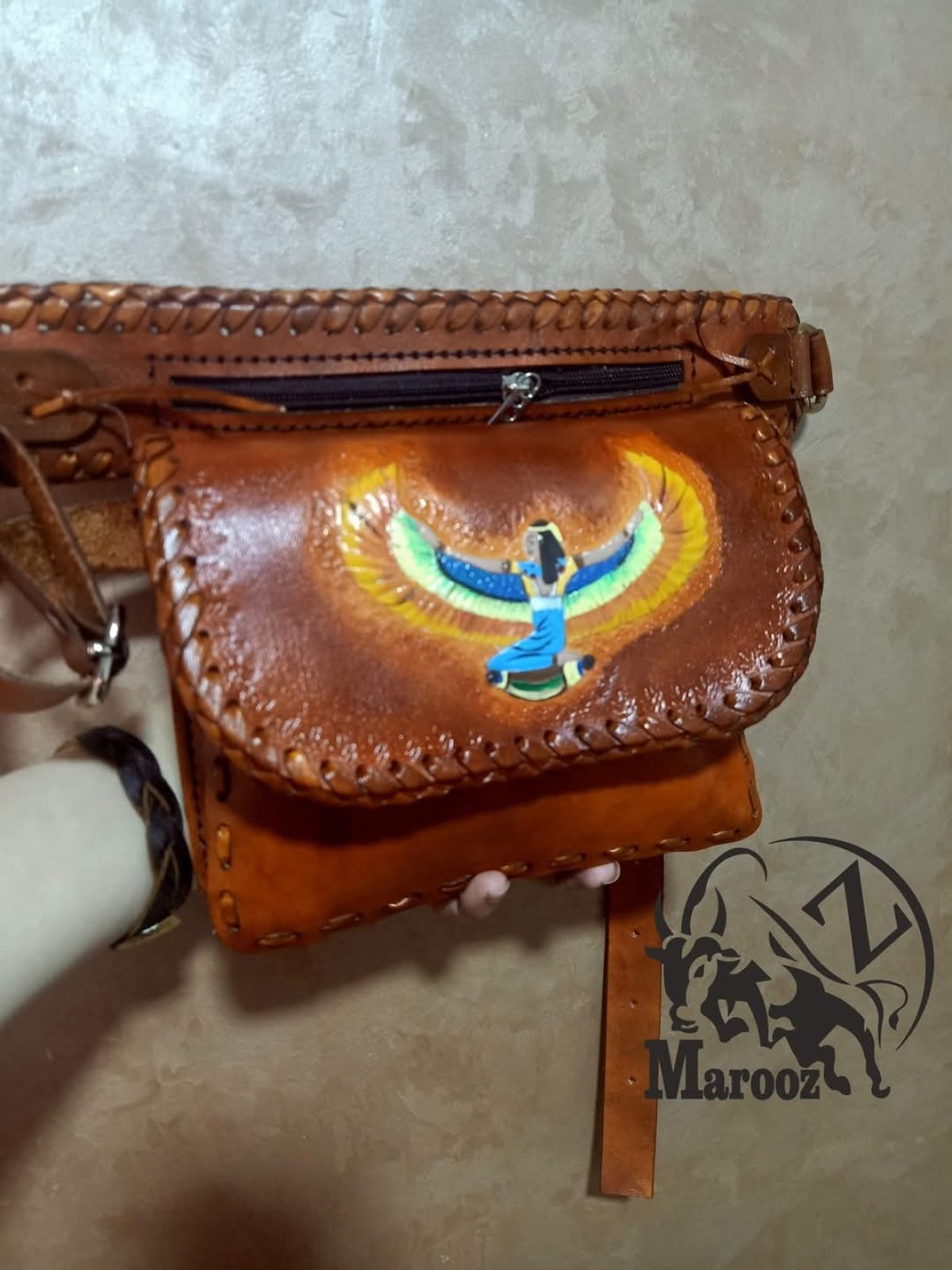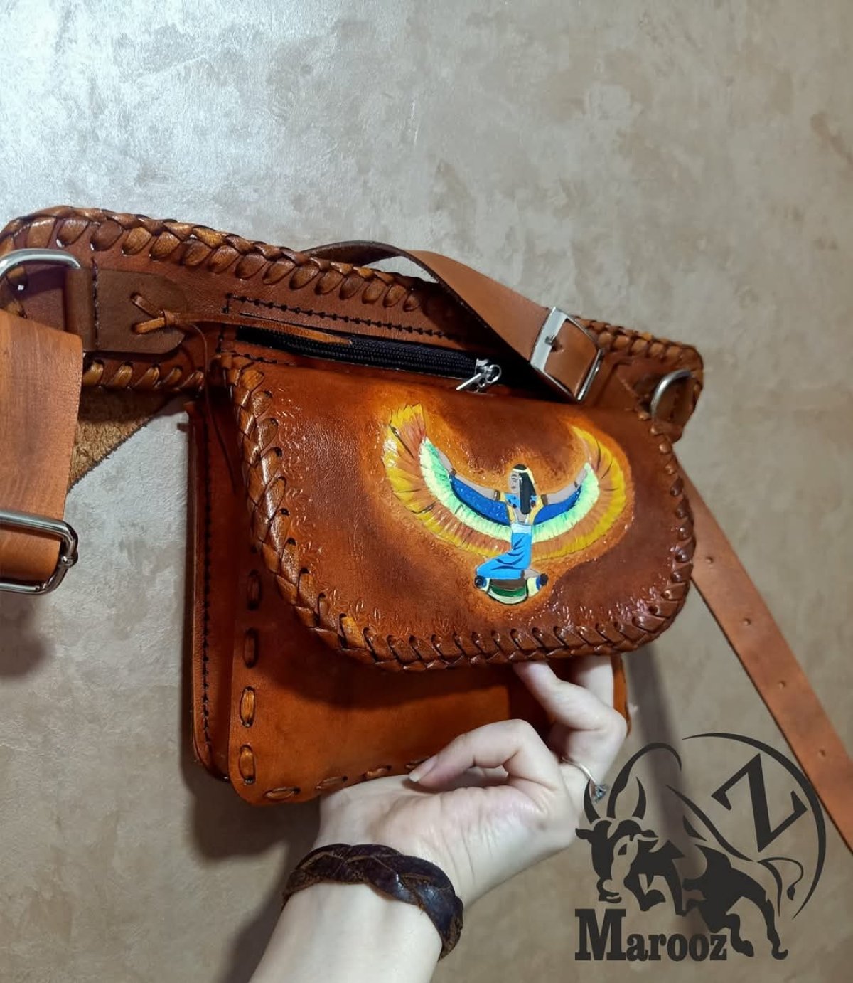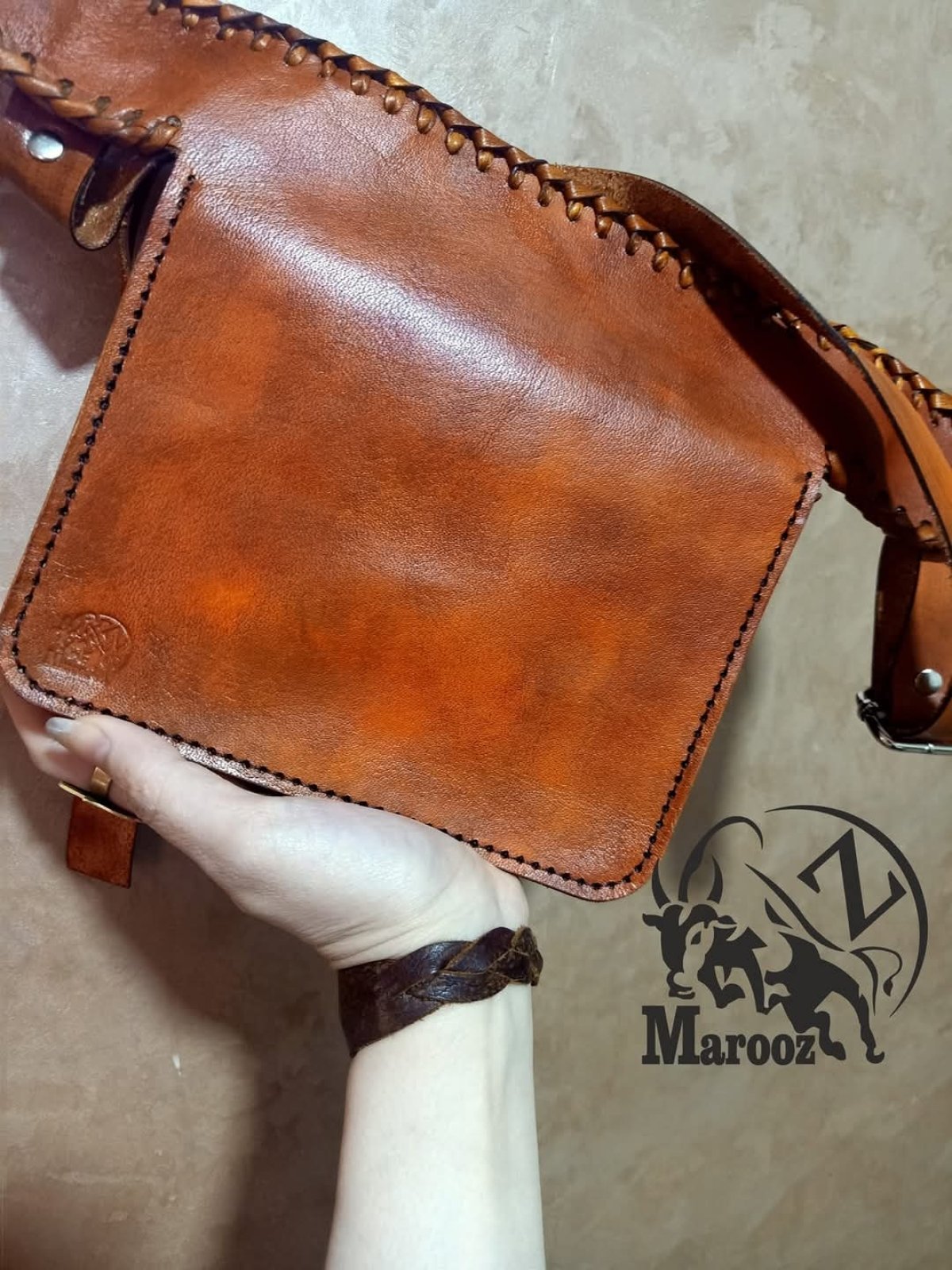 شنطه وسط حريمي جلد بقري بالكامل دق وتلوين ونحت يدوي