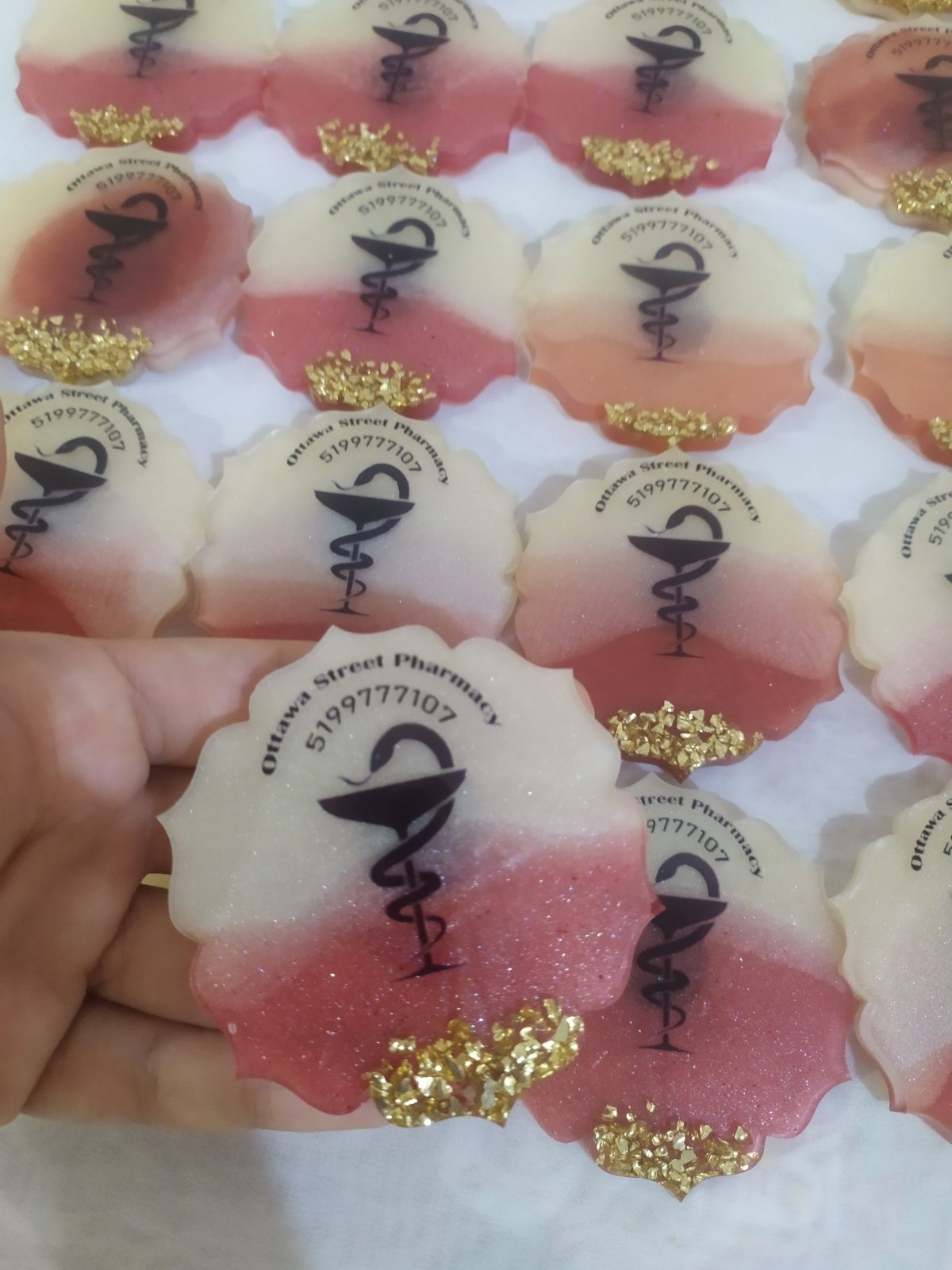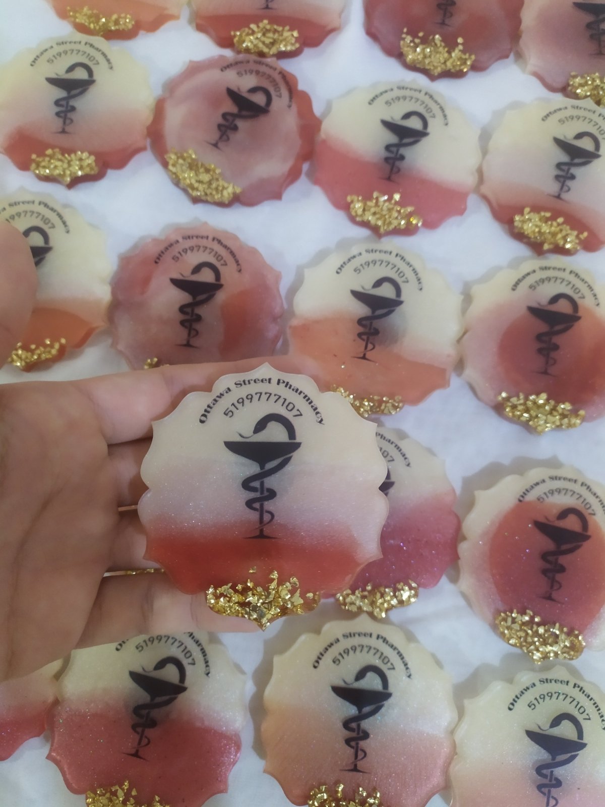 توزيعات صيدلية من الريزن تستخدم كمغناطيس باسم ورقم الصيدلية مقاس 7 سم