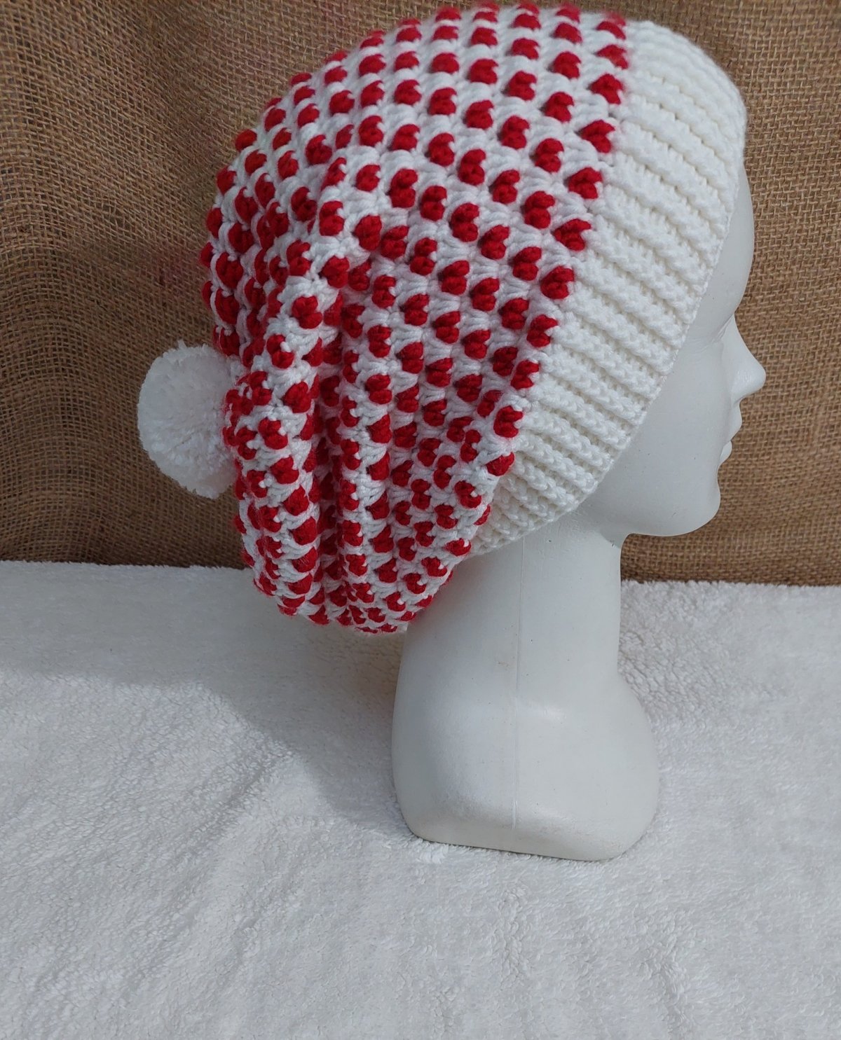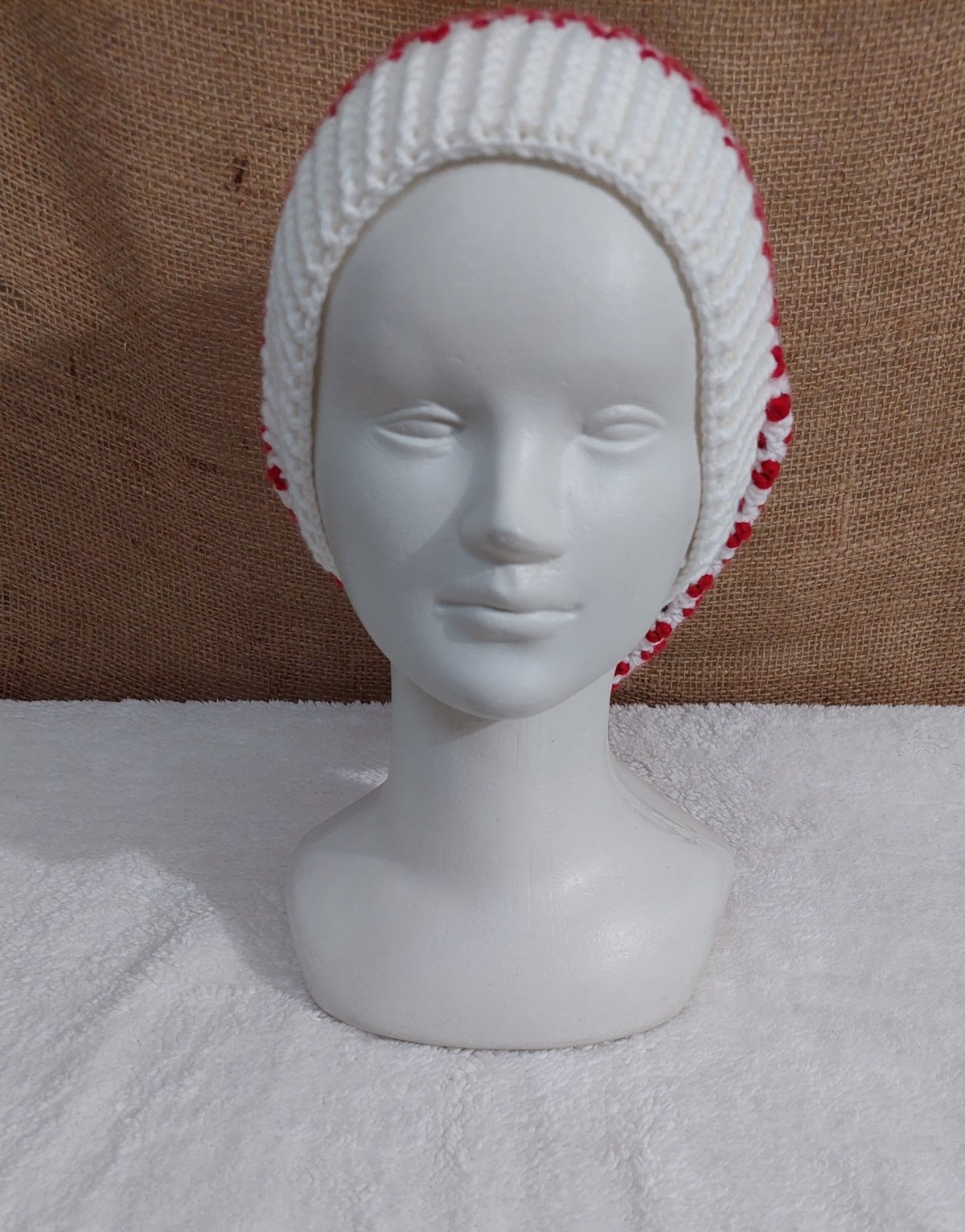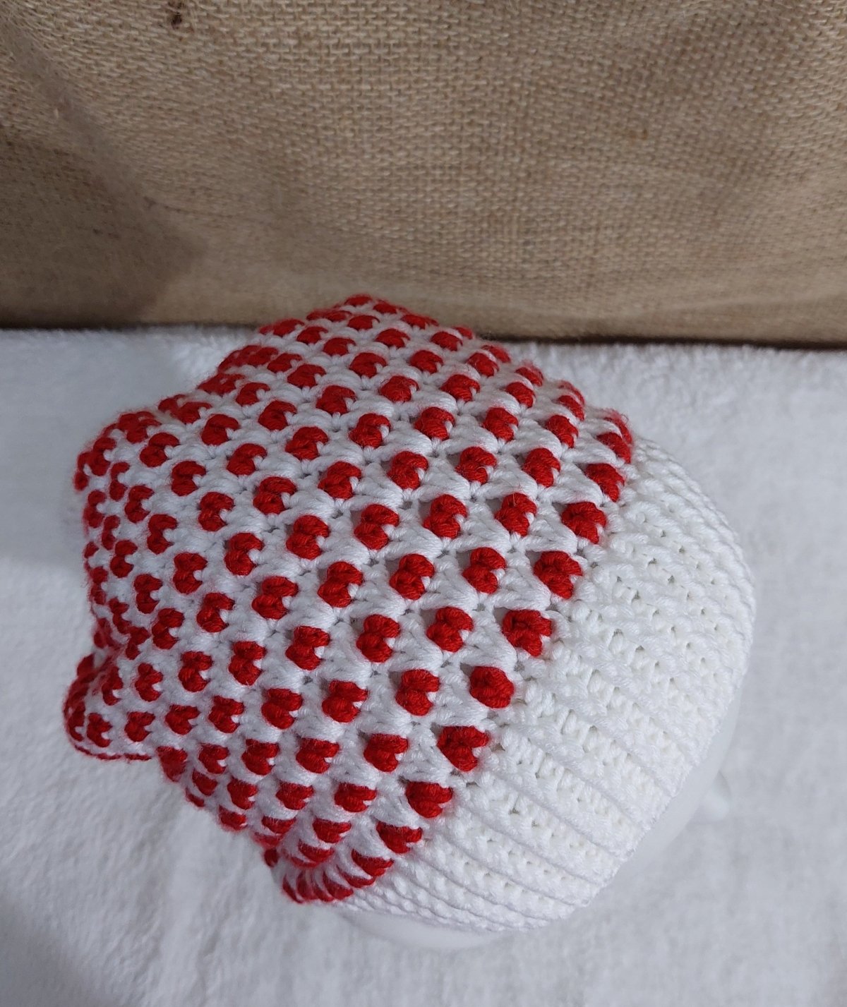 آيس كاب القلوب كروشيه صوف ناعم مستورد بلونين الاوف وايت والاحمر