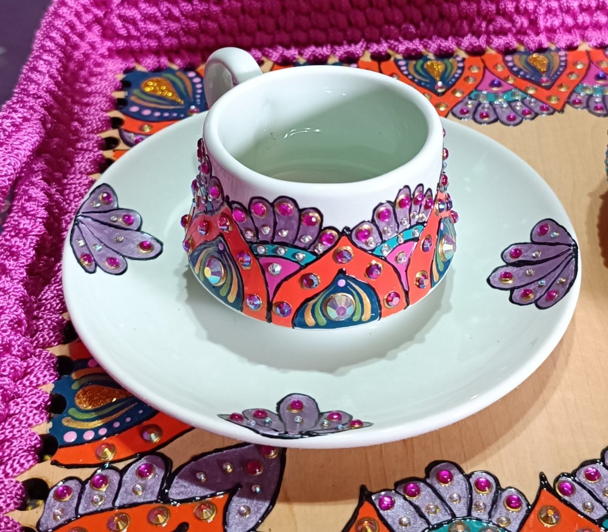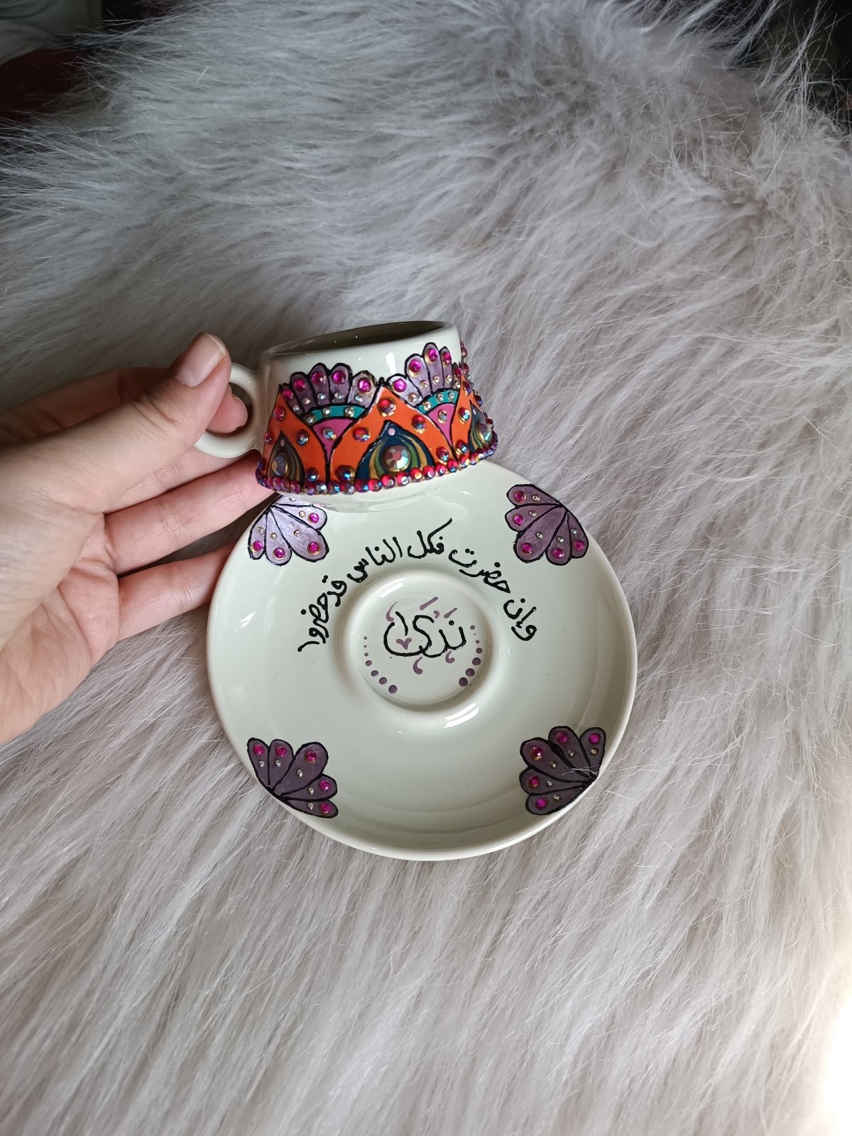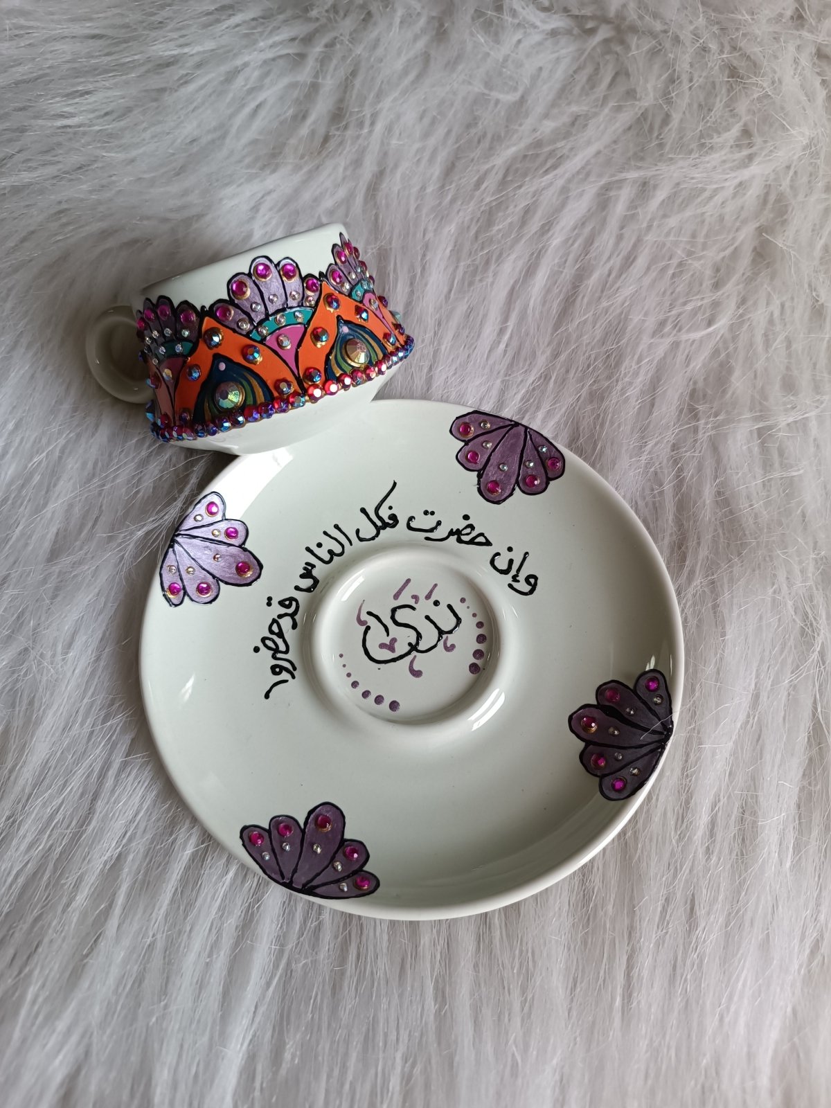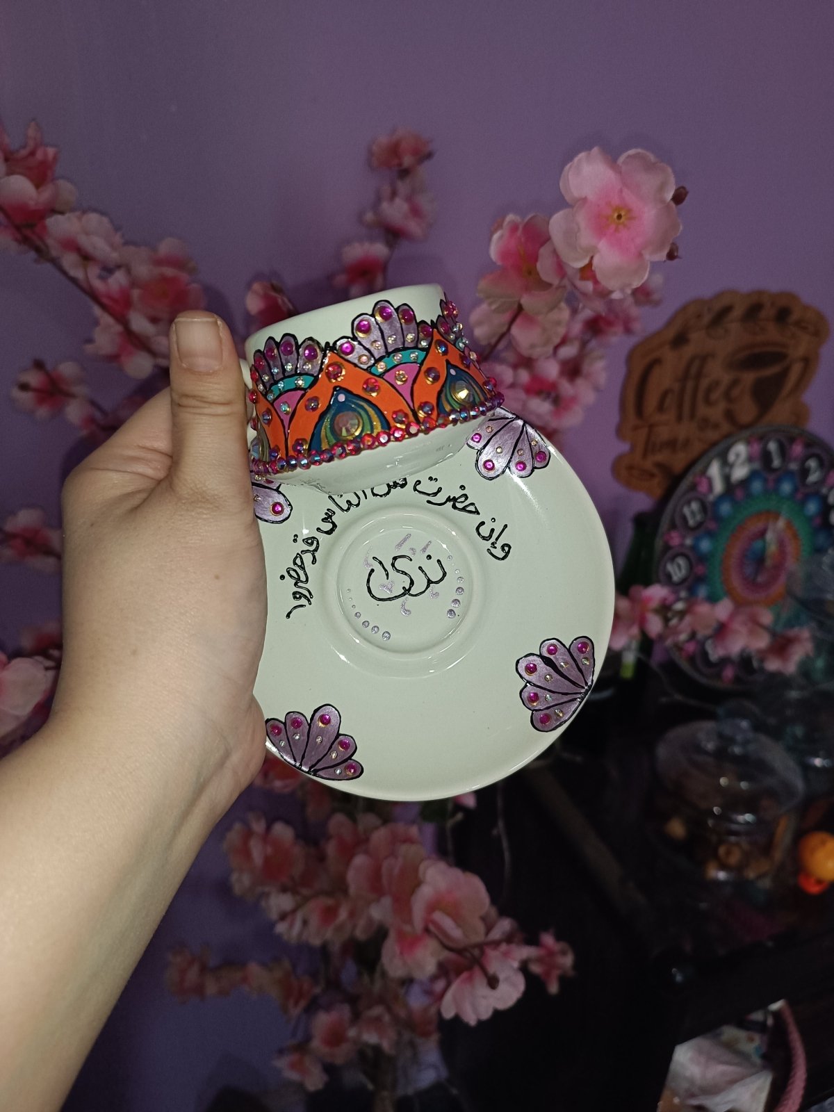 فنجان قهوه برسم يدوي وترصيع كريستال قابل للغسيل اليدوي بليفة ناعمة غير مسموح بدخول الميكروويف سعة ١٠٠مل