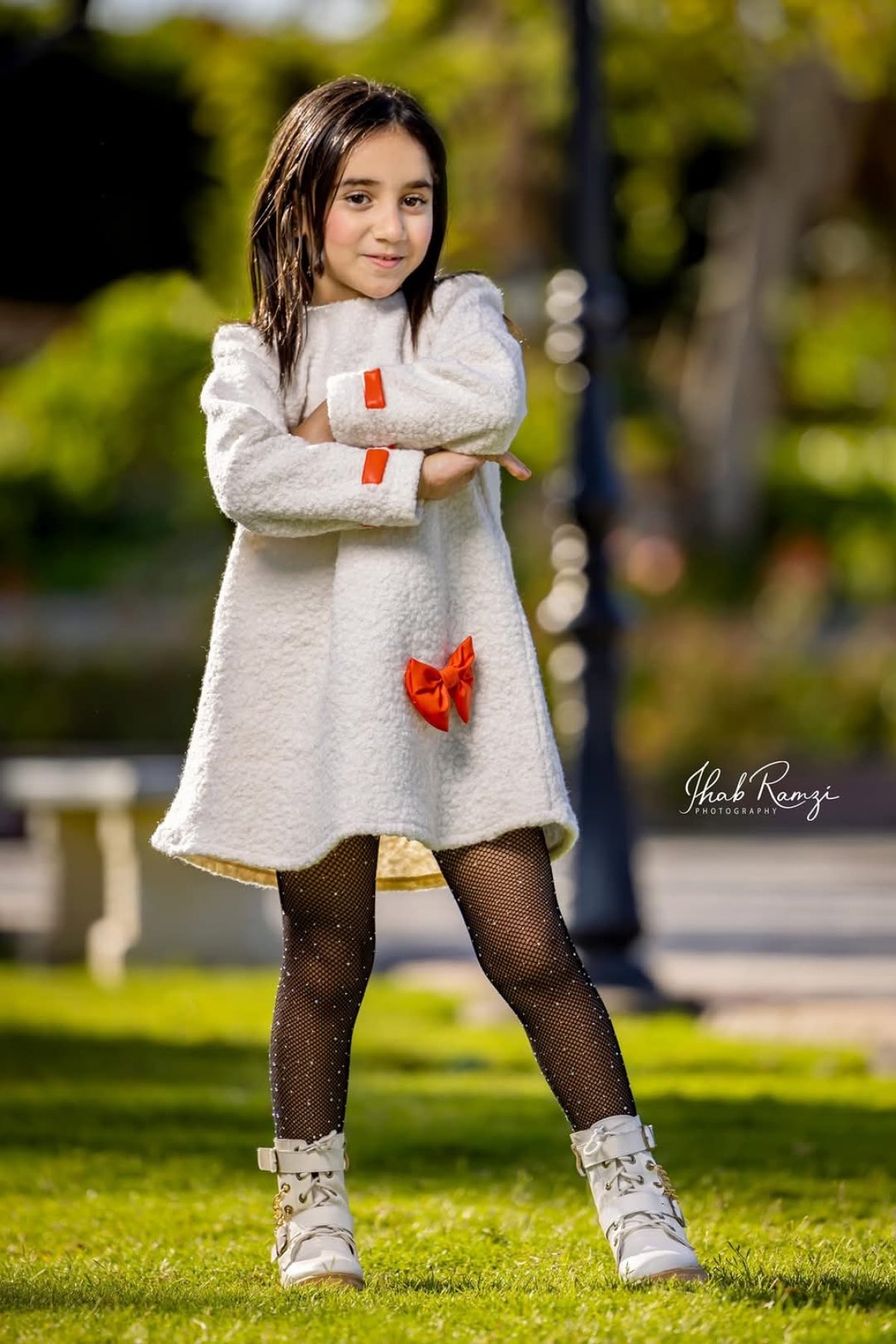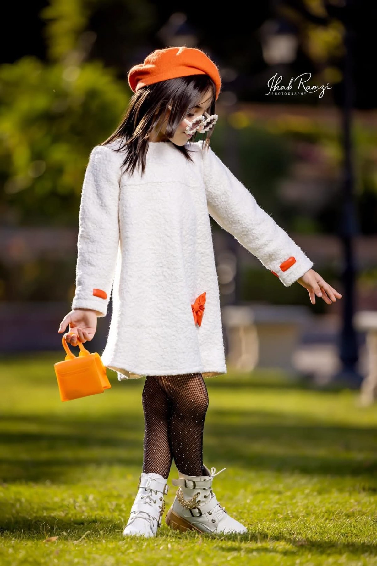 فستان صوف ابيض مناسب للشتاء ناعم على جسم الأطفال من 4..5سنين مطعم بالجلد