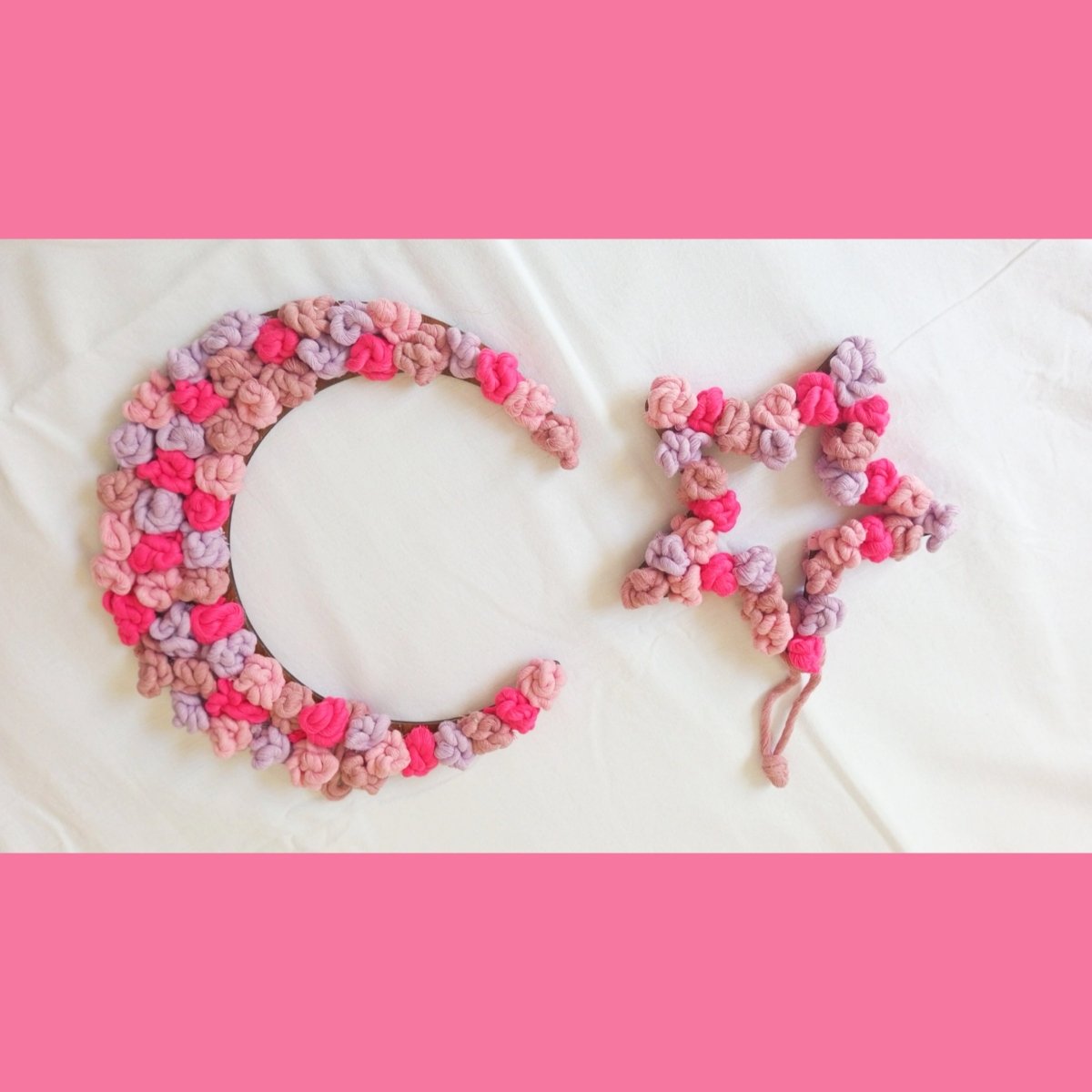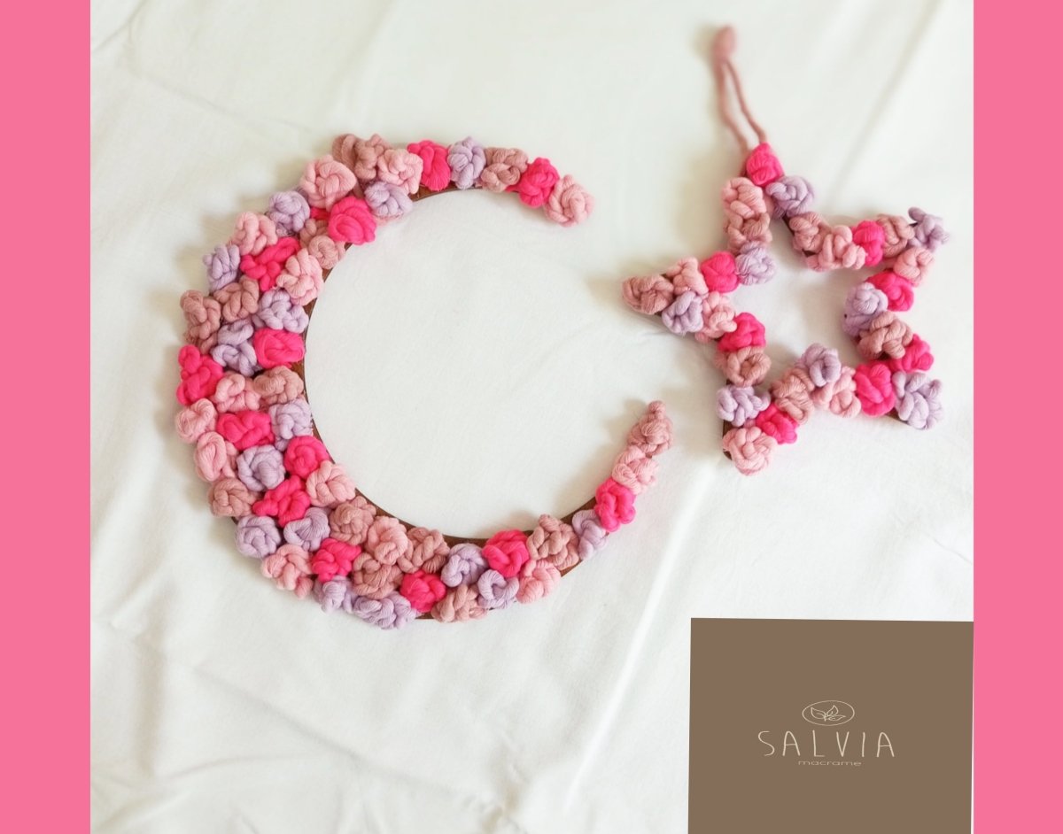 هلال ونجمه زينه رمضان بألوان مميزه وخيوط مكرميه الهلال مقاس 25سم النجمه مقاس 15سم متاح تغيير الالوان حسب الرغبه