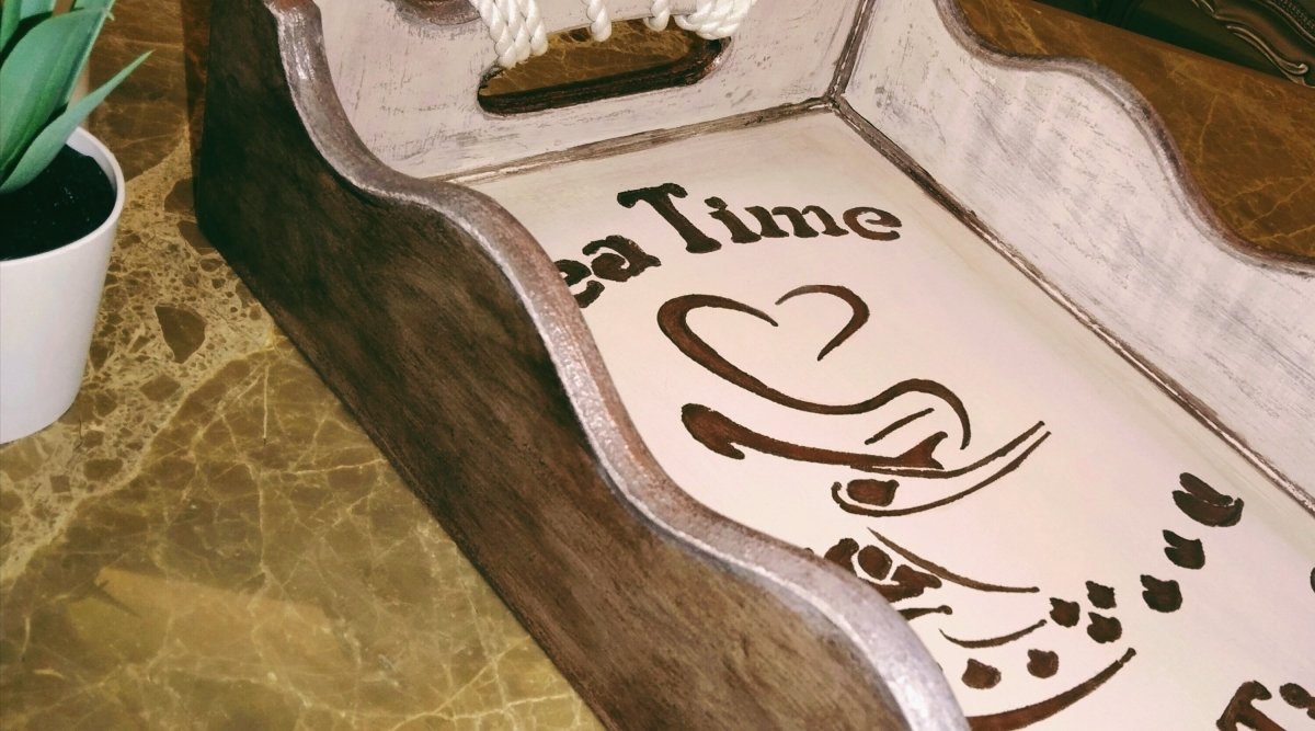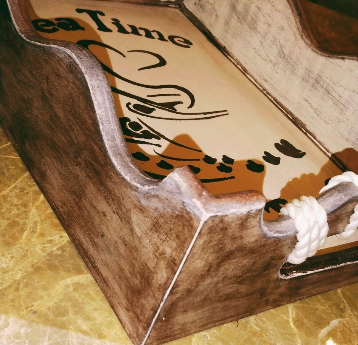 صينية خشب مستطيلة الشكل تستخدم للتقديم او كقطعة ديكورية عصرية