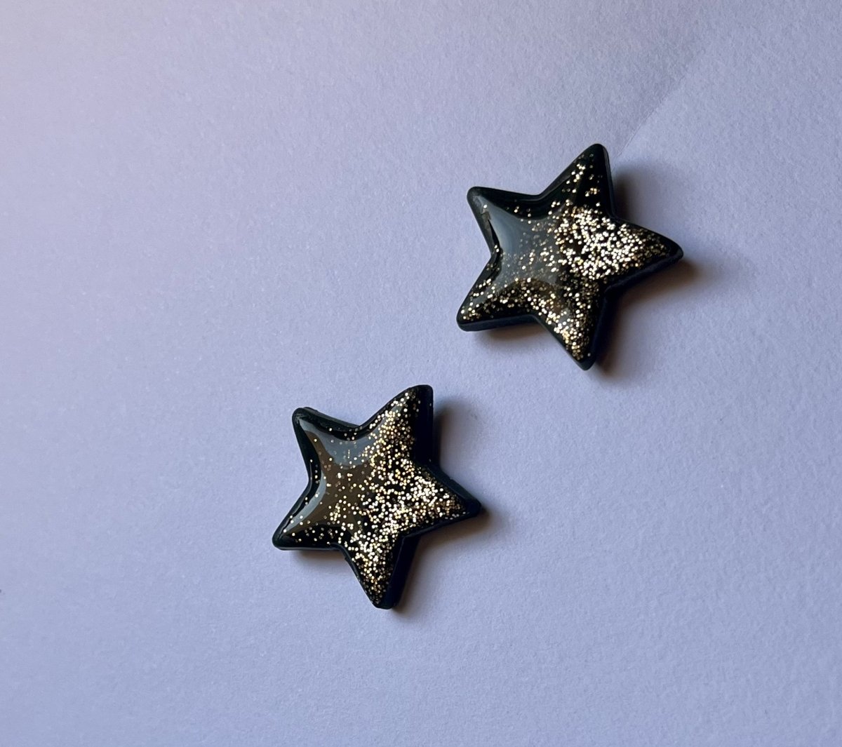 حلق مصنوع يدوياً من الصلصال الحراري مغطى بالريزن مع اجزاء معدن مقاوم للصدأ ولا يسبب الحساسية ابعاد الحلق ٣ * ٣ سم