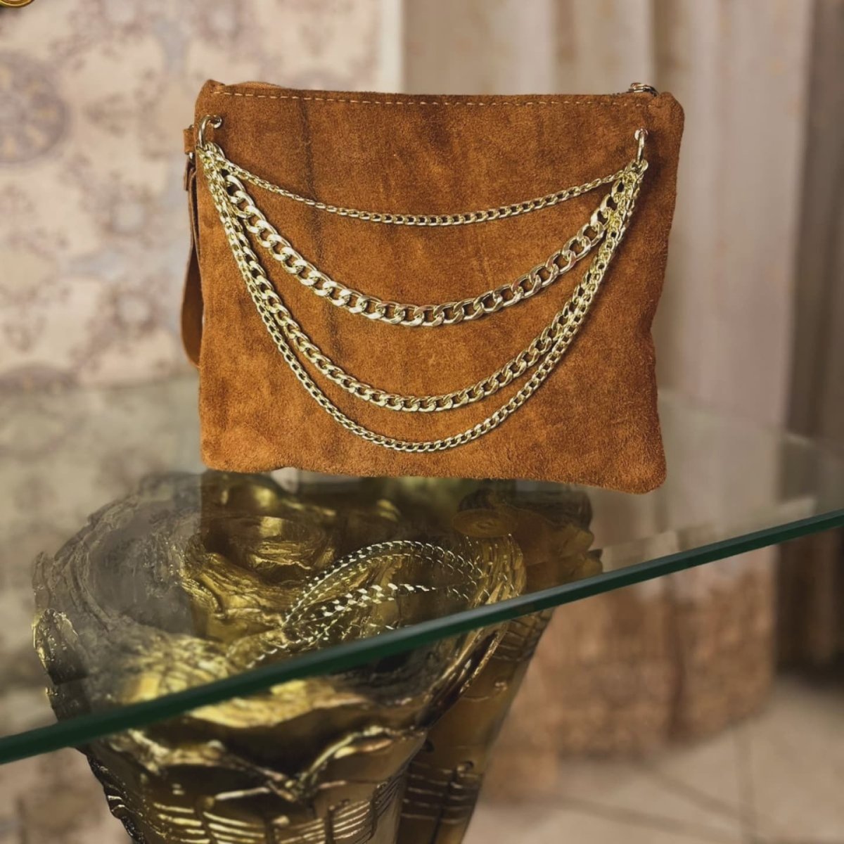 كلاتش السلسله جلد طبيعي هاندميد من blla designs مقاس ٢٢*٢٦