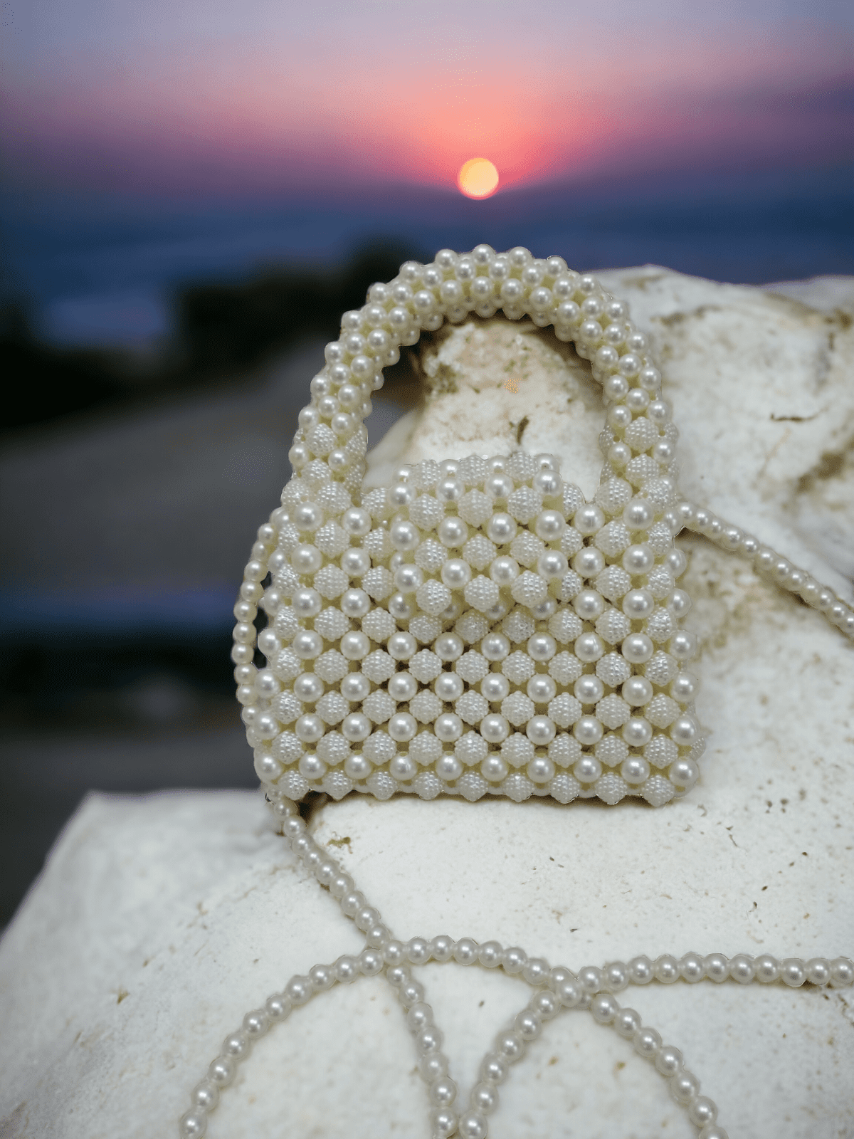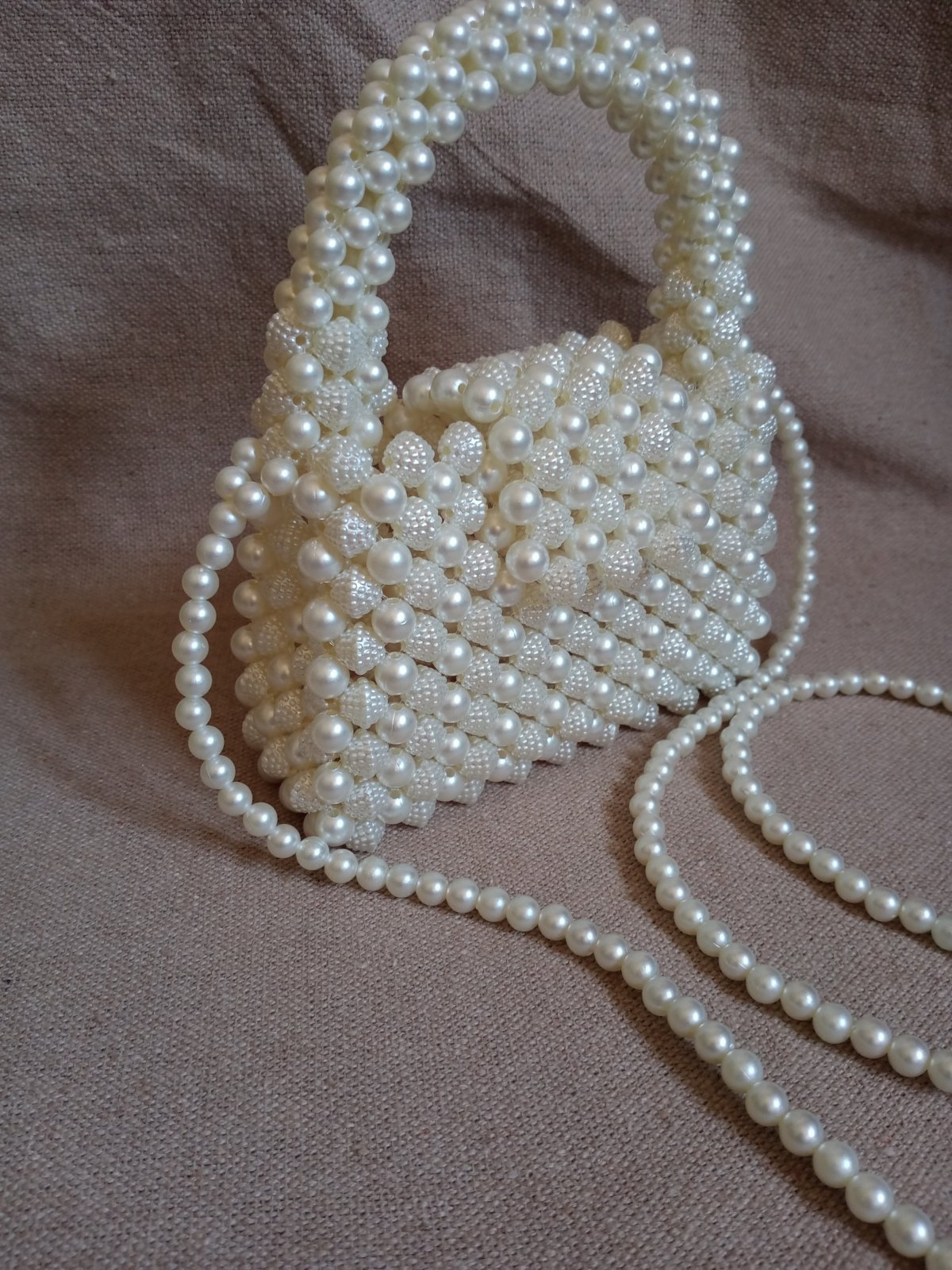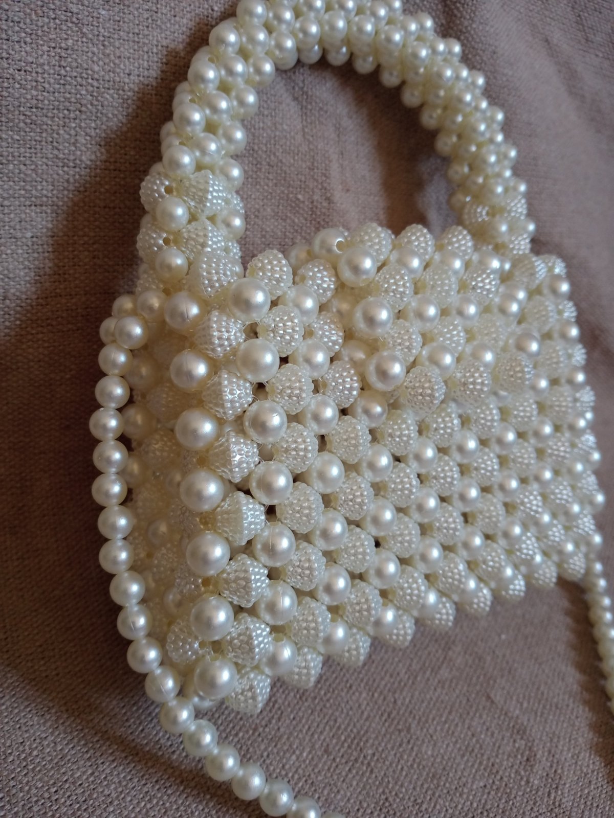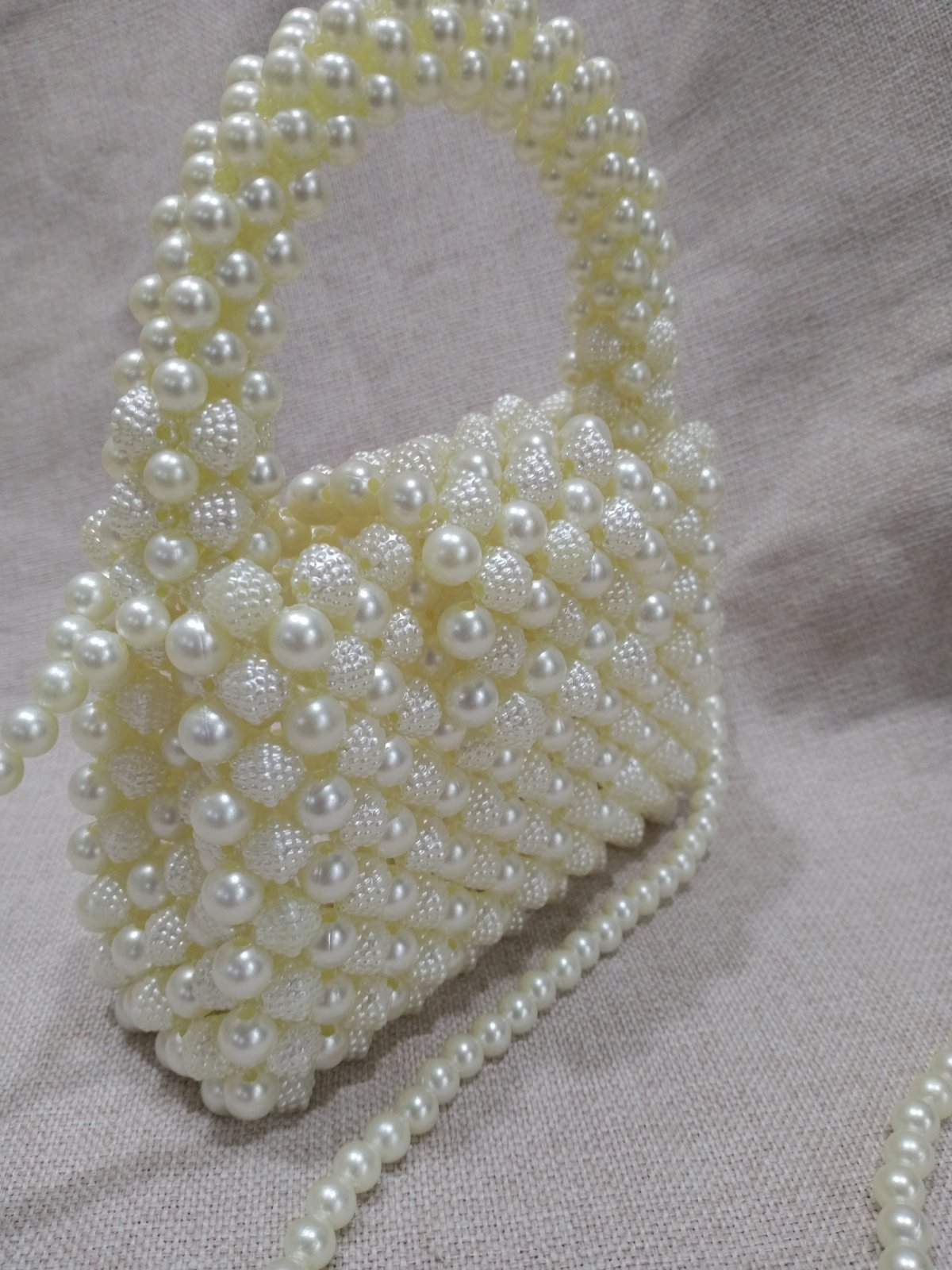 شنطه نسائيه صنعت يدويا من حبات اللولي وفتافيت السكر لها دراع كروس مقاس 15/10