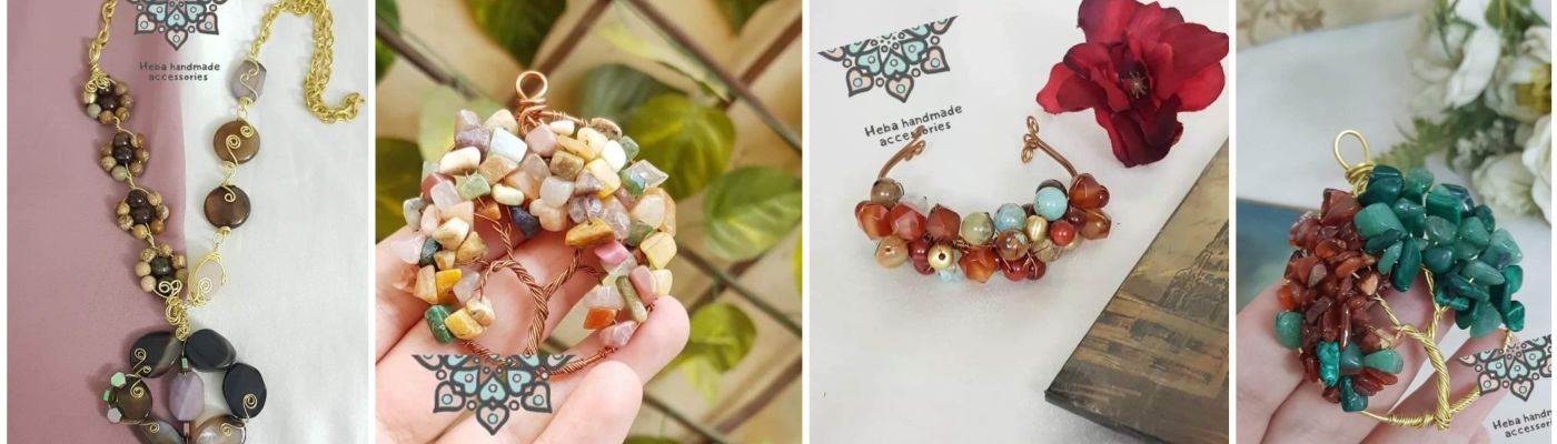 "Heba handmade accessories "تصاميم مميزة من الحلي الهاندميد من النحاس الأحمر والأصفر المطعم بالأحجار الكريمة -اكسسوارات وديكورات للبيت من الشجر المصنوع يدويا من النحاس والأحجار الكريمة بقواعد من الريزن -اكسسوارات للبيت من صواني وكوسترات ولوحات من الريزن ومن الخشب أو الكانفاس مع الريزن