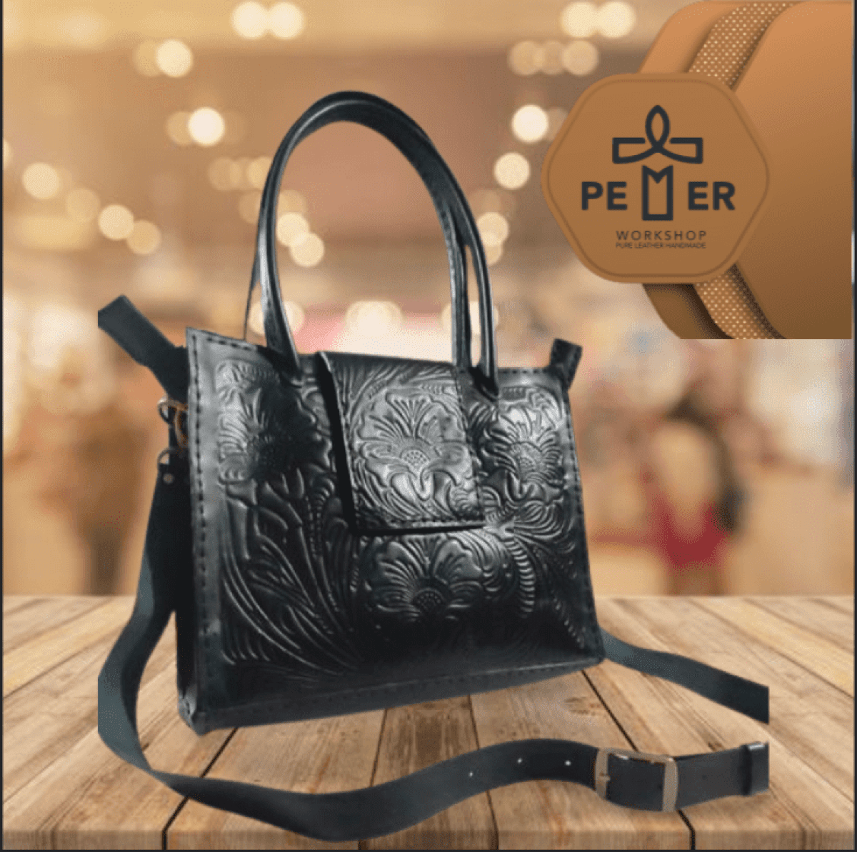 New Sanabel bag Natural leather Dimensions: 35 * 29.5 * 11 cm Drawing pressed on the leather Hand sewing for the bag 2 handles Small handle 65 cm Long handle 180 cm Zipper under the tongue Hand sewing