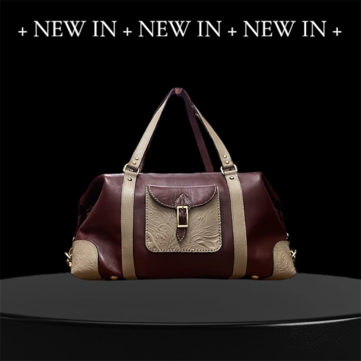 Genuine leather travel bag, practical design, contains 2 zippered pockets, and 2 large pockets. Size: 60*37*20 Very practical for quick trips