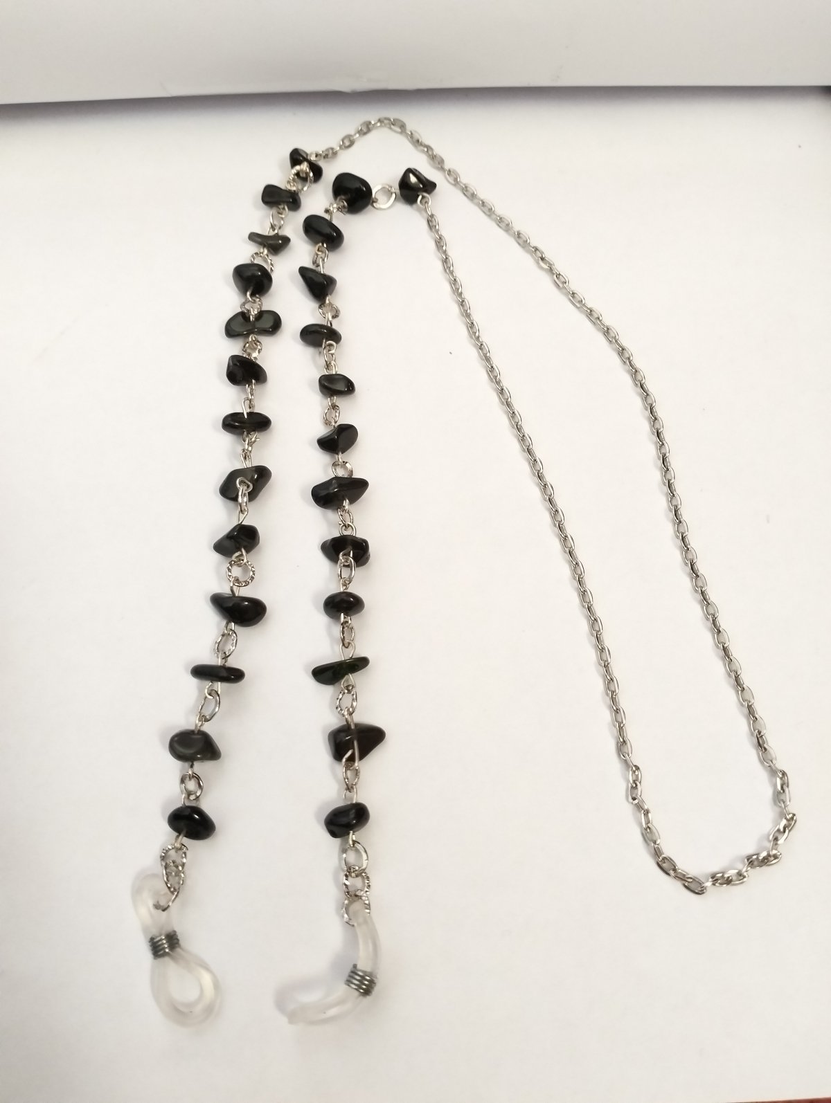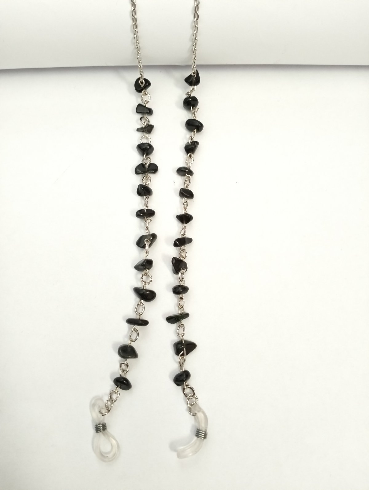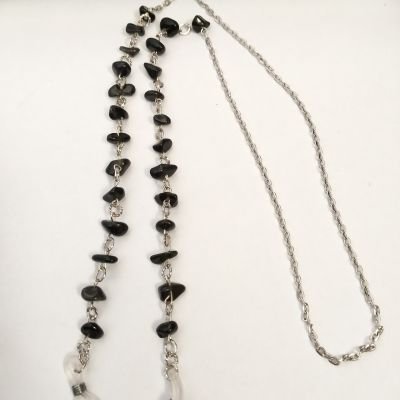 Black eyeglasses chain with a broken agate stone, length 32 cm