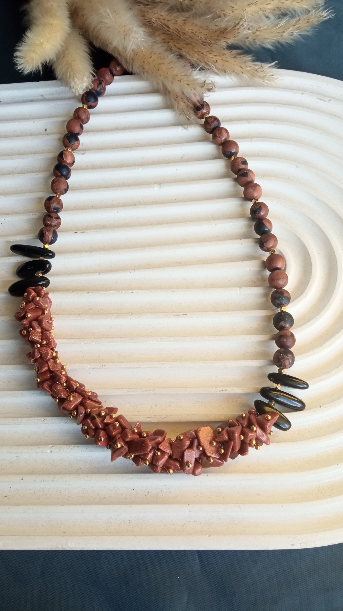 Jasper stone necklace with Goldstone and Chinese gold spacers Necklace length is 61 cm