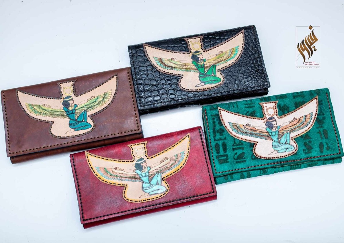 Genuine leather wallet with pockets for cards and money, as well as a zipper pocket Size 22" x 12" and is closed, available in several colors