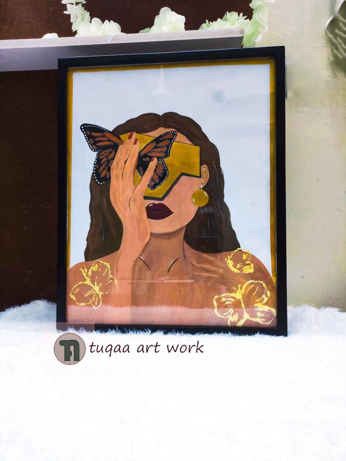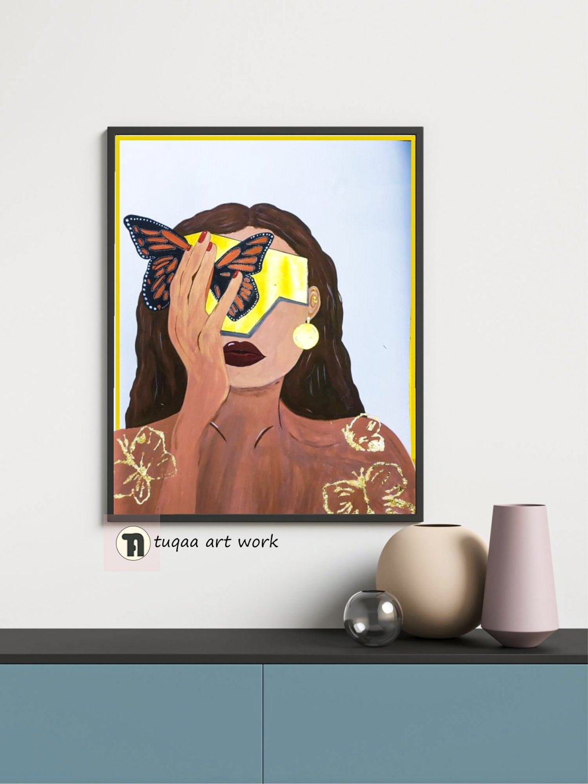 Abstract painting butterfly girl with acrylic painting size:40*50 with Black frame