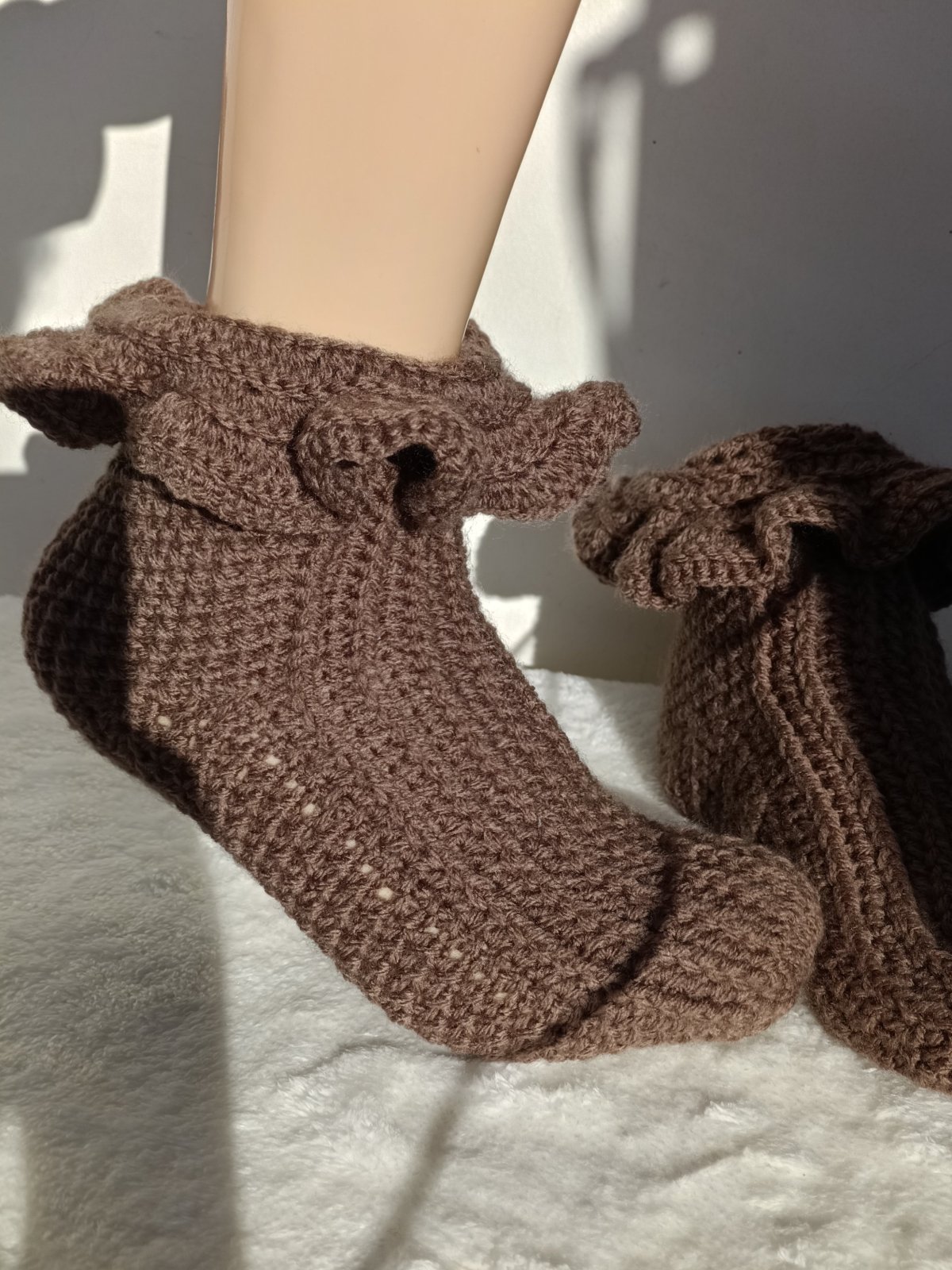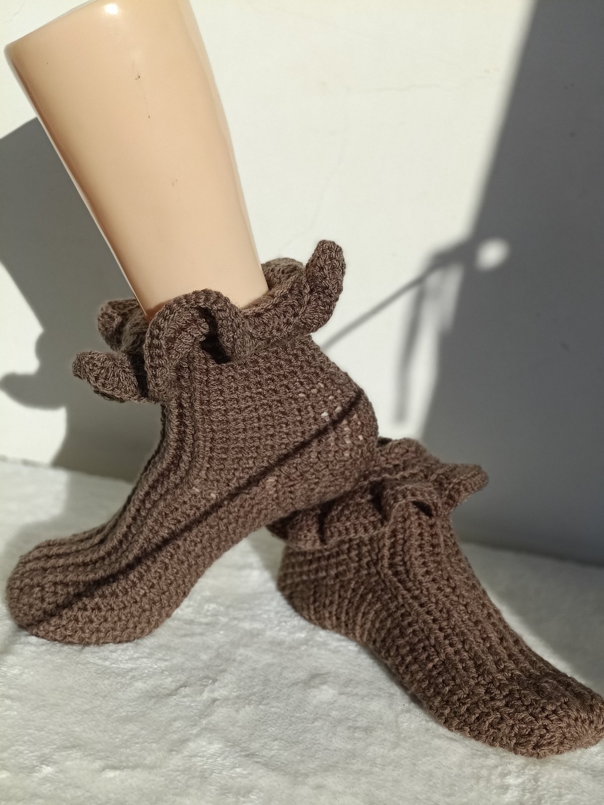 "Warmth and elegance with every step!" If you are looking for socks that not only keep you warm, but also make you shine and stand out, our crochet wool socks are the solution! ✨ Socks Specifications: Handmade with love and professionalism. Very soft and comfortable wool material. Chic half-boot design that suits any winter style. Various colors to suit all tastes. ❄️ Features: Perfect for cold nights and relaxing times. Light on the skin, does not cause allergies. Adds a touch of elegance to your winter clothes. 💡 Choose warmth with a touch of elegance, and let crochet wool socks be your partner in winter!