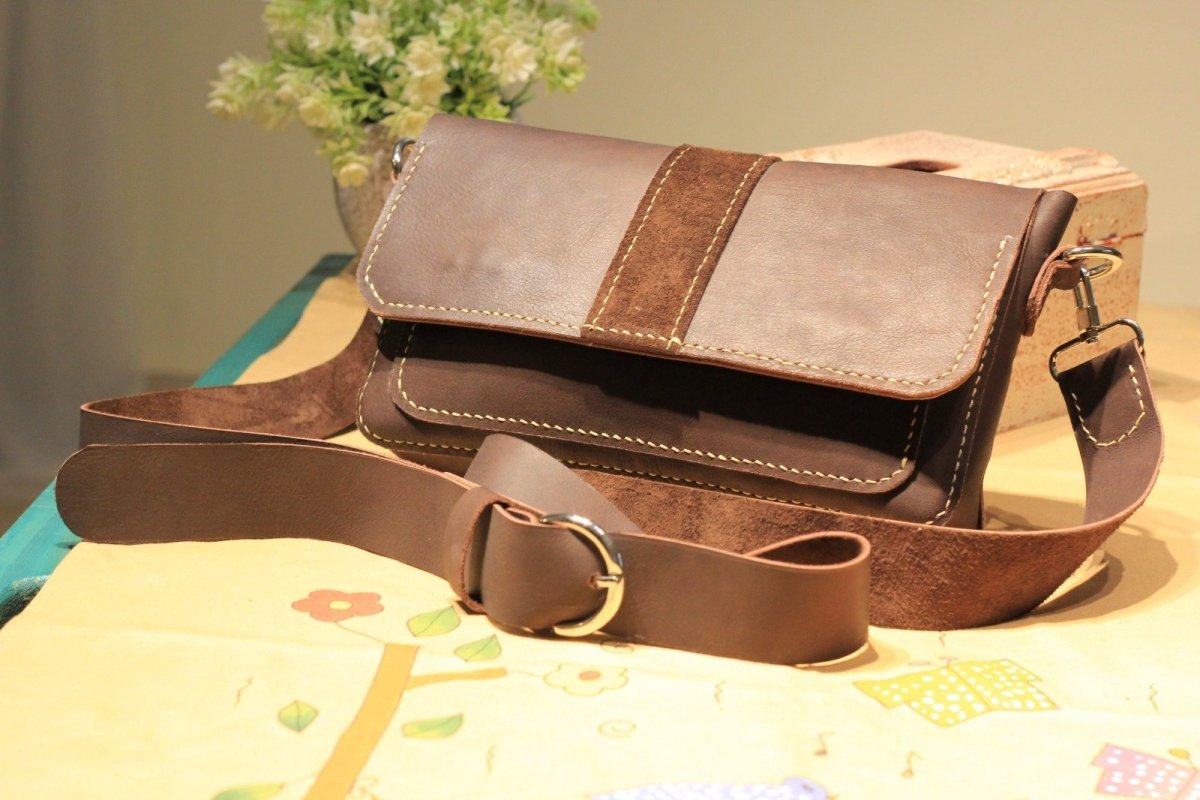 Genuine leather crossbody bag - handmade - with a natural leather handle - it has a pocket on the inside - its dimensions 26*16