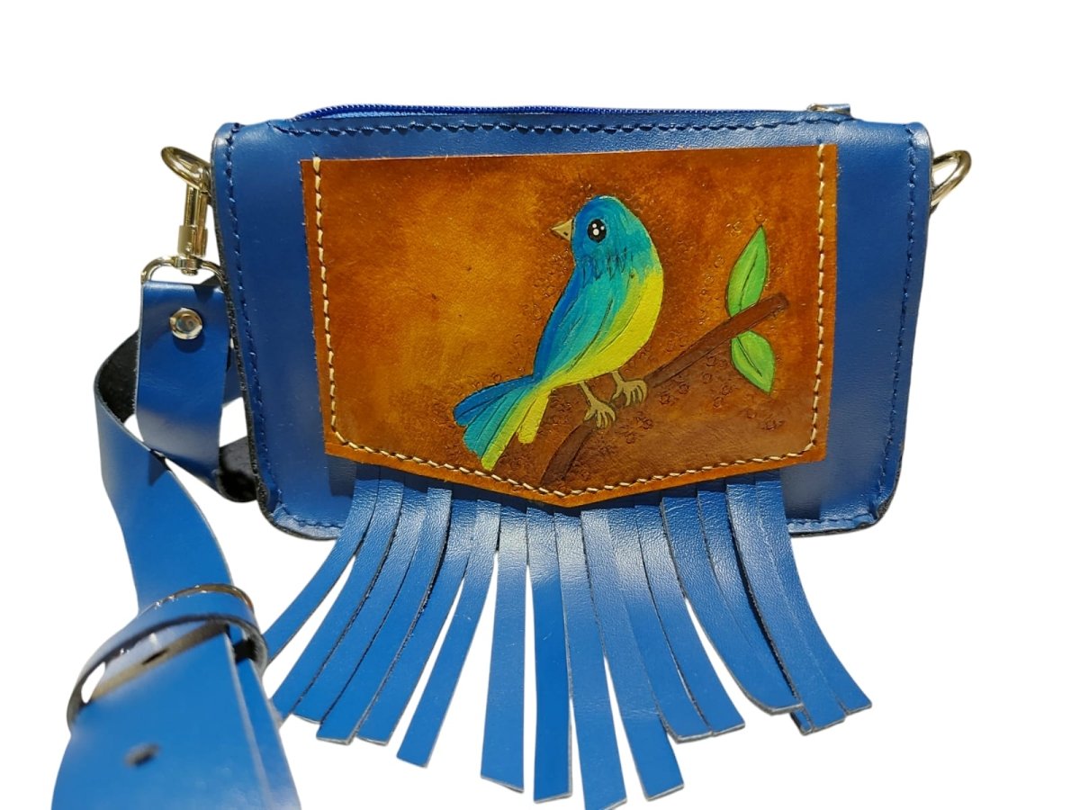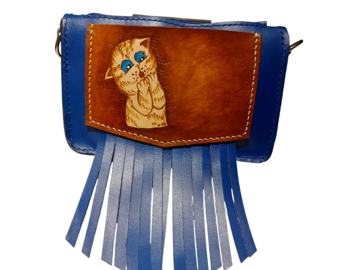 Genuine leather crossbody bag - engravings and colors on the leather - handmade - leather crossbody handle - dimensions 21*13 cm - depth 5 cm