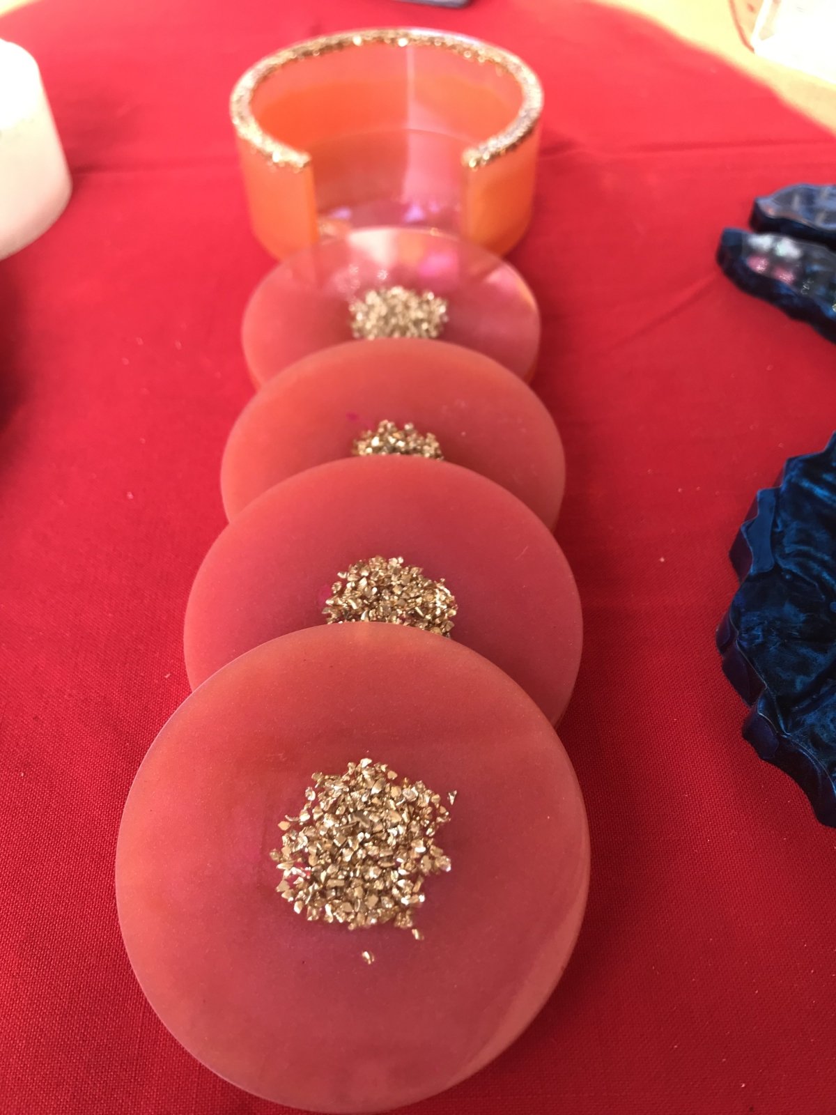 Resin coaster set of 4 coasters with holder, with glitter effect (All colors are available)