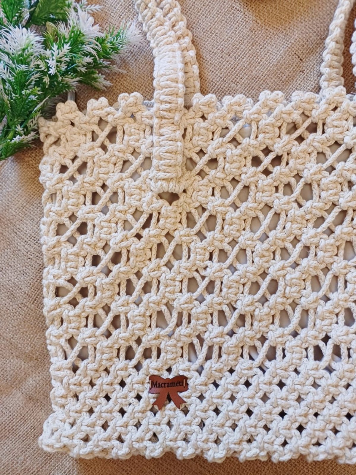 Macrame hand bag by cotton Cordon candy threads with inner lining and 1 pocket closed with zipper