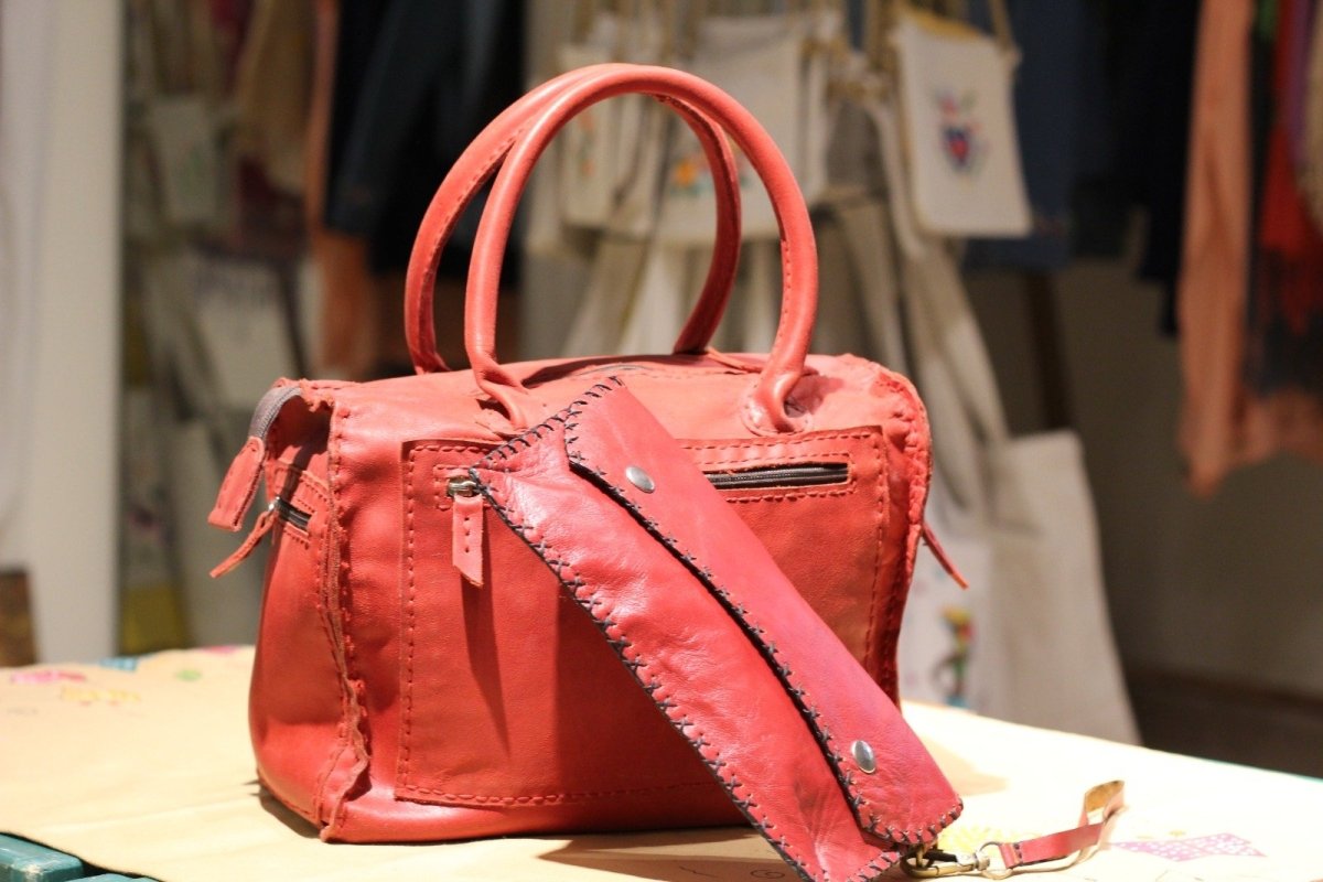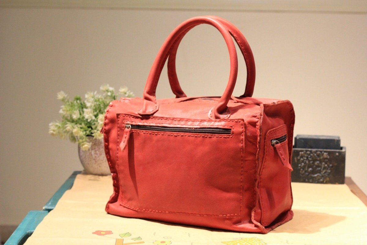 Handmade genuine leather bag - with a short genuine leather handle - front and back pocket + inside pocket - and a pocket on the right and left side - dimensions 29*20 cm