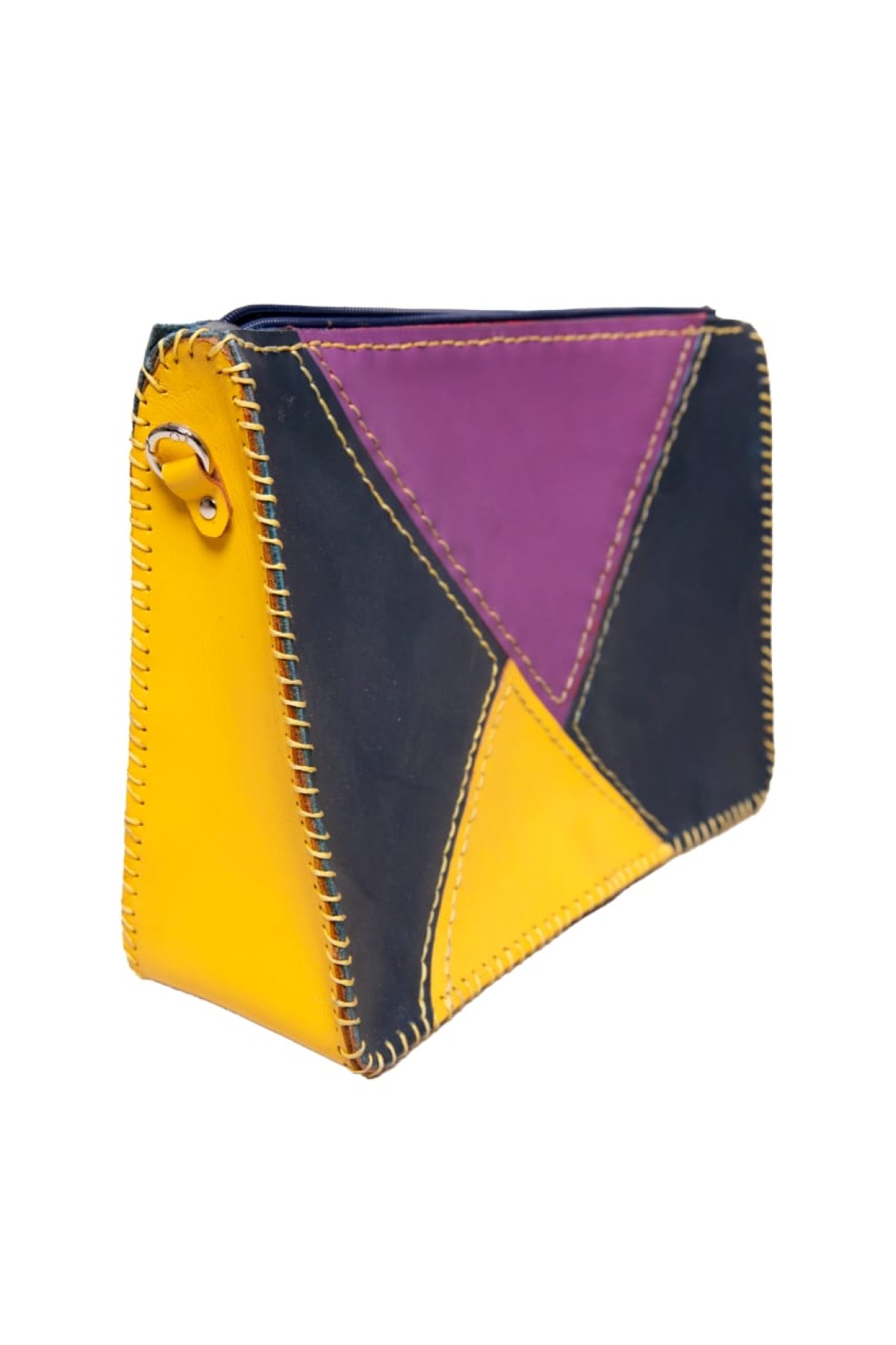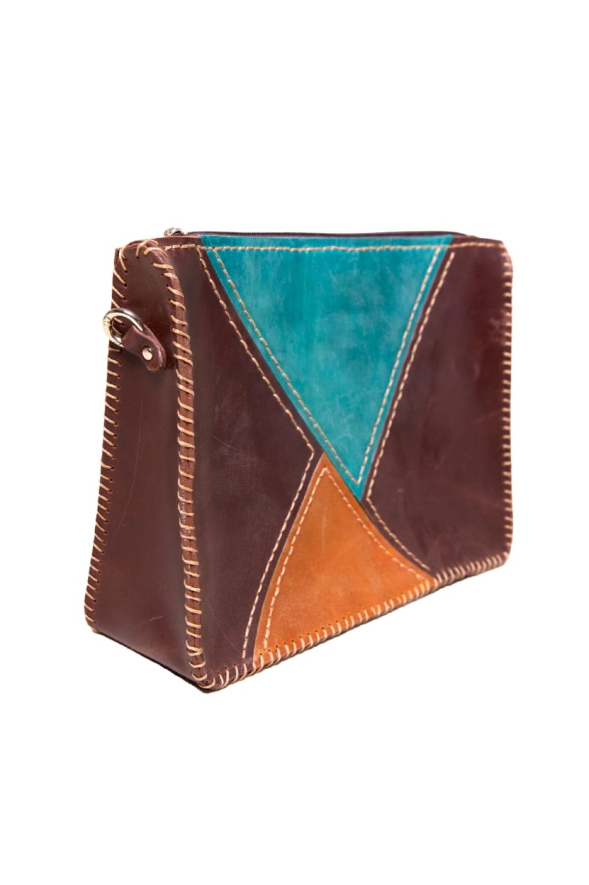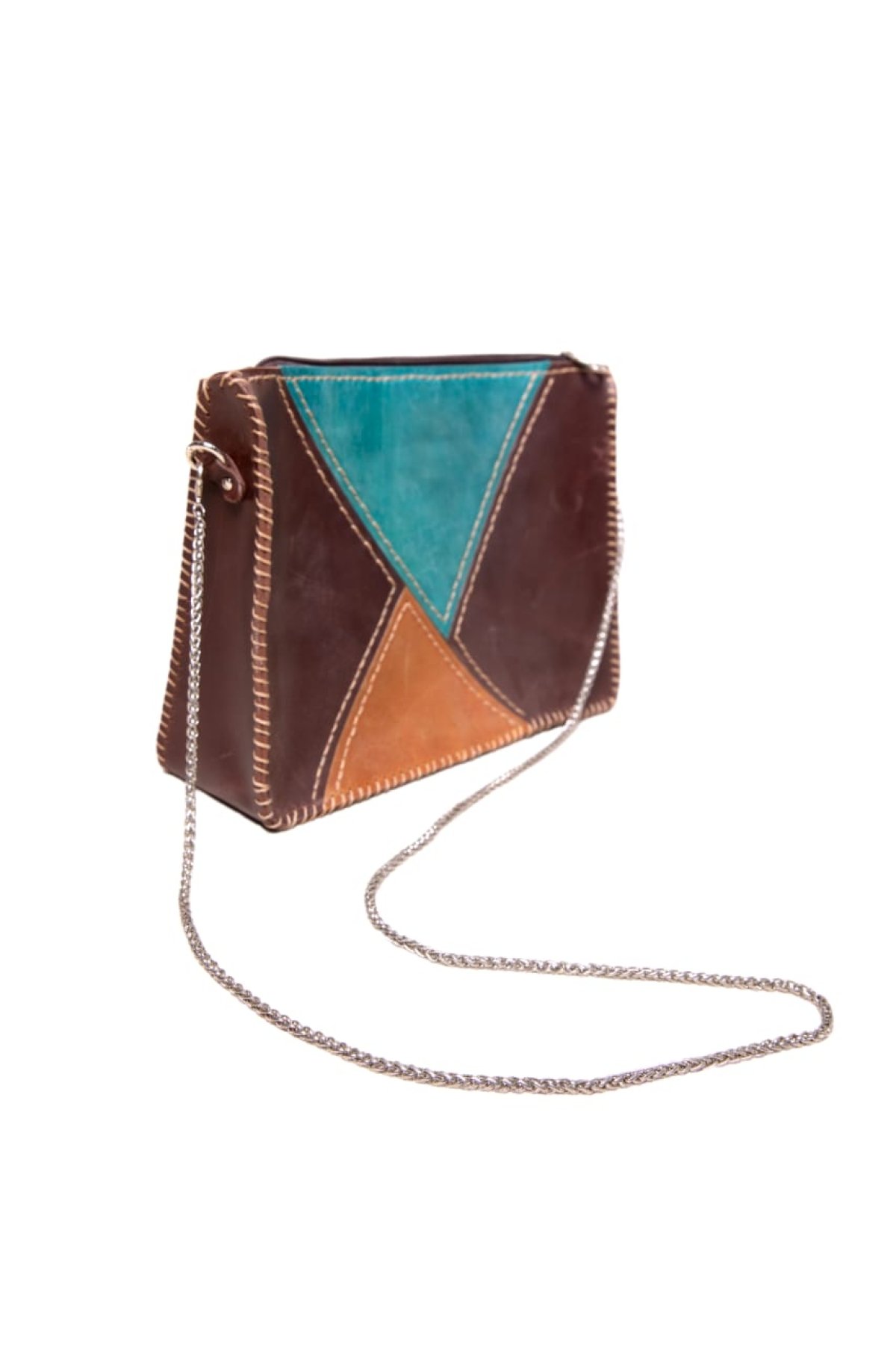 Handmade natural leather clutch - chain handle - three overlapping colors - dimensions 28*21 cm