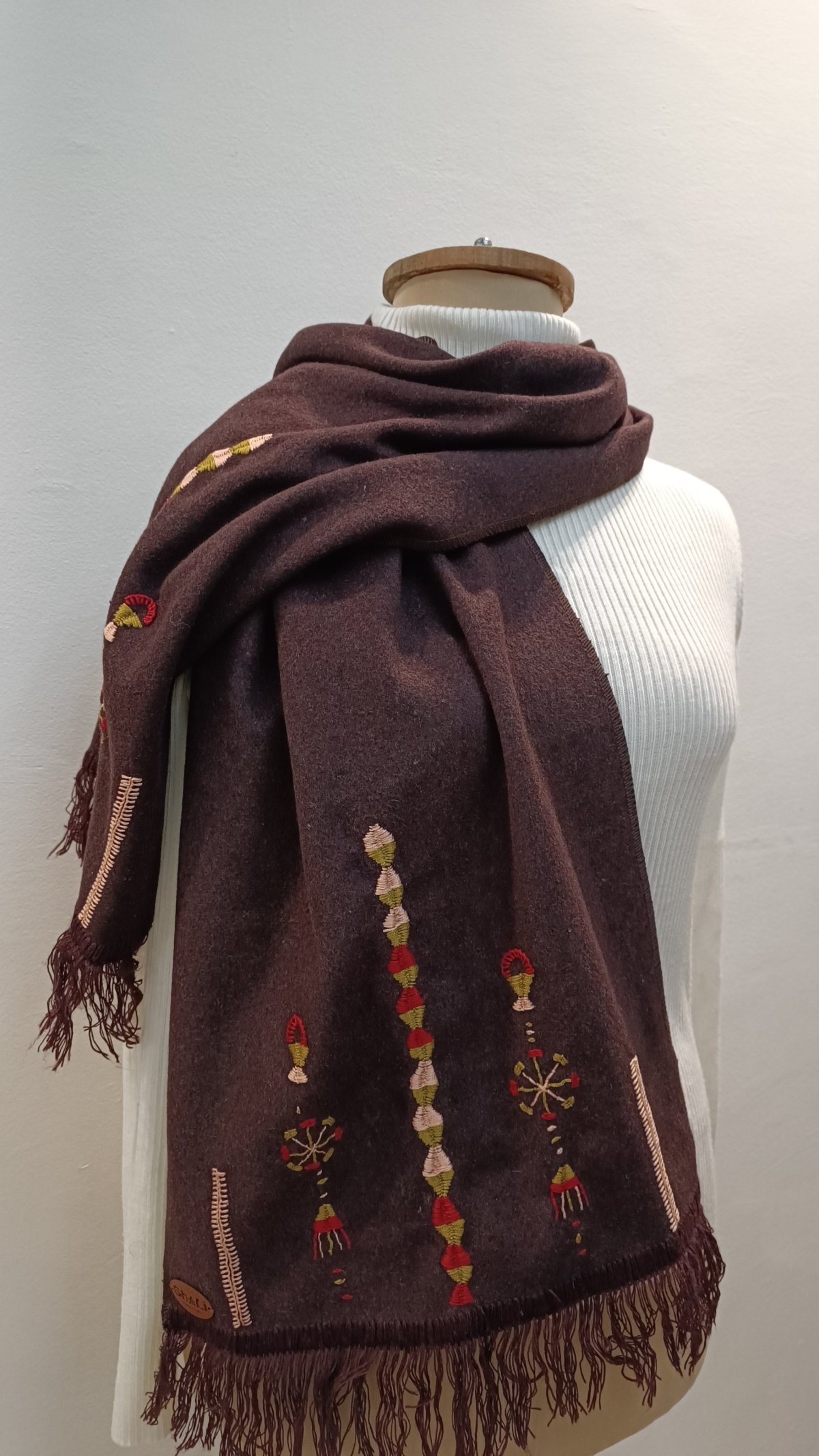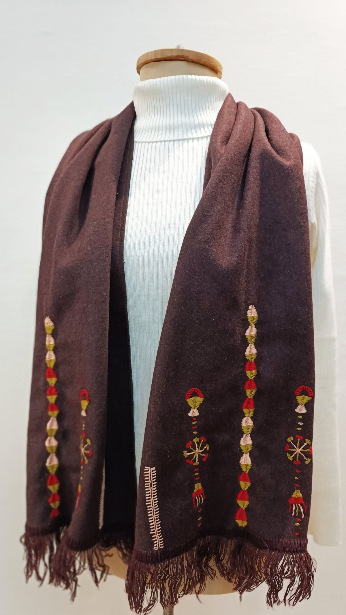 Wool scarf hand emroidered in Siwa oasis. Size: 152*37 cm