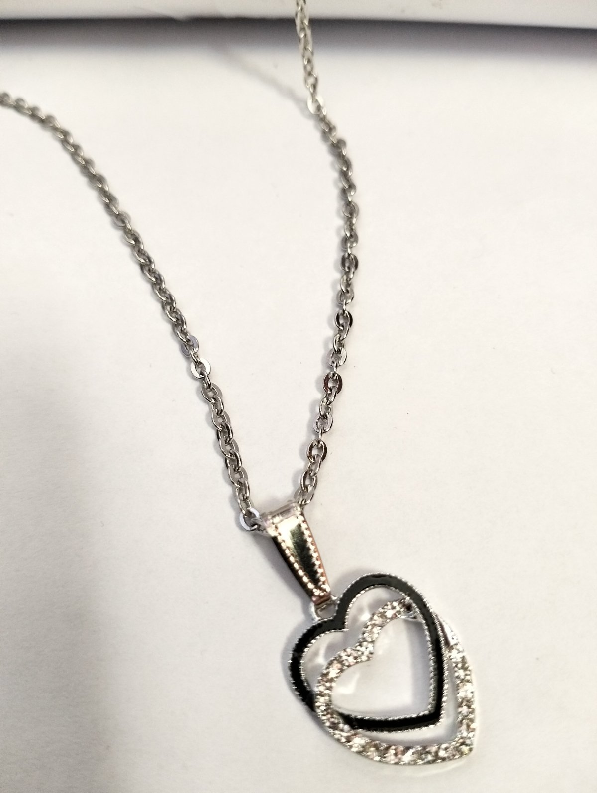 Silver-colored stainless steel chain with silver-colored metal pendant, 30 cm long