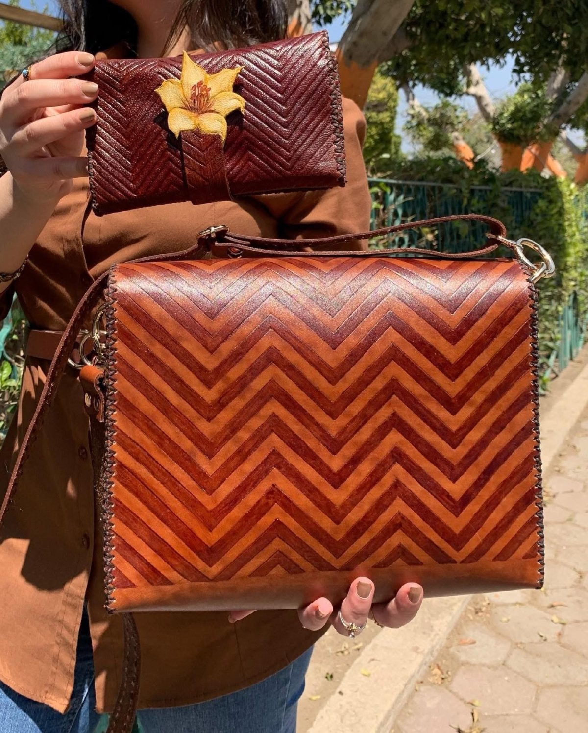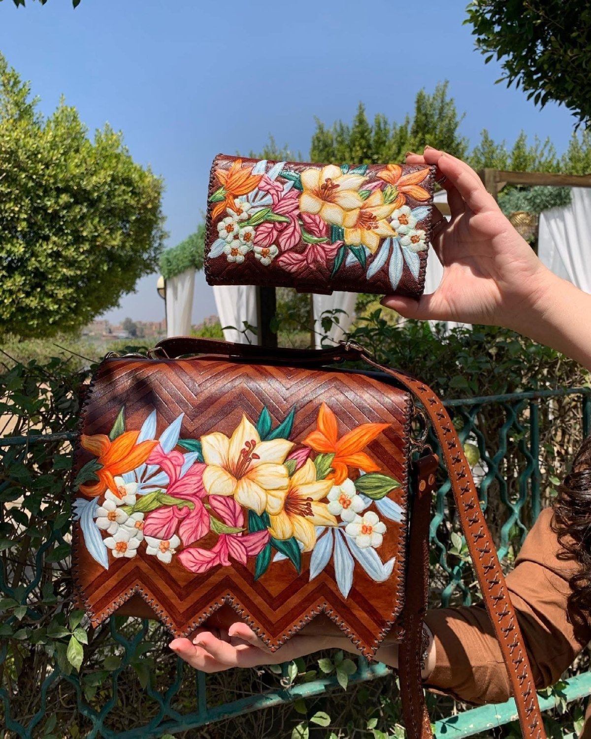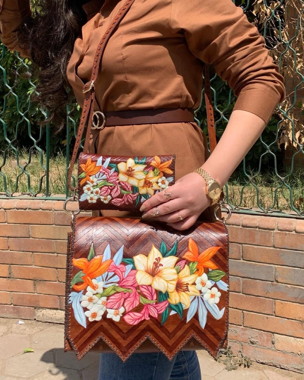 A women's set made of natural leather inspired by nature using the art of drawing, sculpting and painting Each piece can be made individually