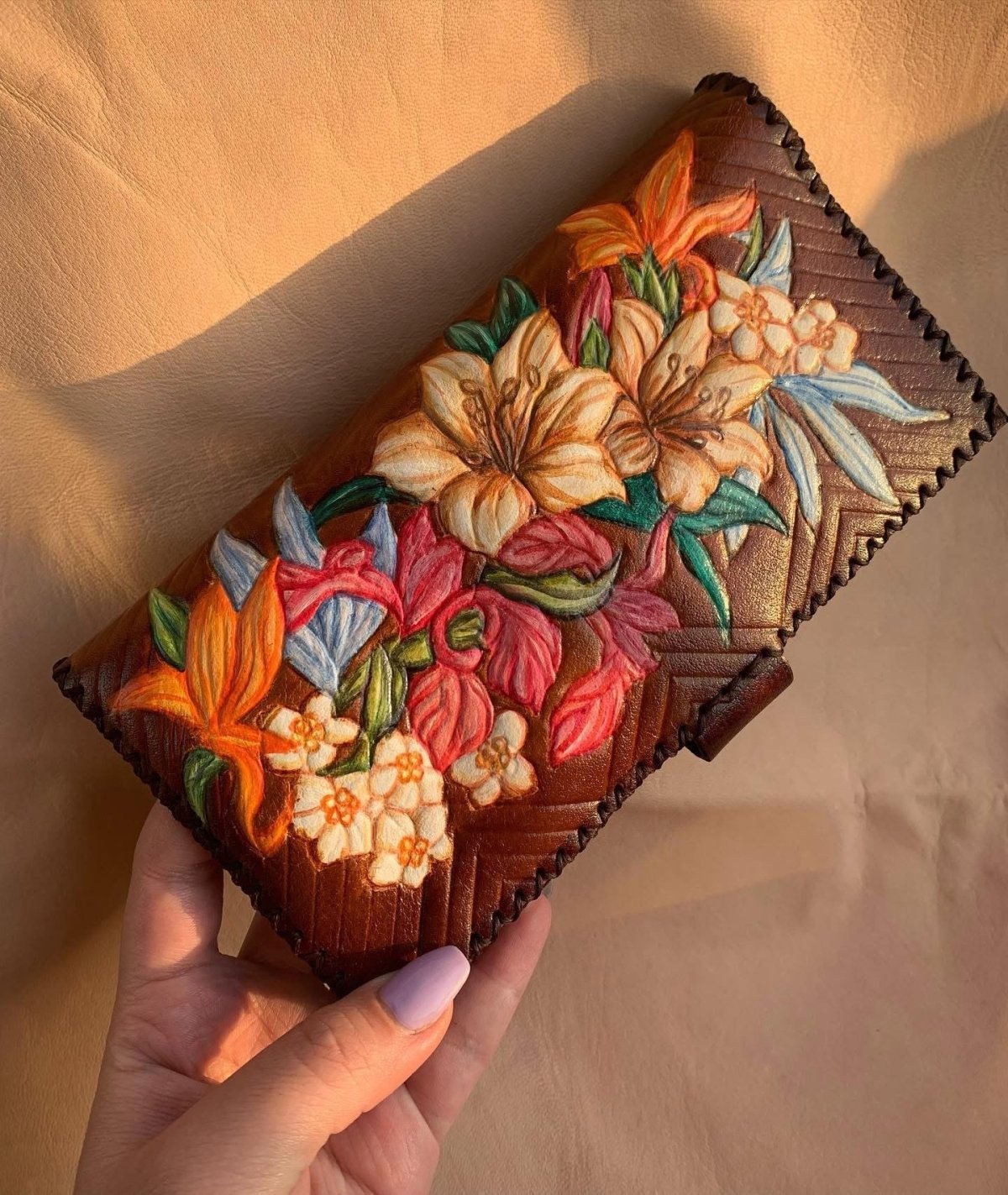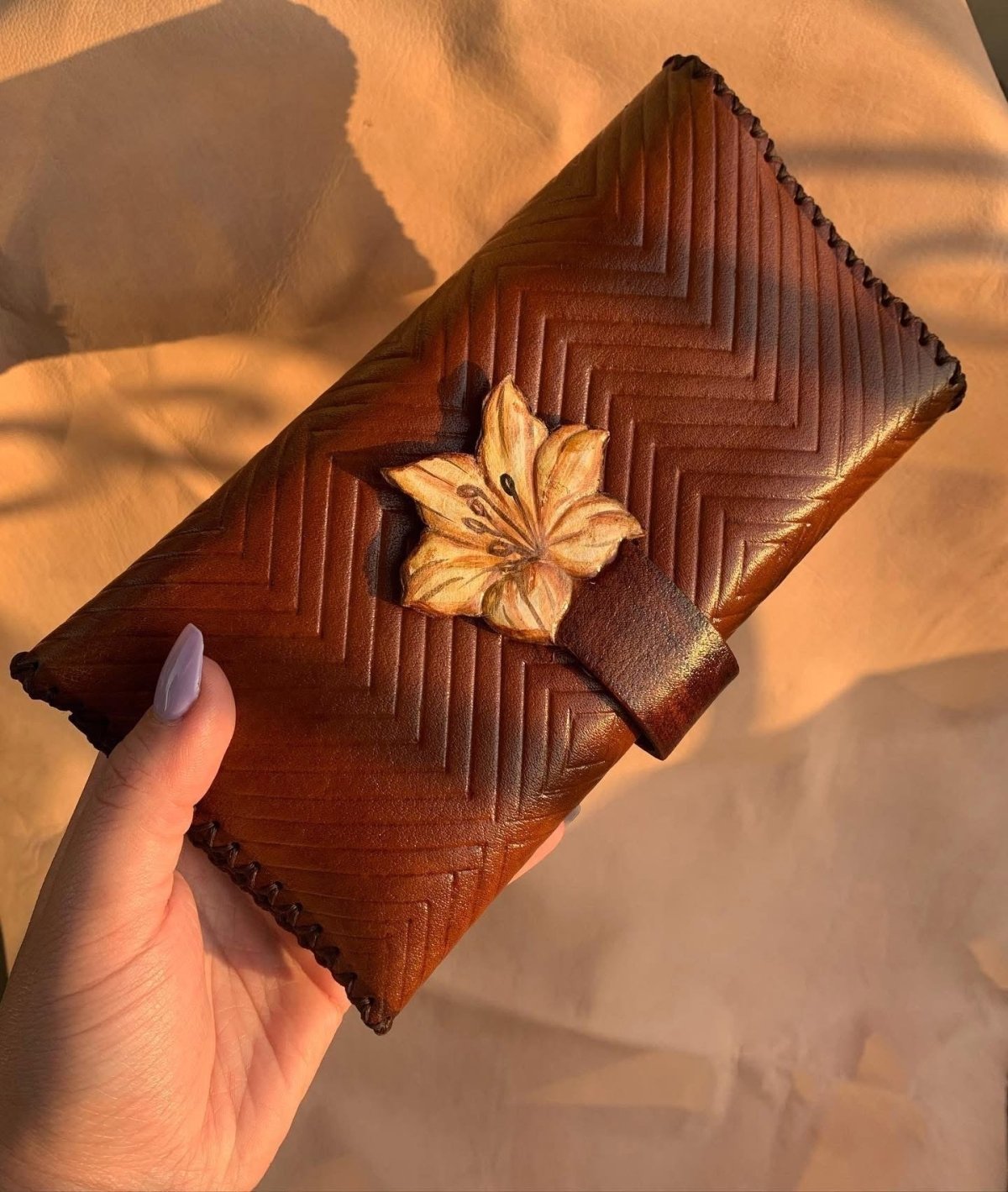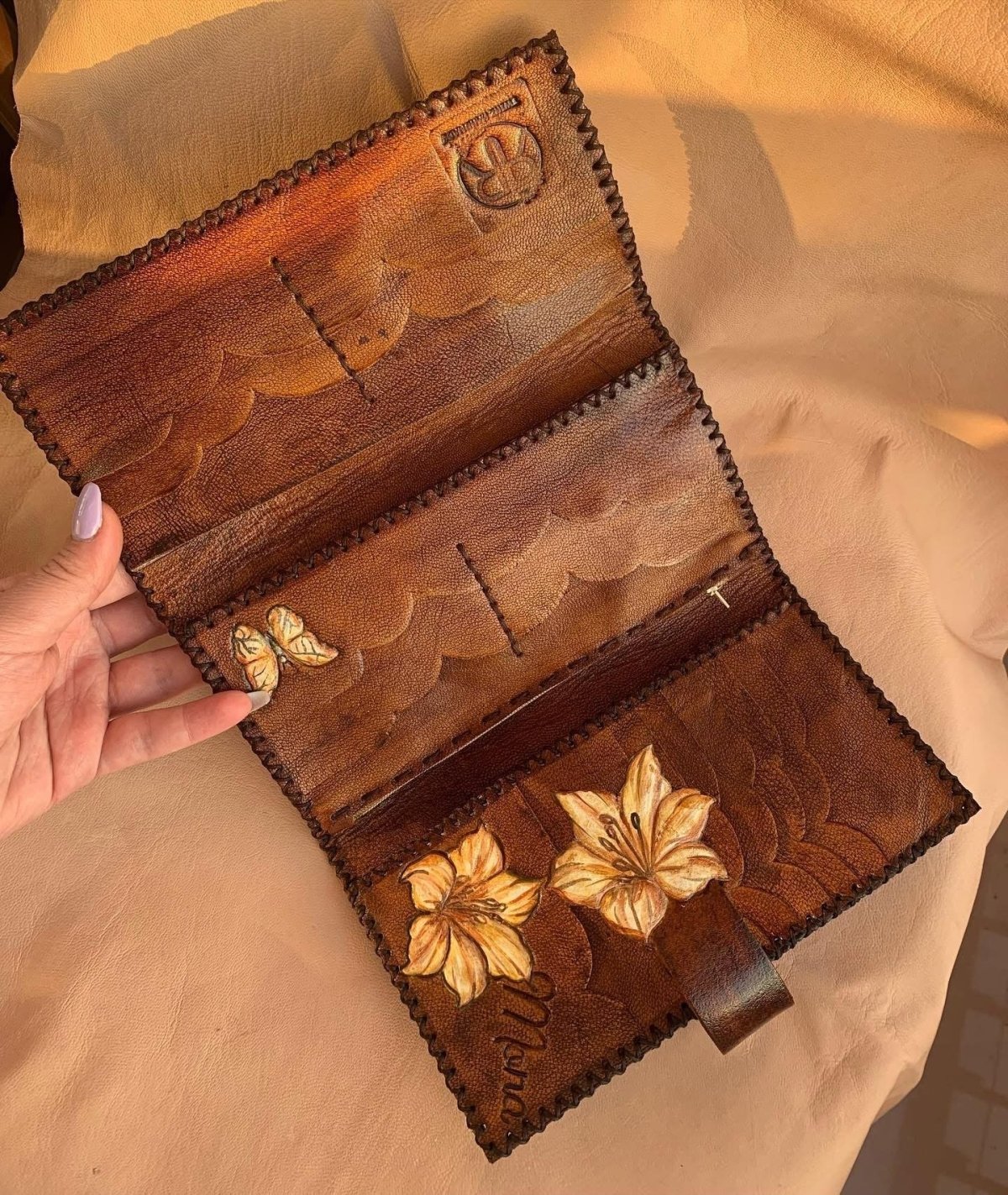 A women's set made of natural leather inspired by nature using the art of drawing, sculpting and painting Each piece can be made individually