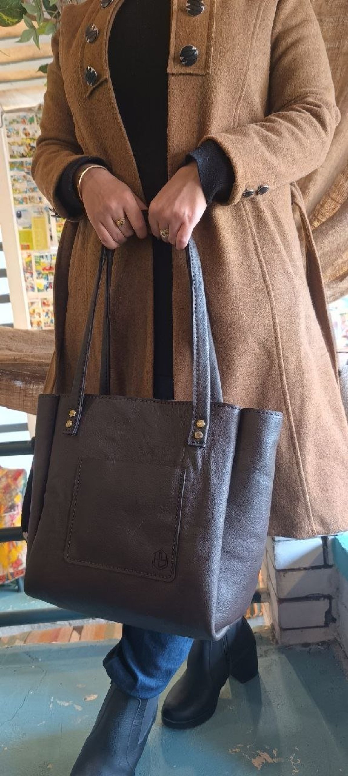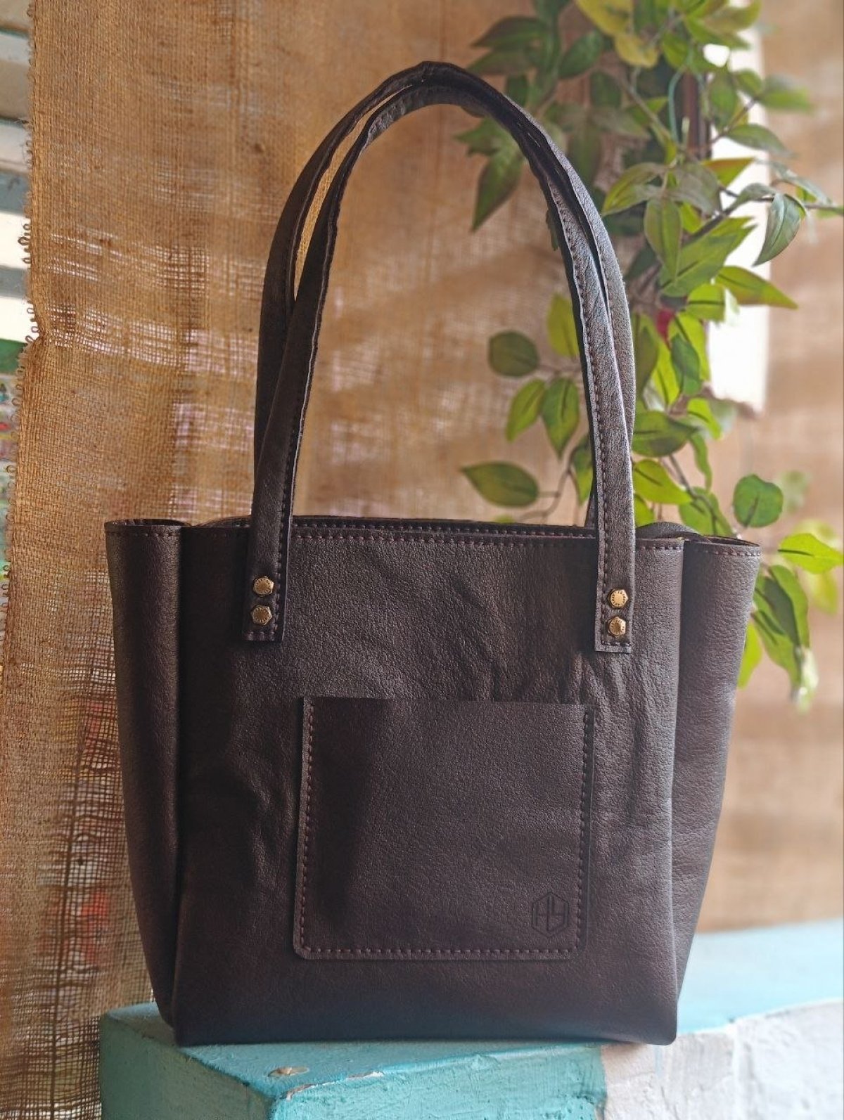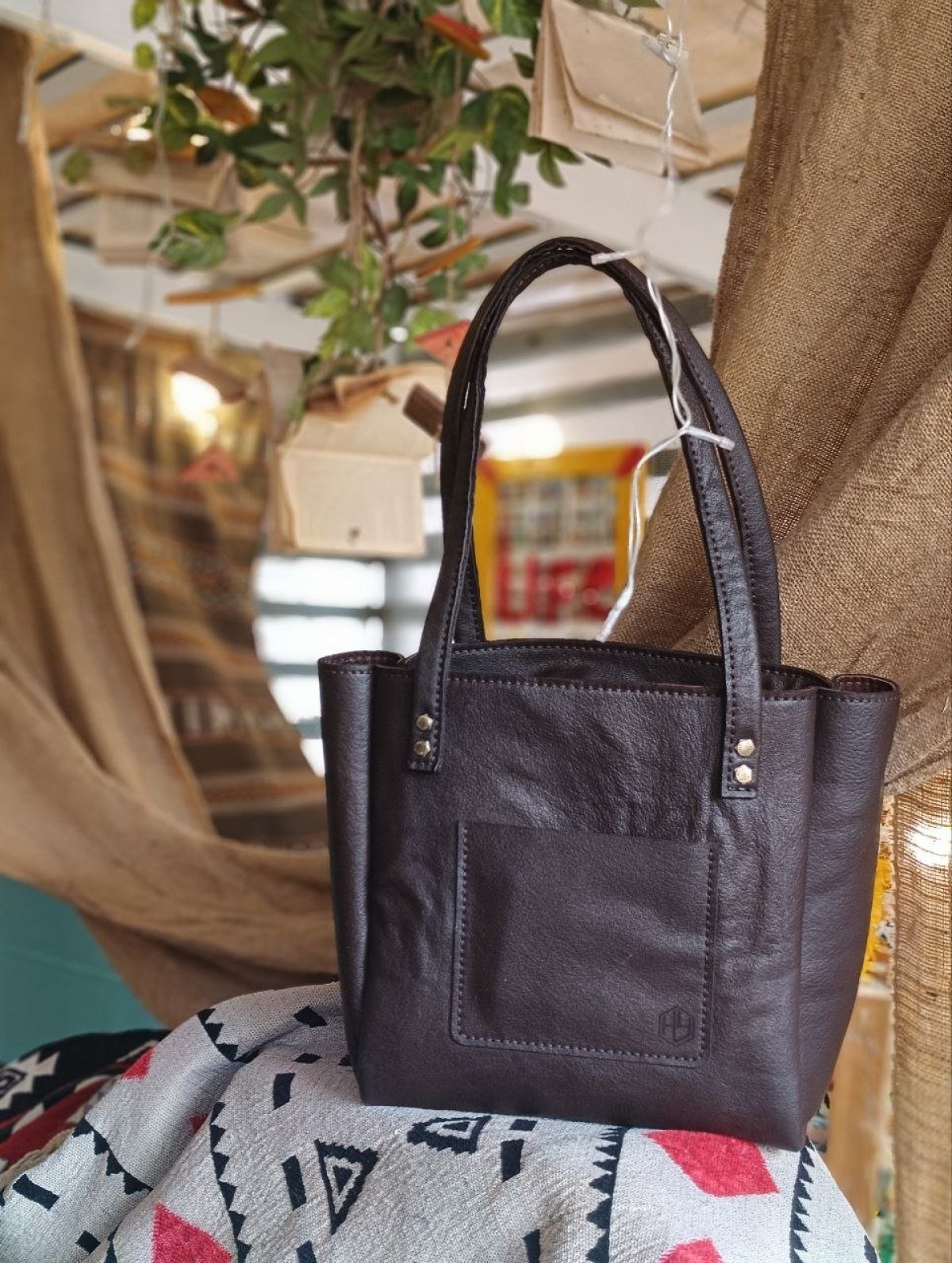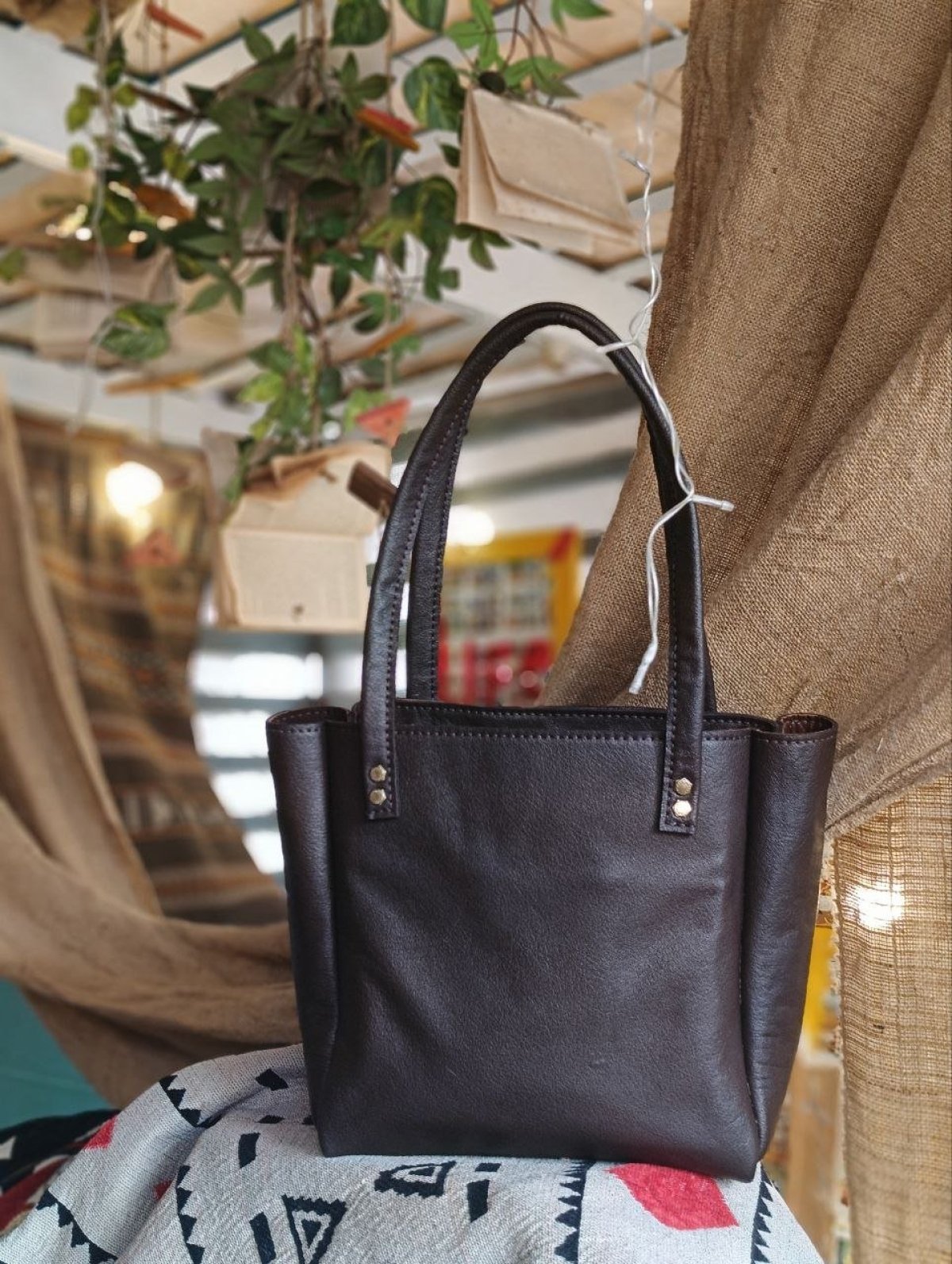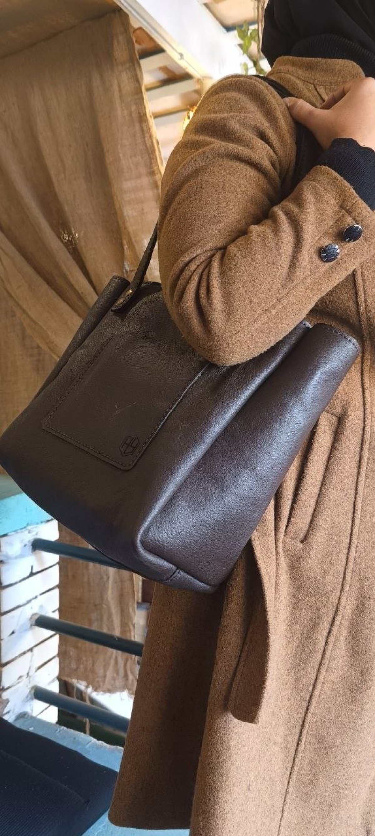 Women's bag with very special design 100% Natural leather Color brown Hand and cross bag Coated from inside with goat natural leather Contain 1 inner zipper and 1 pocket from outside Dimensions 30*30*15