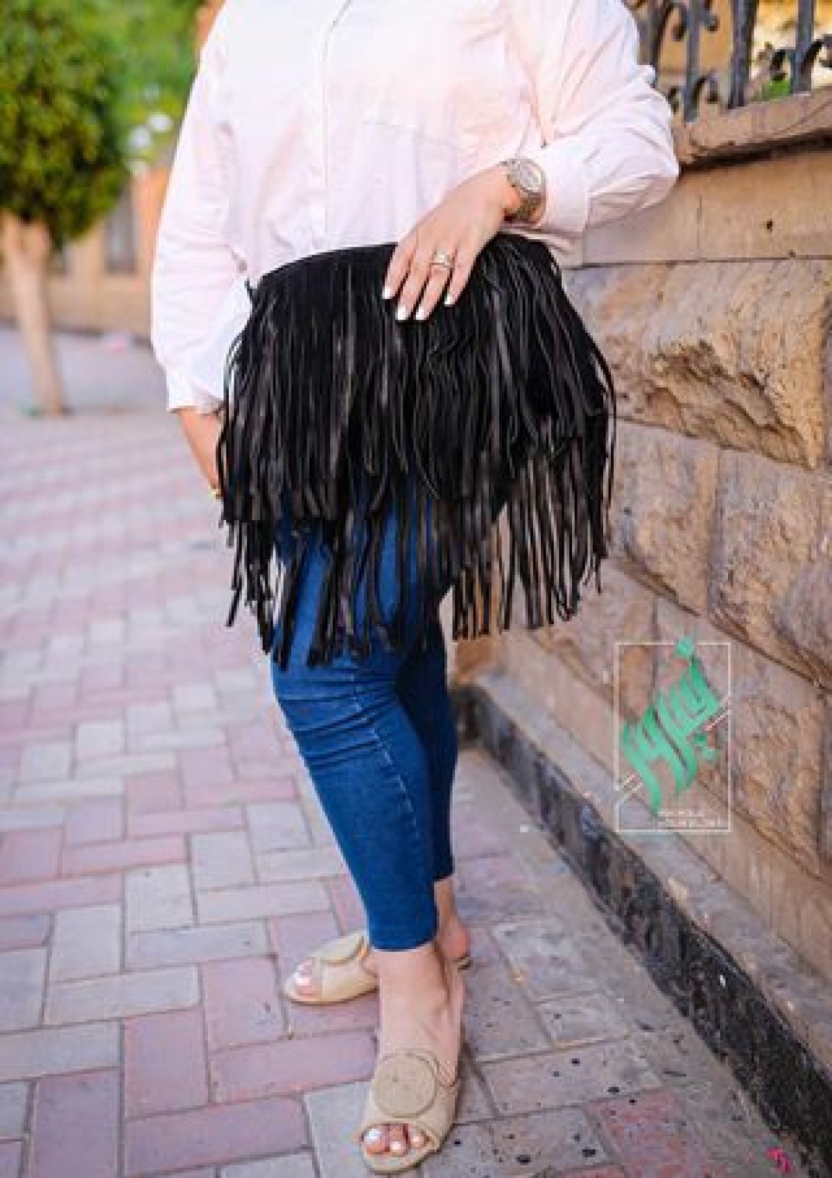 Genuine leather bag made of cow suede, specially designed to meet your daily needs. The bag's specifications are as follows: Material: Genuine cow suede leather with fringes. Use: It can be carried as a crossbody or West bag, which provides flexibility in use. Depth: The bag is deep, making it practical for daily use. Color: Black, which ensures compatibility with all colors And the looks. This bag combines elegance and practicality, making it an ideal addition to your daily wardrobe.