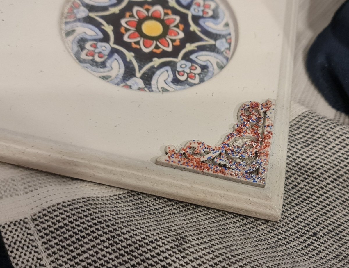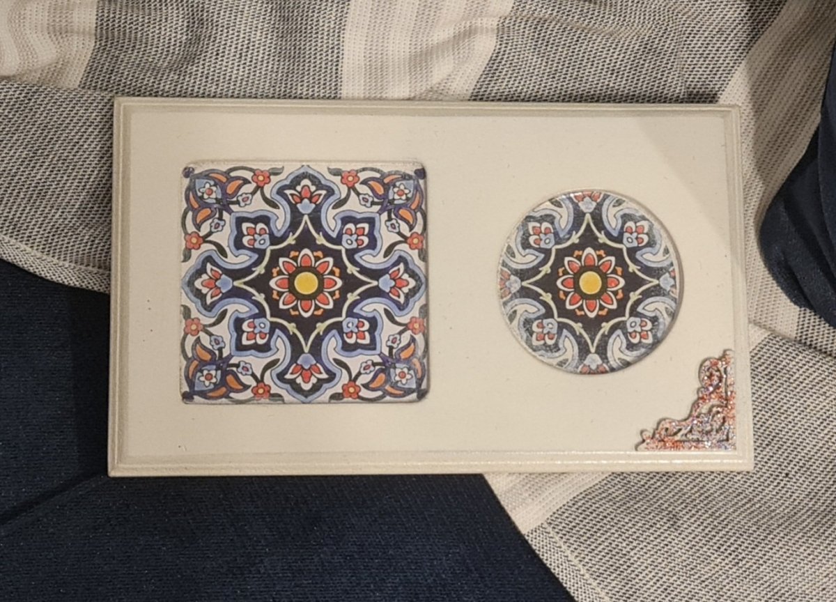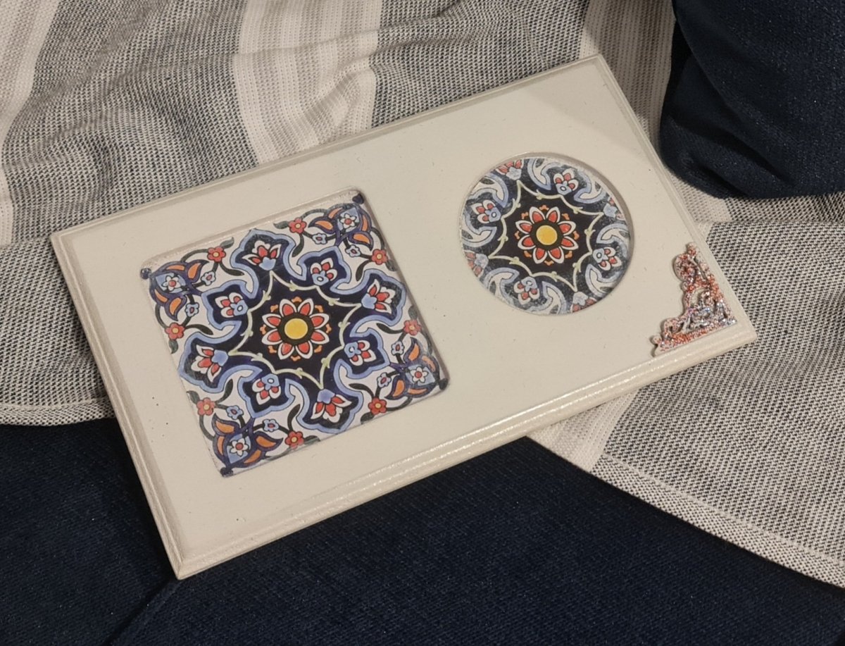 Coaster with an Arabic design that combines simplicity and elegance MDF wood Size 24 x 14 cm White color