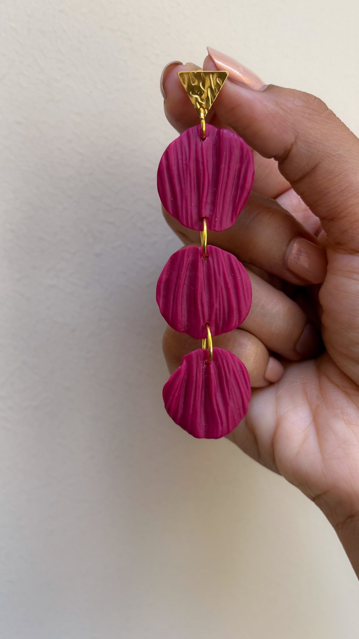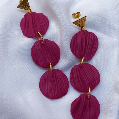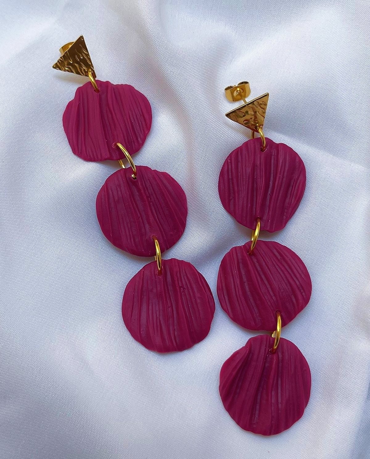 handmade of polymer clay with a stainless steel pieces of metal , rust resistant and it doesn't cause allergies plus it's too light weight