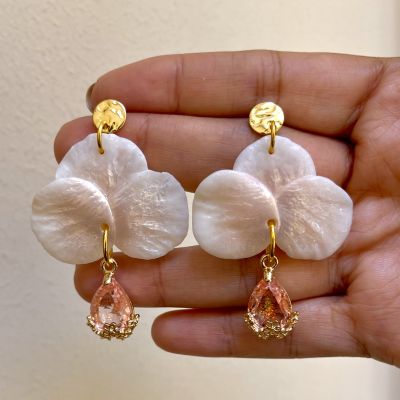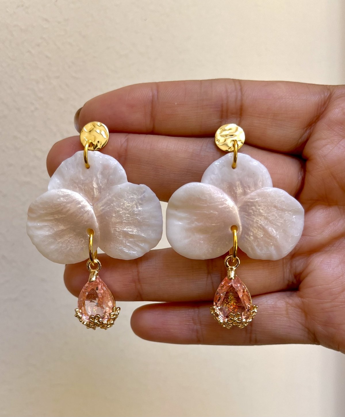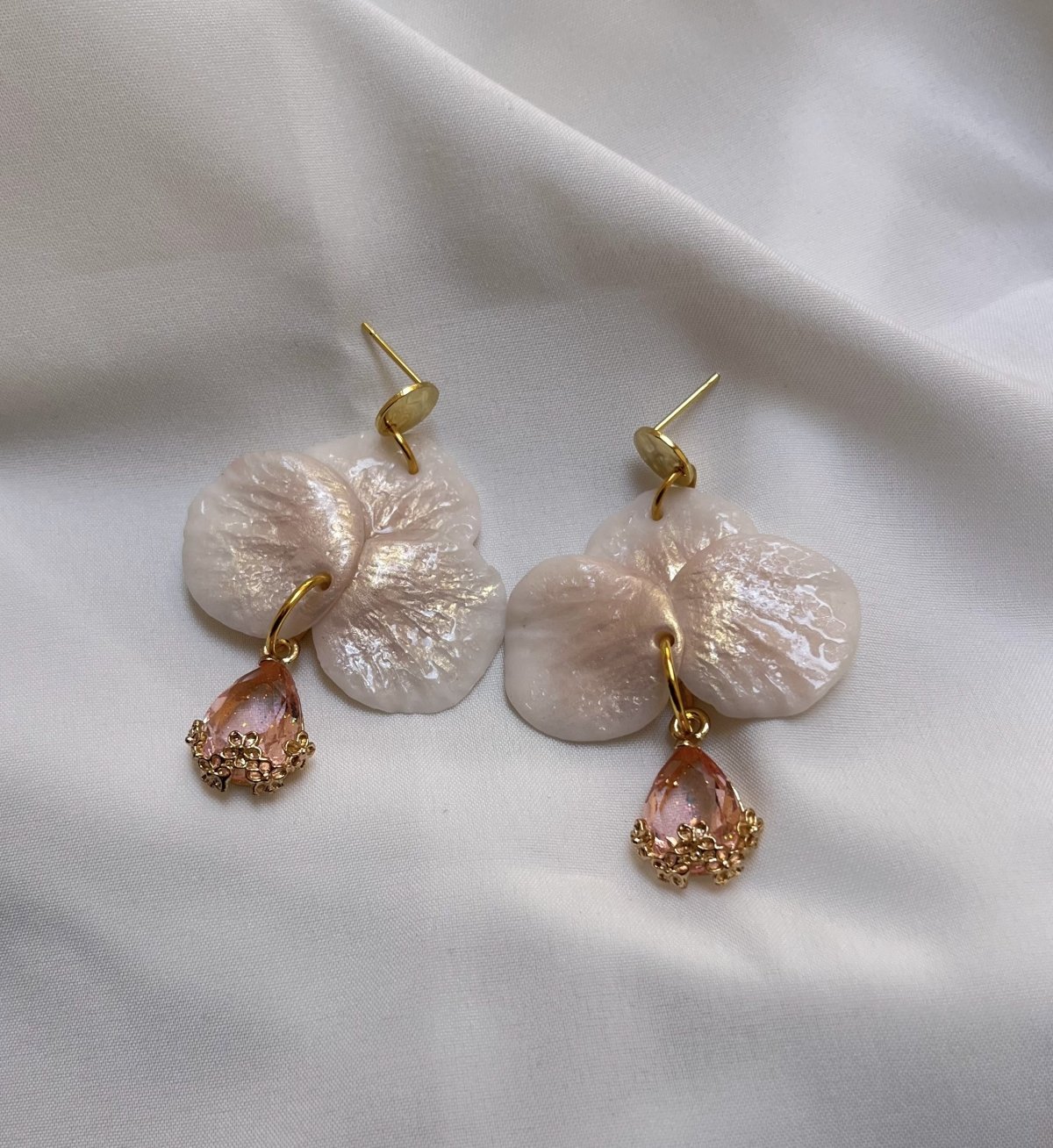 handmade of polymer clay covered with a little layer of resin for more shiny glowing color and texture with a stainless steel pieces of metal and a very unique beautiful crystal stone