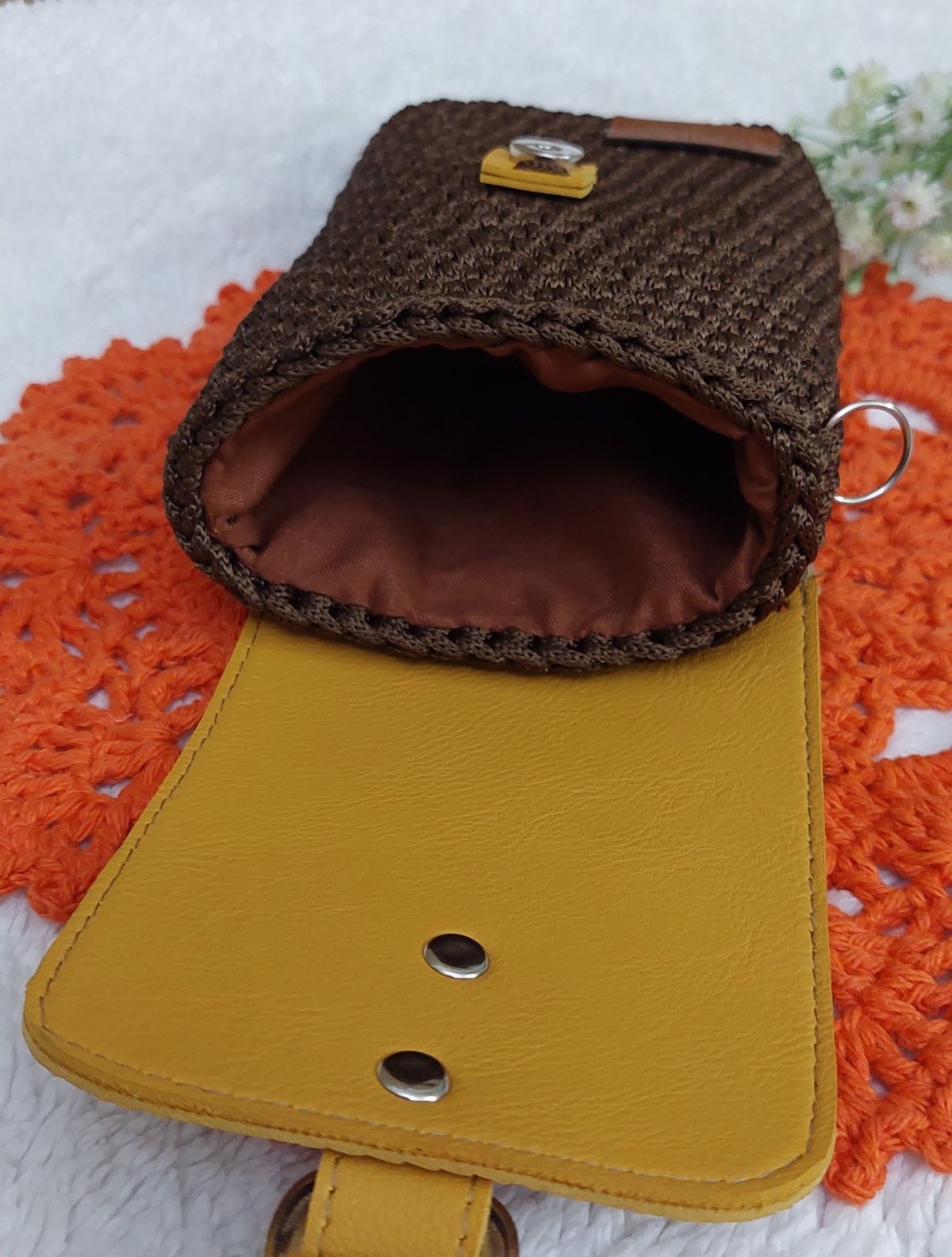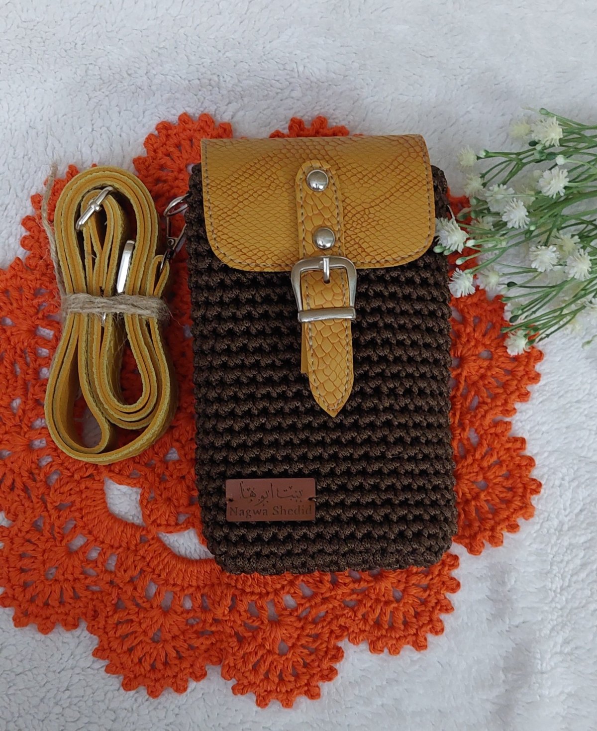 Mini crochet crossbody made of chain thread with laser leather and wide leather that can be lengthened and shortened and lined on the inside. Size: Wide 12 cm Long:18 cm