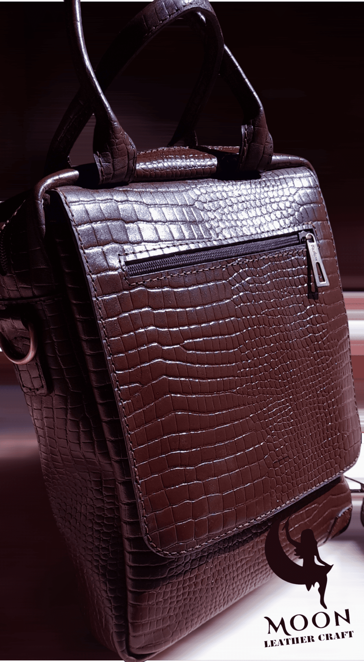 Handmade genuine leather bag with crocodile print for men, size 30×25×8