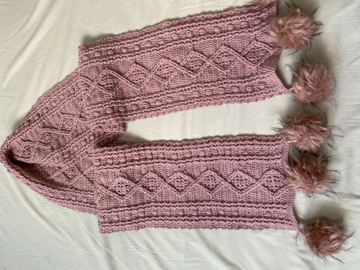 crochet wool scarf. size 2 meters long x 20 cm wide. available design different colors and sizes