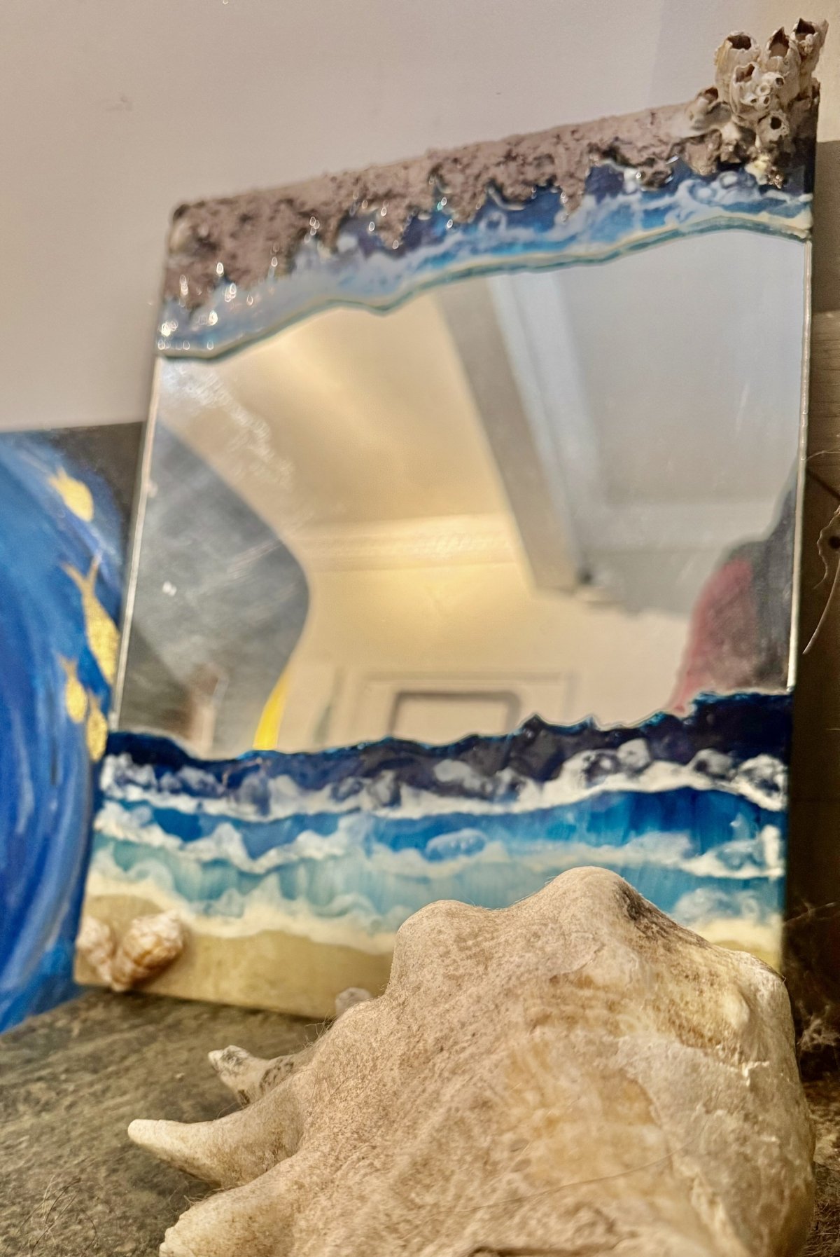 Mirror decorated with shells and sea shape with back hanger