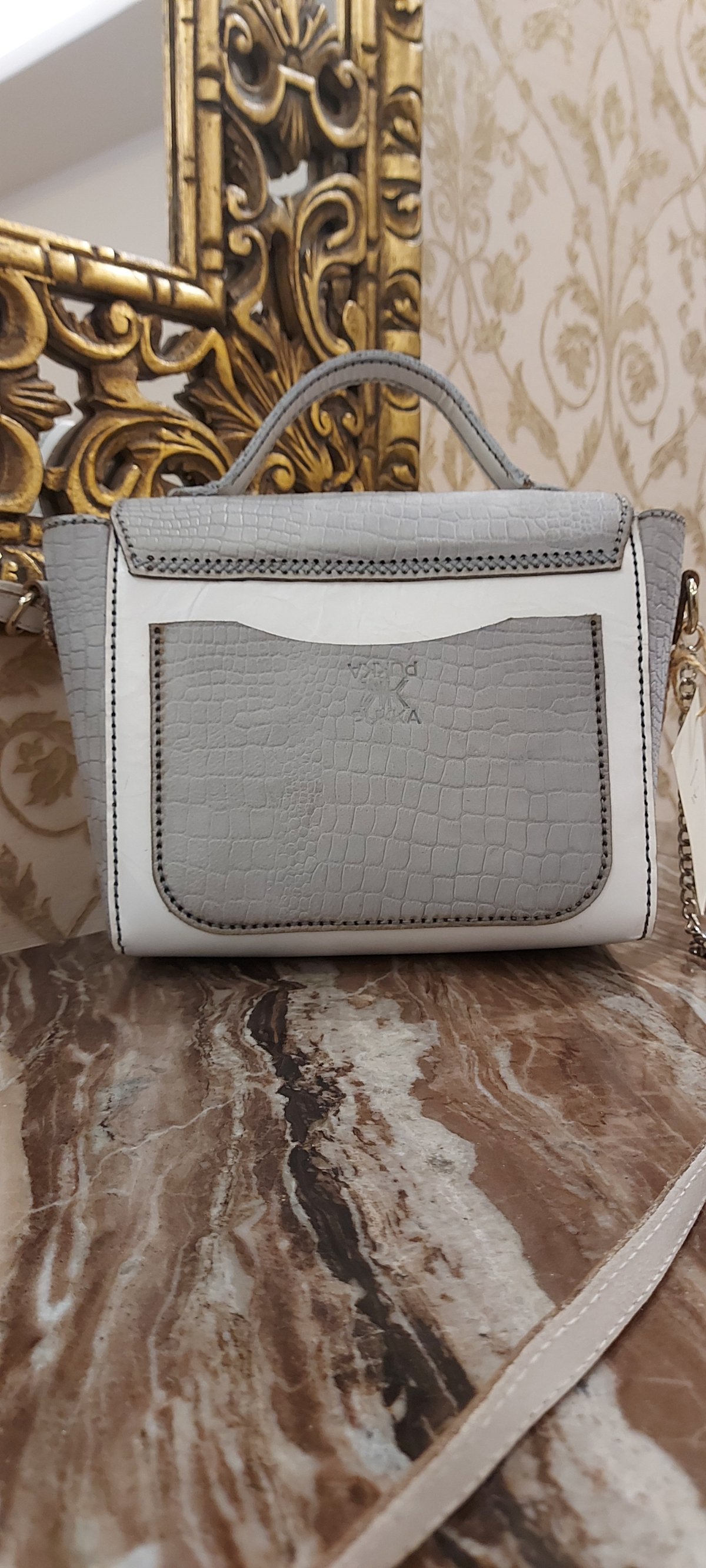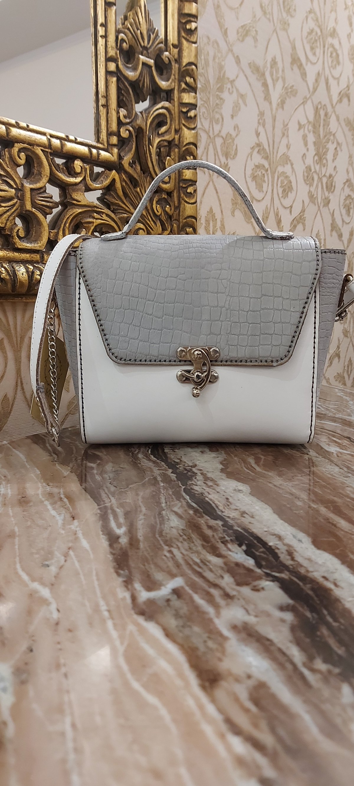 Genuine leather bag, size 18*22...white and gray.