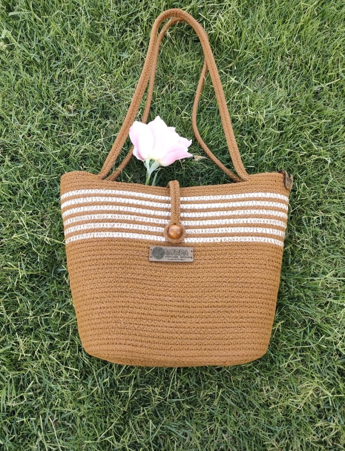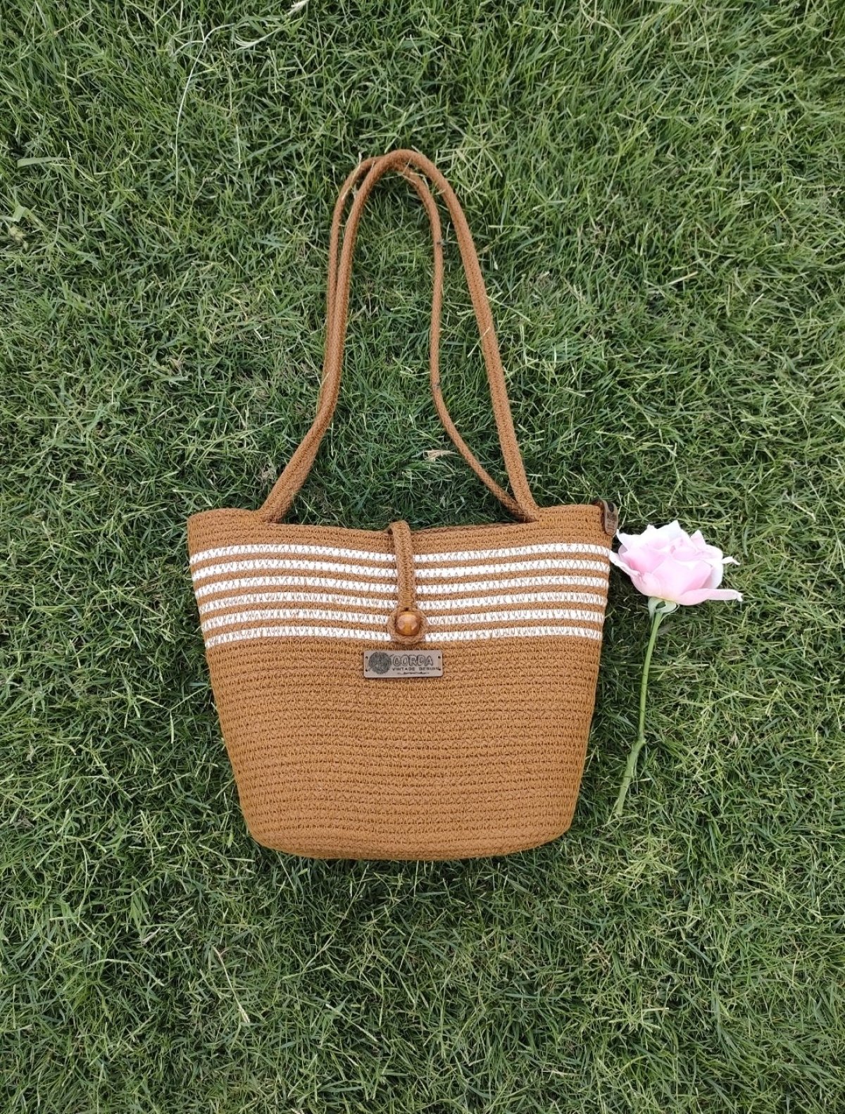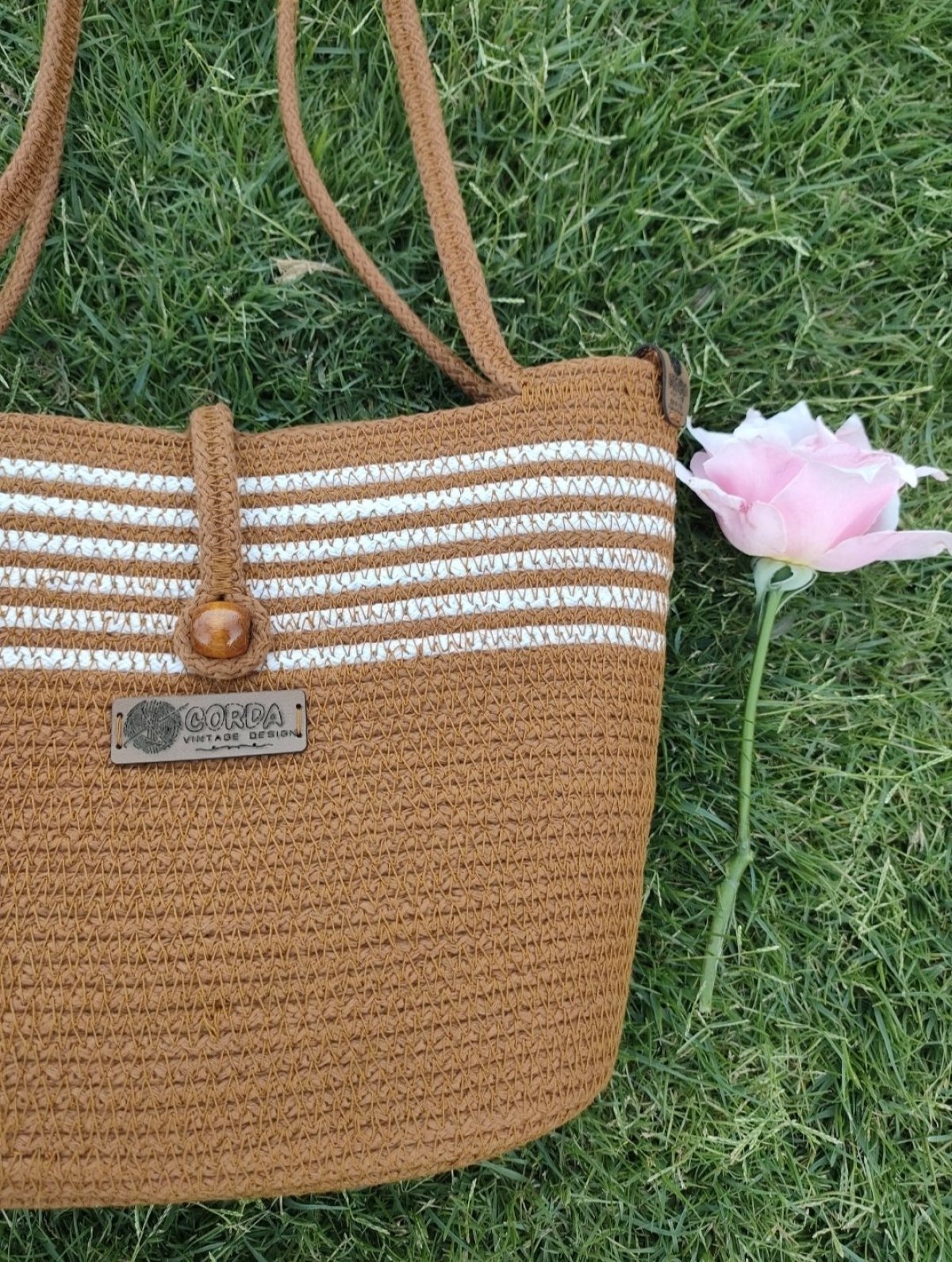An elegant bag with a wooden button, medium size, suitable for all times Dimentions: bag size 25*35 cm arm lenght 70cm