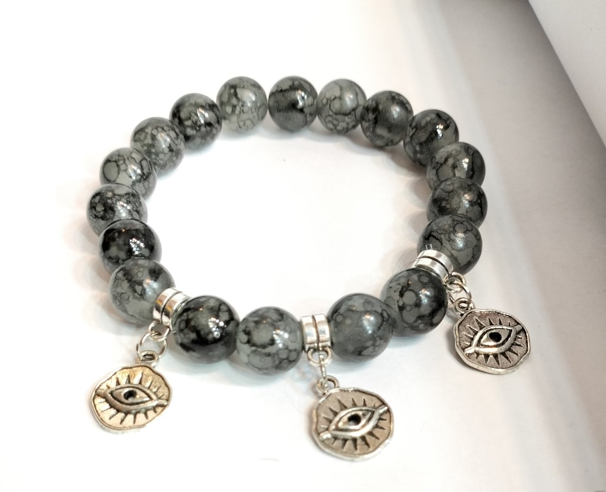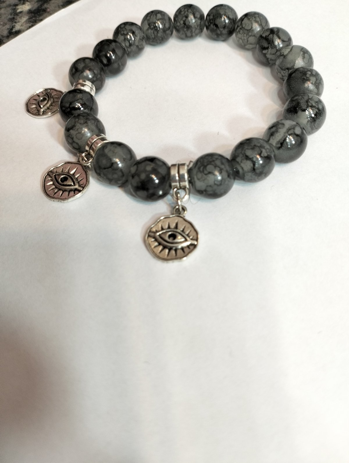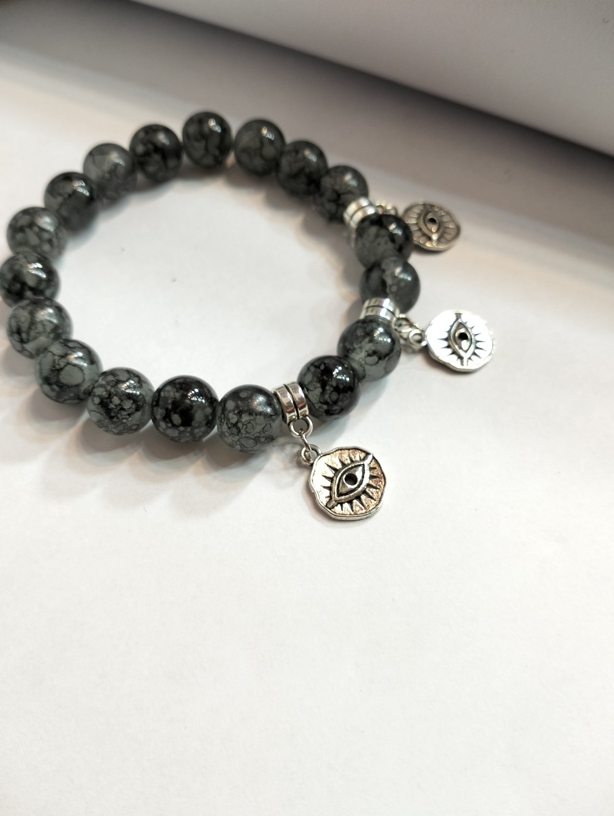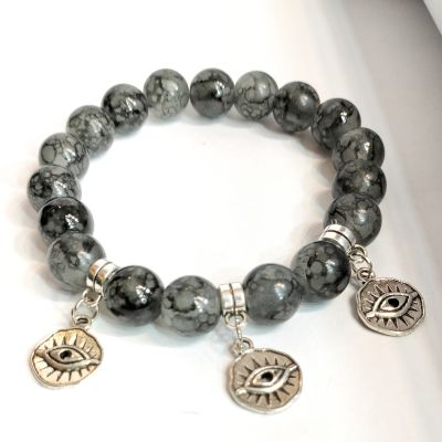 Bracelet made of gray alabaster stone studded with silver pendants