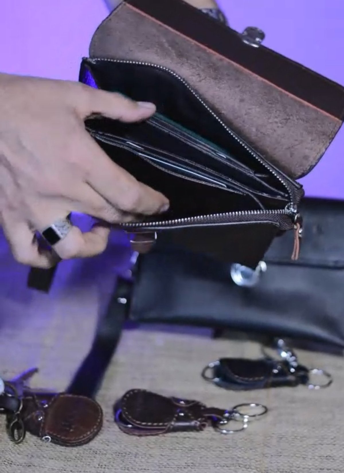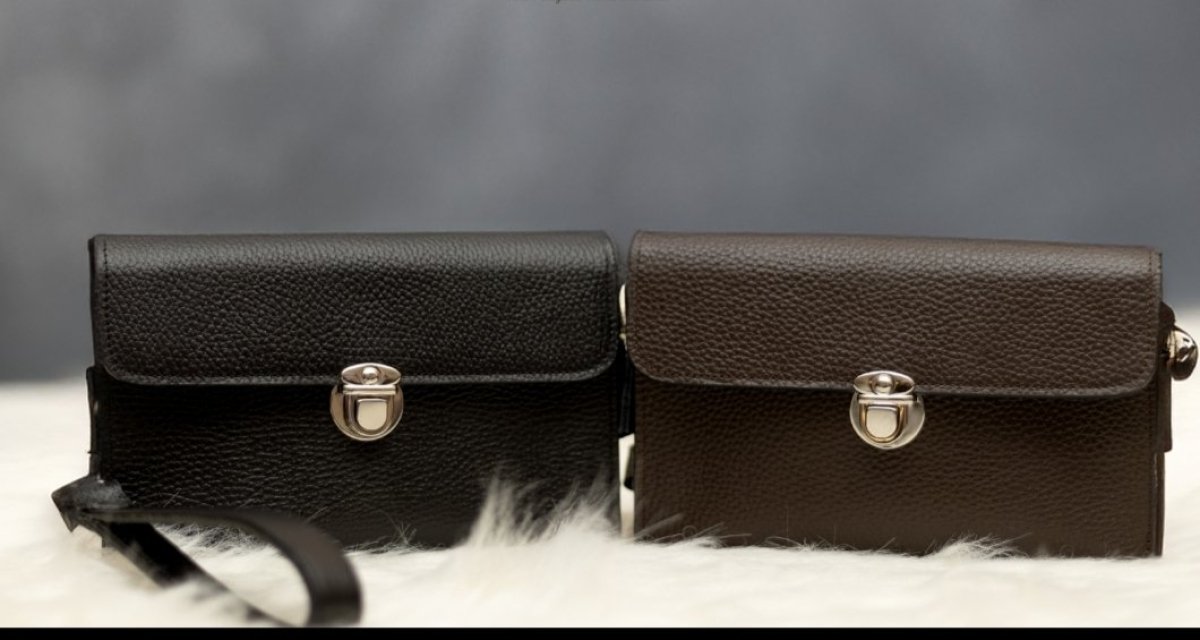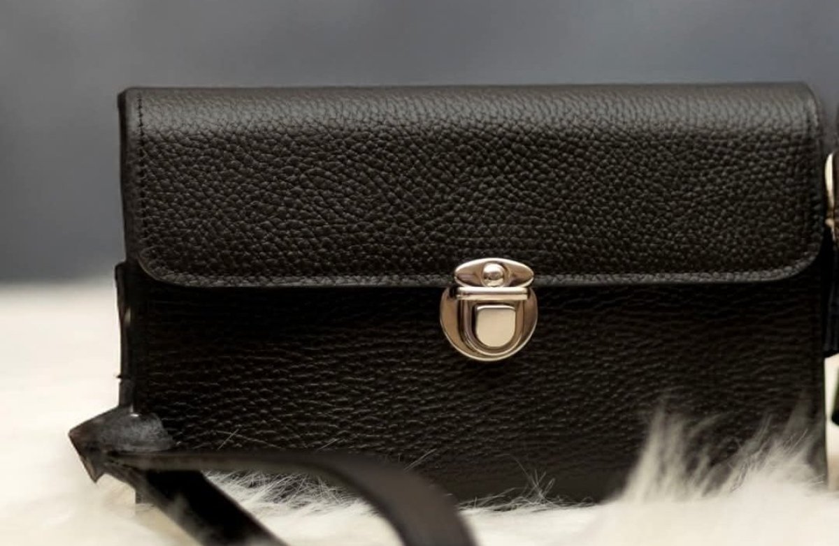 hand bag Genuine cowhide leather Size 20*14 Side and back hand Black and brown colours 3 large pockets and 4 card pockets that can accommodate more than 15 cards Internal zipper